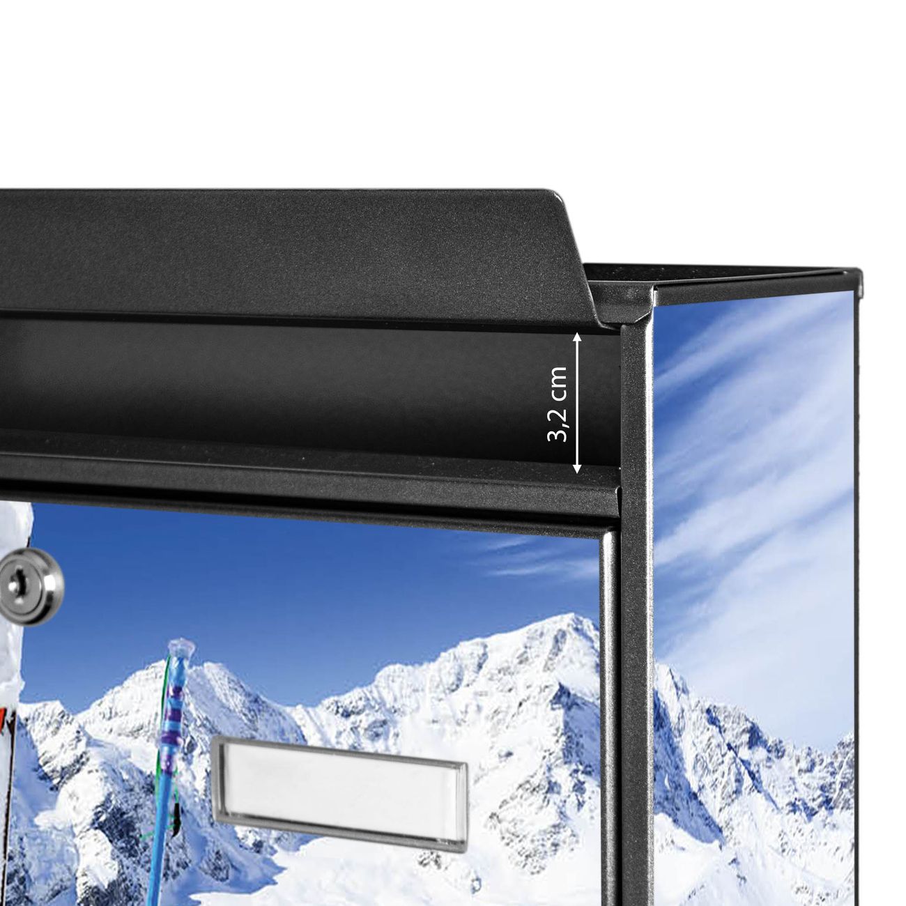 Der Postkasten mit Motiv Apres Ski hat ein sehr ansprechendes und zeitloses Design. Heben Sie Sich von der tristen grauen Masse ab, ohne auf Funktionalität zu verzichten. Die weite Öffnung ohne scharfe Kanten ermöglicht eine einfache Handhabung beim Entnehmen der Post. Die Größe bietet genügend Platz für Sendungen aller Art, der Einwurf fasst auch größere A4 Sendungen. Ihr Burg-Wächter Motivbriefkasten wird in Sachsen in einer kleinen Manufaktur von Hand veredelt. Die Motivfolie ist lösungsmittelfrei und schutzlaminiert, dies sorgt für einen langen Halt. Wir legen großen Wert auf die Verbindung von Funktionalität und Design.