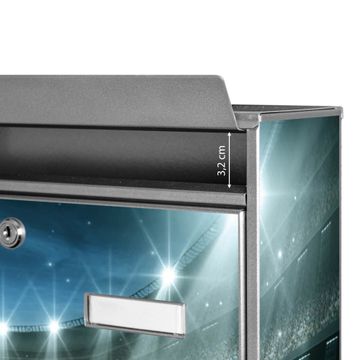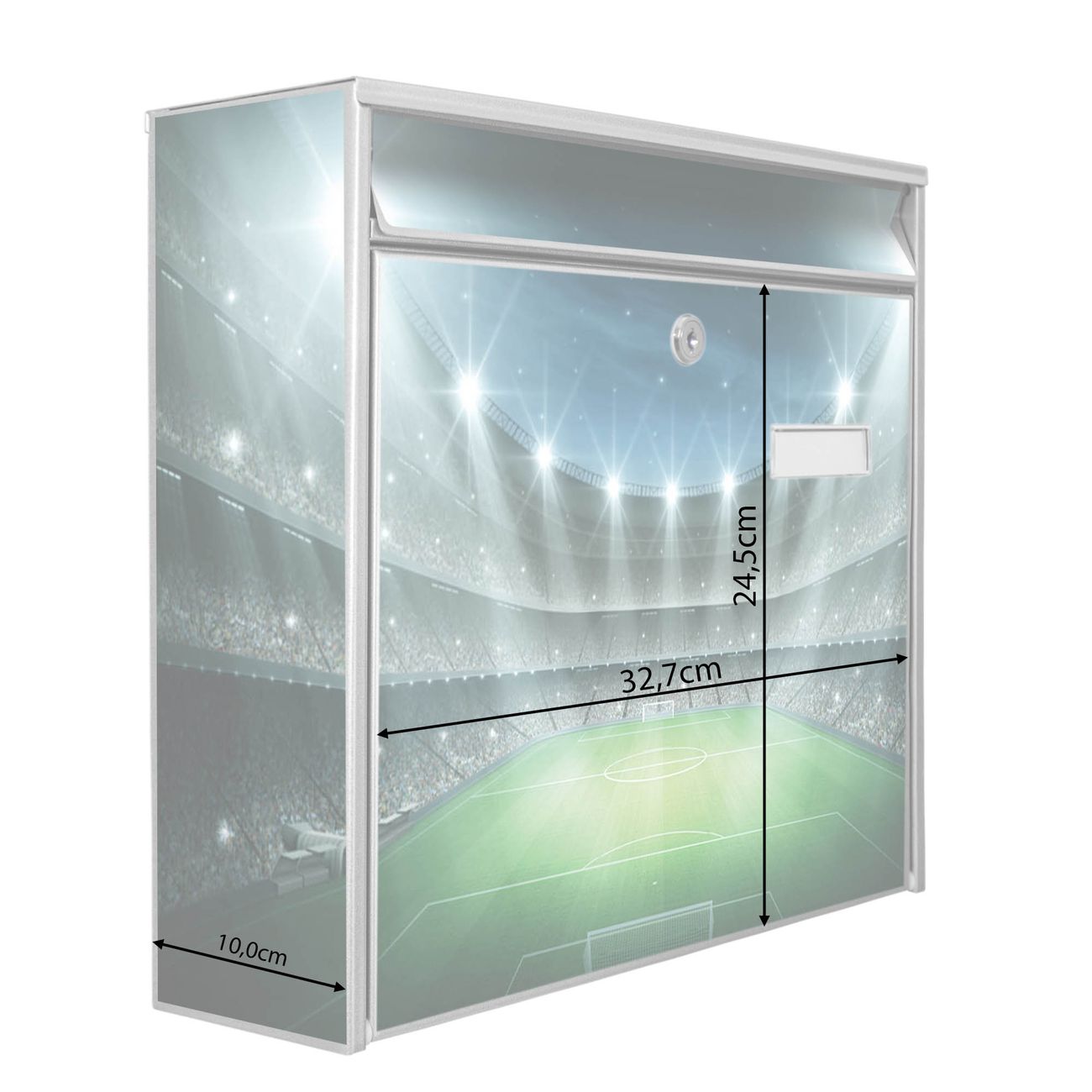 Der Burg Wächter Mail Briefkasten mit Motiv Arena bietet Ihnen mit seinem Fassungsvermögen genügend Platz auch für große A4 Sendungen. Auf Wunsch können Sie bei uns den passenden Standfuß kaufen und so aus dem Wandbriefkasten einen Standbriefkasten machen. Wir bieten Ihnen ebenfalls Namensschilder, bereits beschriftet oder frei zu beschriften, und verschiedene selbst gestaltete Bitte-Keine-Werbung-Aufkleber.