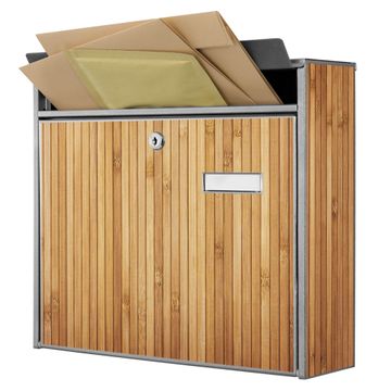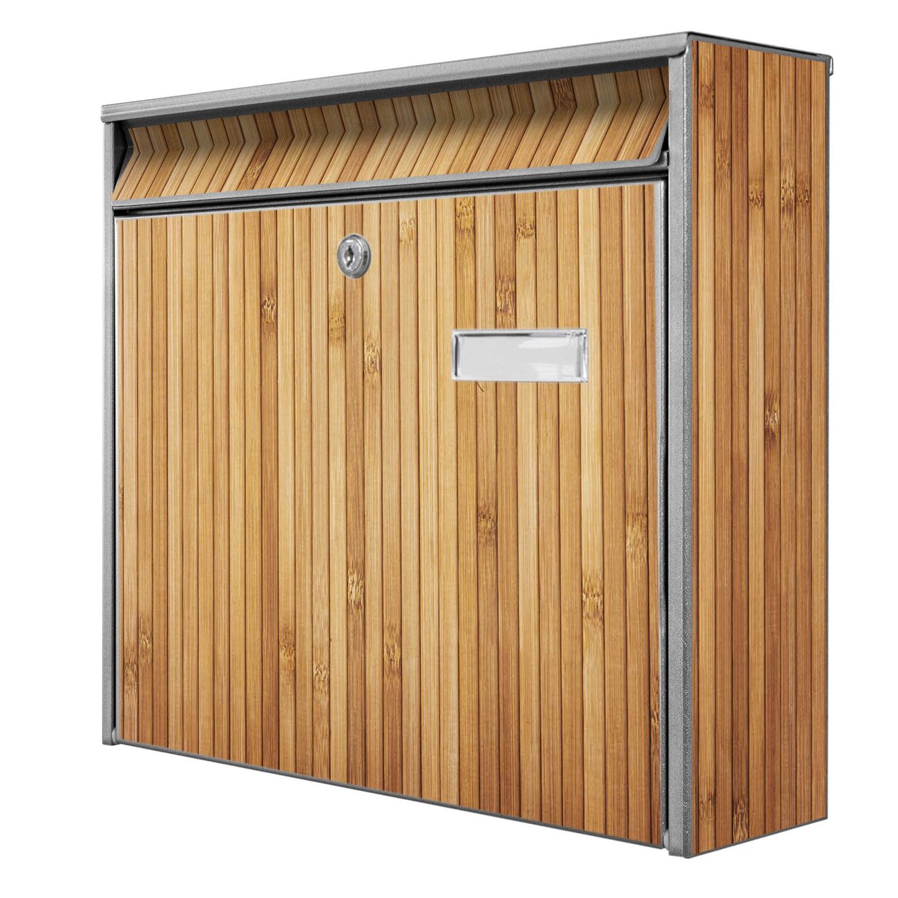 Der Burg Wächter Mail Briefkasten mit Motiv Bambusholz bietet Ihnen mit seinem Fassungsvermögen genügend Platz auch für große A4 Sendungen. Auf Wunsch können Sie bei uns den passenden Standfuß kaufen und so aus dem Wandbriefkasten einen Standbriefkasten machen. Wir bieten Ihnen ebenfalls Namensschilder, bereits beschriftet oder frei zu beschriften, und verschiedene selbst gestaltete Bitte-Keine-Werbung-Aufkleber.