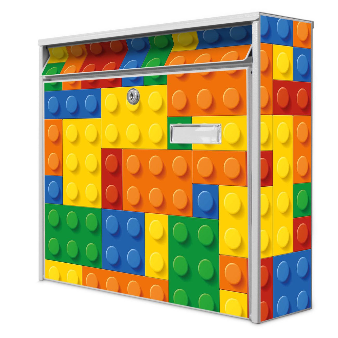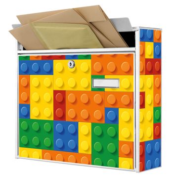 Der Burg Wächter Mail Briefkasten mit Motiv Bausteine bietet Ihnen mit seinem Fassungsvermögen genügend Platz auch für große A4 Sendungen. Auf Wunsch können Sie bei uns den passenden Standfuß kaufen und so aus dem Wandbriefkasten einen Standbriefkasten machen. Wir bieten Ihnen ebenfalls Namensschilder, bereits beschriftet oder frei zu beschriften, und verschiedene selbst gestaltete Bitte-Keine-Werbung-Aufkleber.