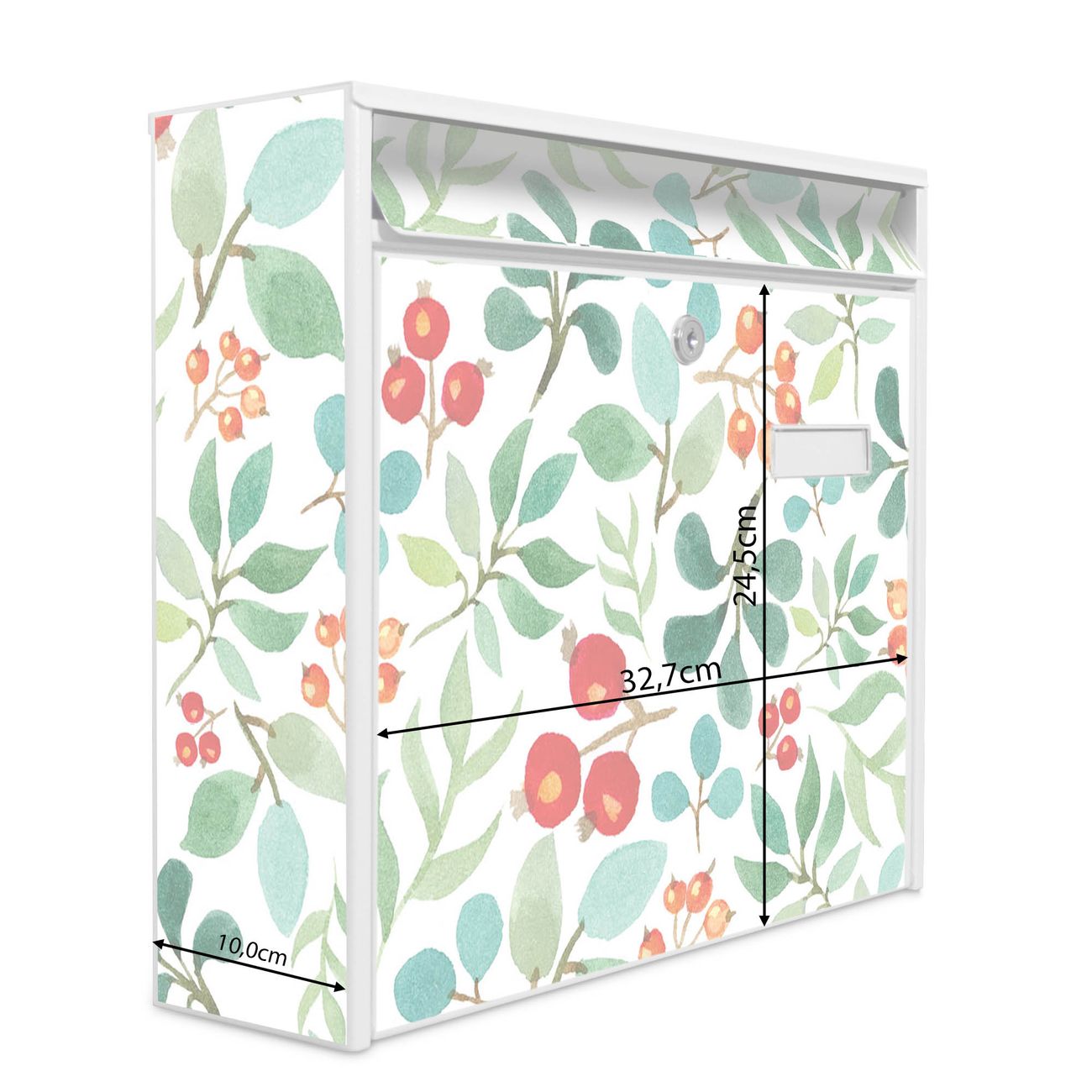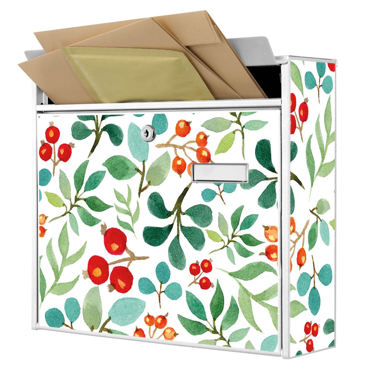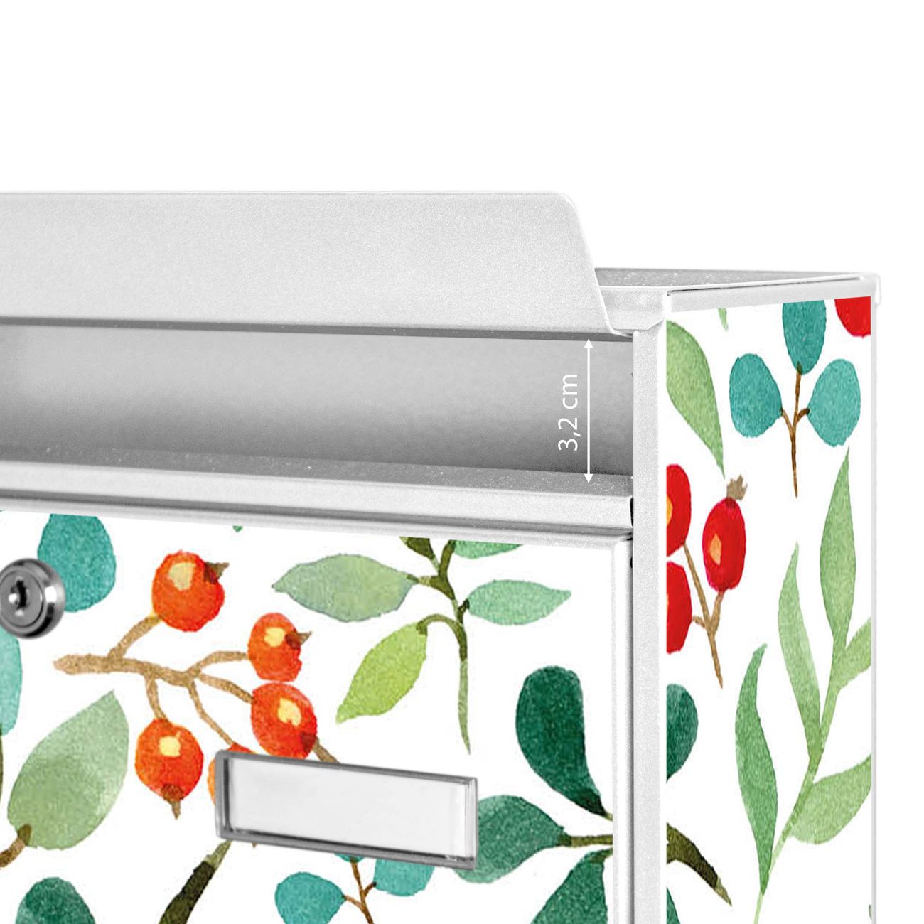 Der Burg Wächter Mail Briefkasten mit Motiv Beeren und Blätter bietet Ihnen mit seinem Fassungsvermögen genügend Platz auch für große A4 Sendungen. Auf Wunsch können Sie bei uns den passenden Standfuß kaufen und so aus dem Wandbriefkasten einen Standbriefkasten machen. Wir bieten Ihnen ebenfalls Namensschilder, bereits beschriftet oder frei zu beschriften, und verschiedene selbst gestaltete Bitte-Keine-Werbung-Aufkleber.