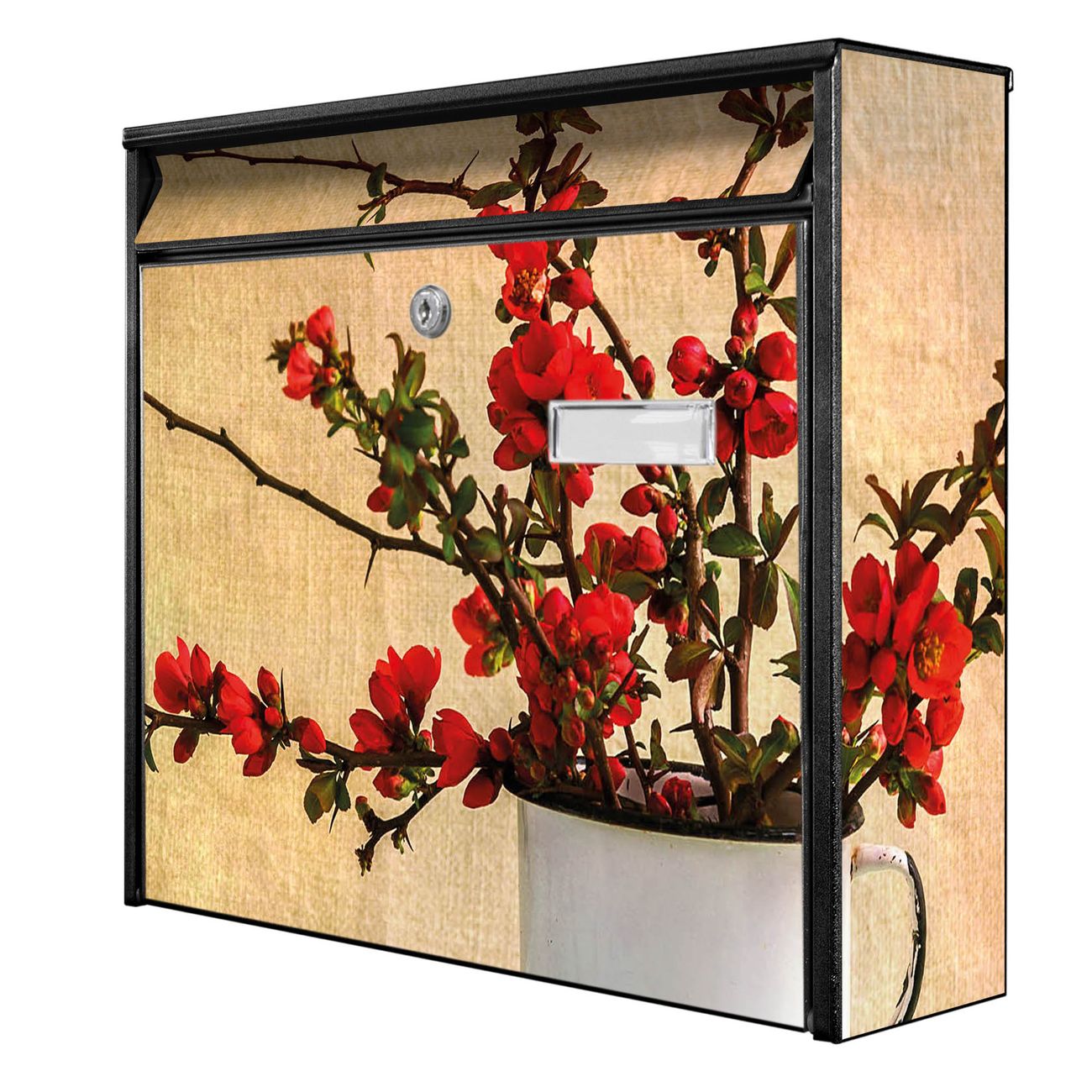 Die Größe des Briefkastens ist 36 x 32 x 10cm (BxHxT) groß. Das Motiv besteht aus einer wetter- und UV-festen Folie, die mit einem Schutzlaminat überzogen ist und Ihren Briefkasten zusätzlich vor Kratzern schützt. Sie erhalten 2 Schlüssel sowie das Montagematerial.