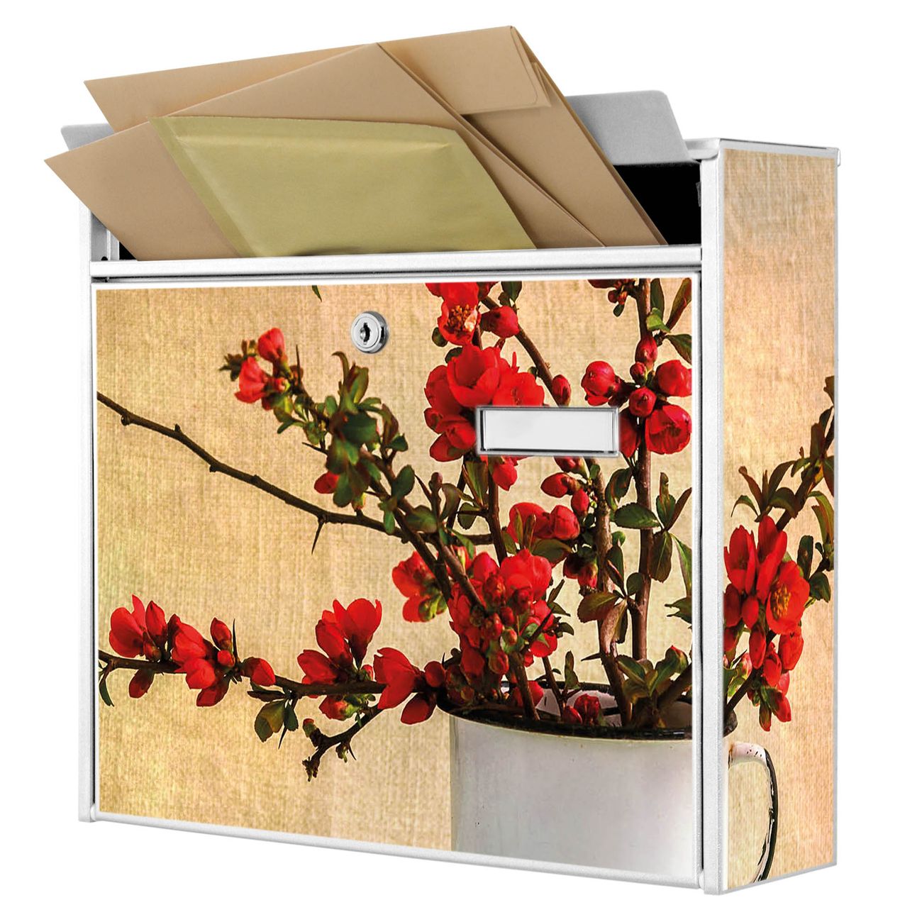 Der Burg Wächter Mail Briefkasten mit Motiv Berberitzen bietet Ihnen mit seinem Fassungsvermögen genügend Platz auch für große A4 Sendungen. Auf Wunsch können Sie bei uns den passenden Standfuß kaufen und so aus dem Wandbriefkasten einen Standbriefkasten machen. Wir bieten Ihnen ebenfalls Namensschilder, bereits beschriftet oder frei zu beschriften, und verschiedene selbst gestaltete Bitte-Keine-Werbung-Aufkleber.