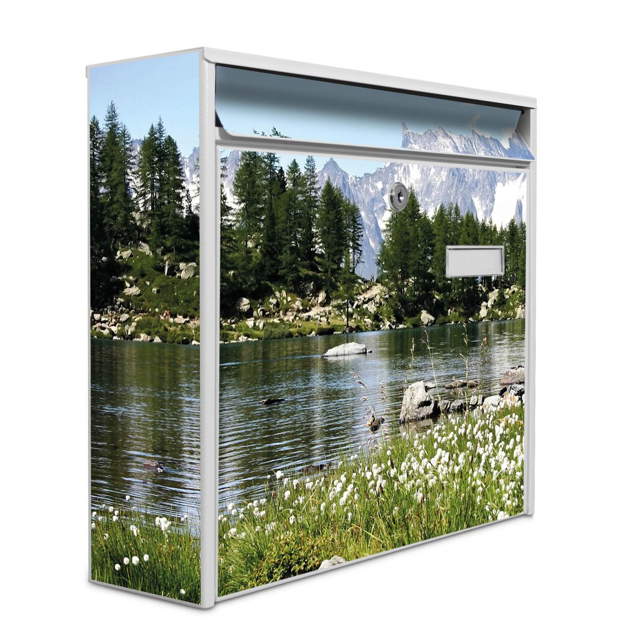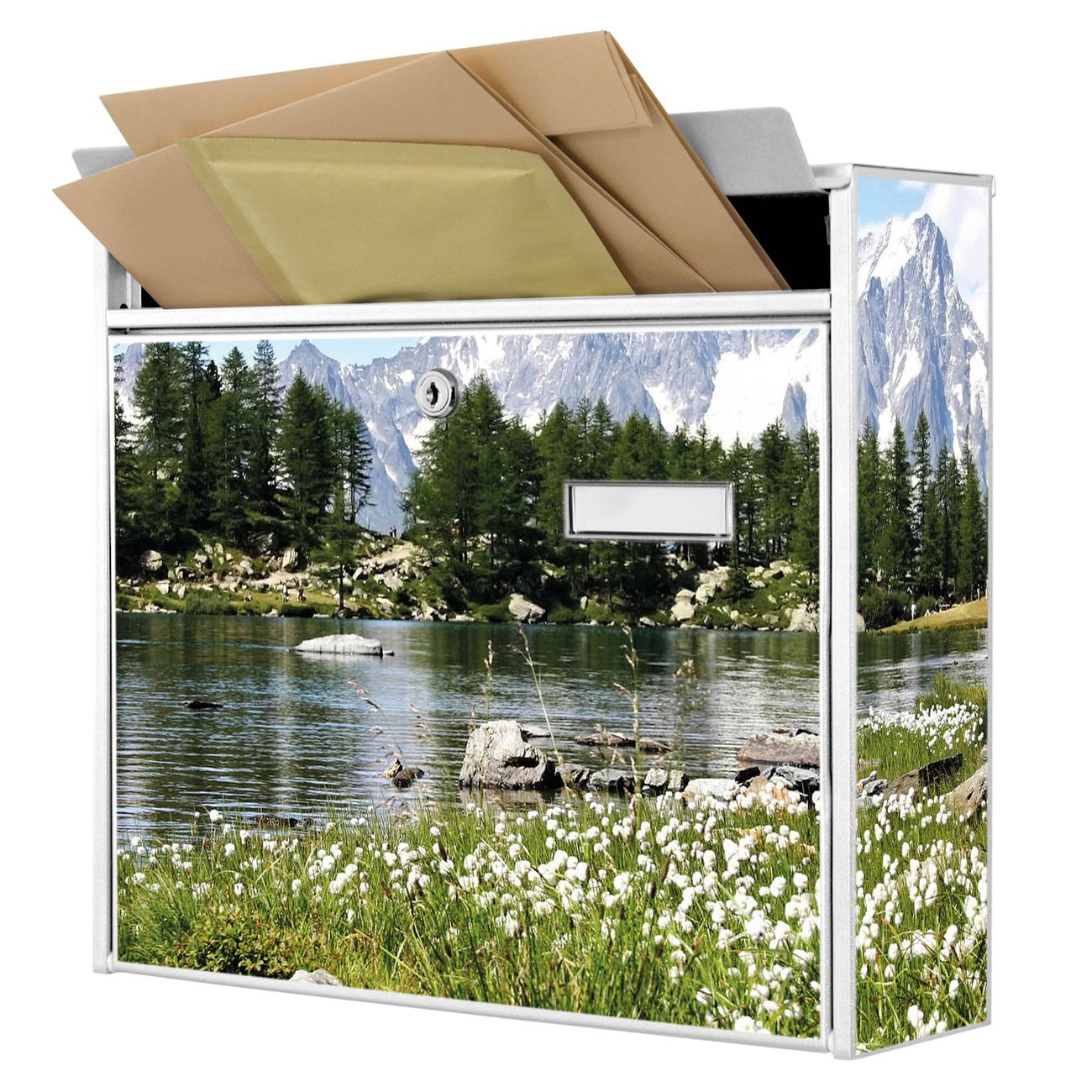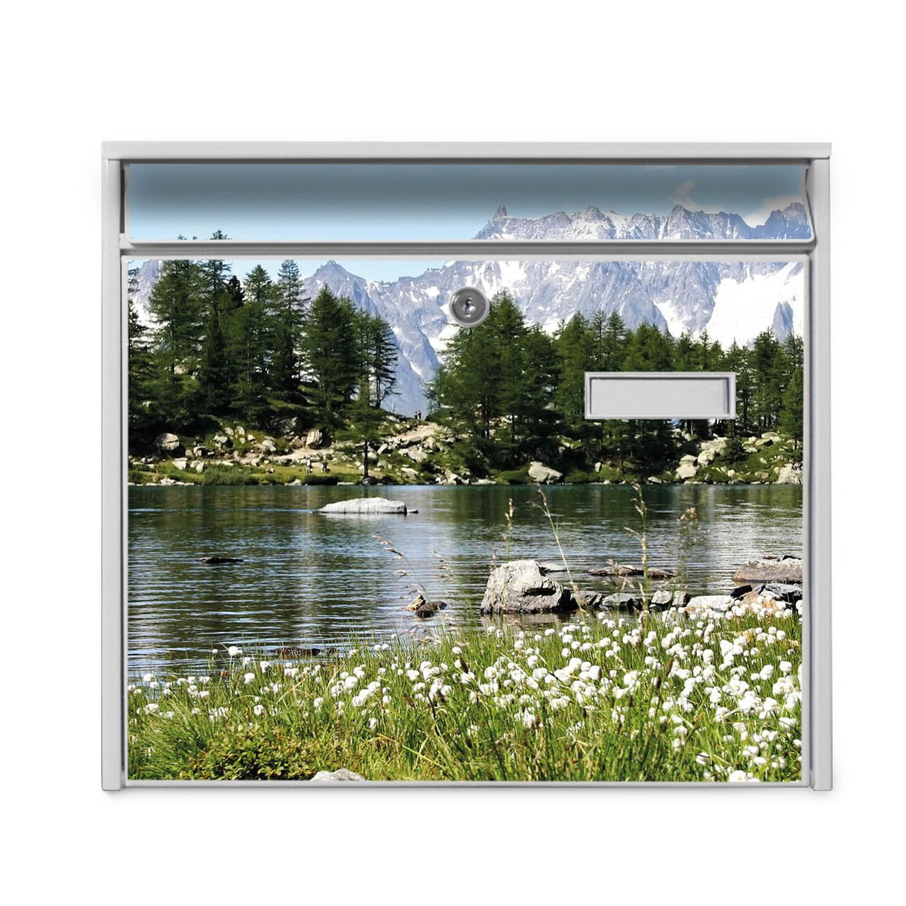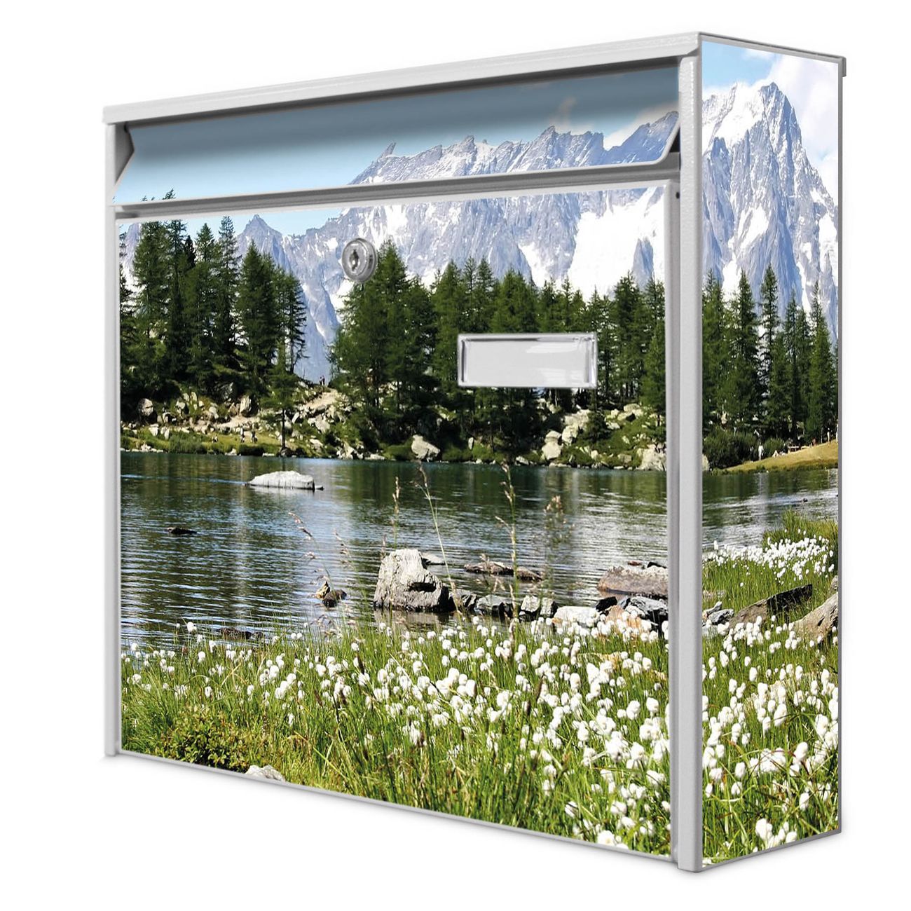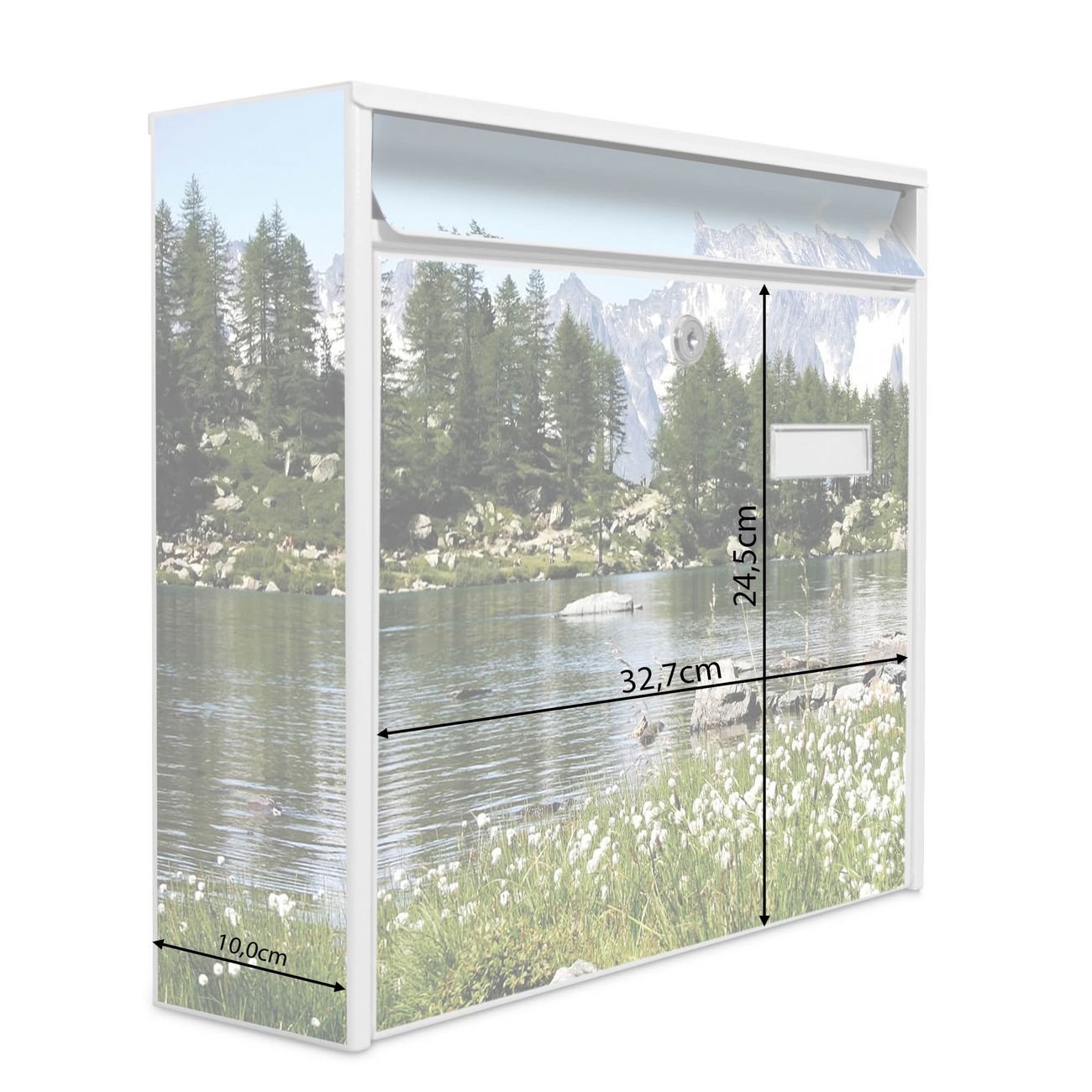 Der Burg Wächter Mail Briefkasten mit Motiv Bergidylle bietet Ihnen mit seinem Fassungsvermögen genügend Platz auch für große A4 Sendungen. Auf Wunsch können Sie bei uns den passenden Standfuß kaufen und so aus dem Wandbriefkasten einen Standbriefkasten machen. Wir bieten Ihnen ebenfalls Namensschilder, bereits beschriftet oder frei zu beschriften, und verschiedene selbst gestaltete Bitte-Keine-Werbung-Aufkleber.