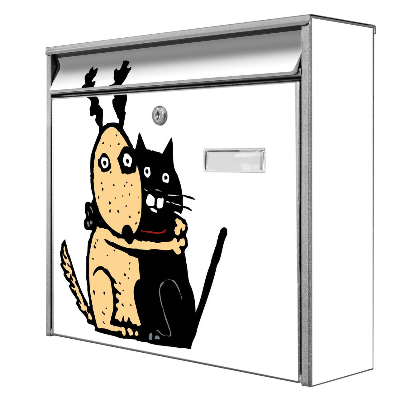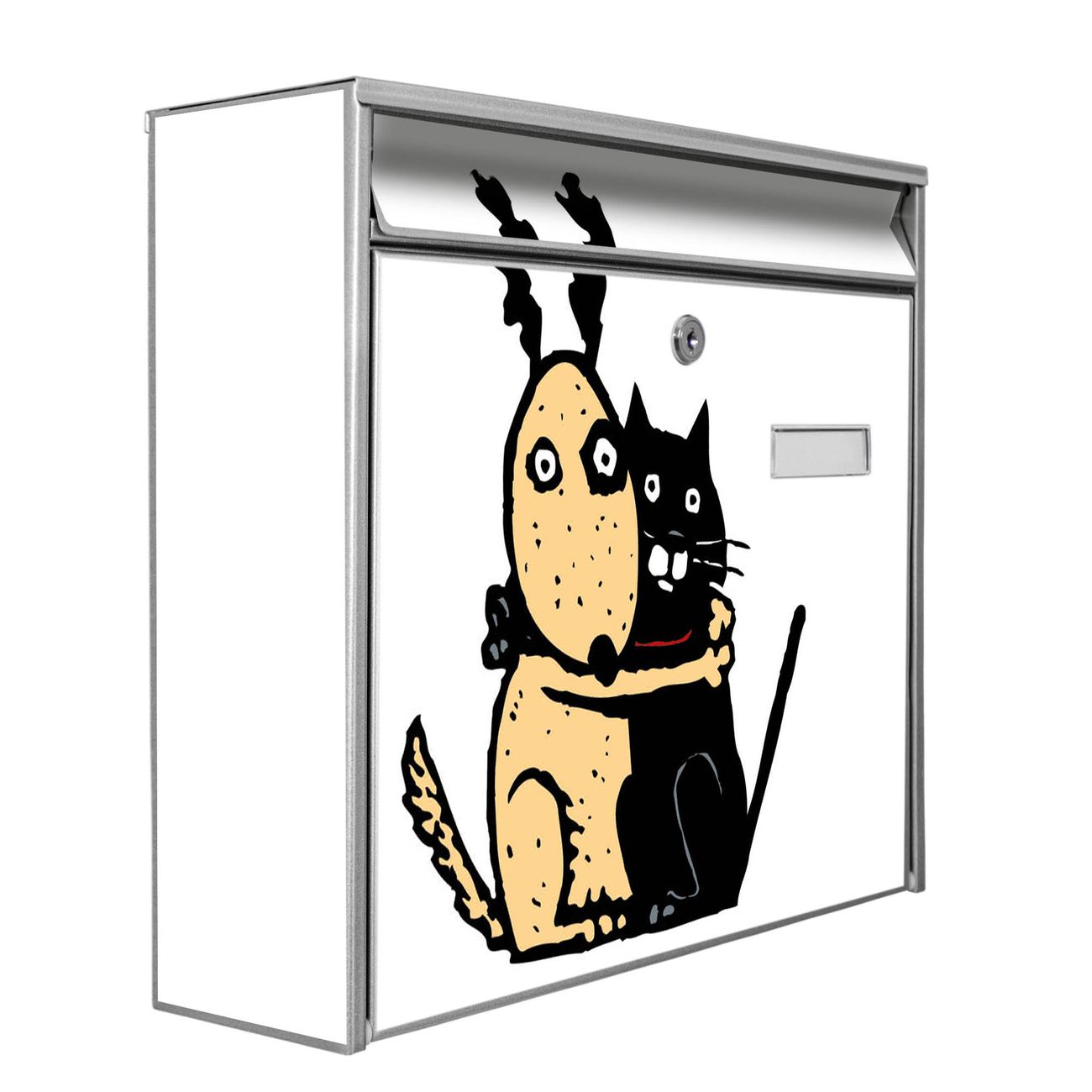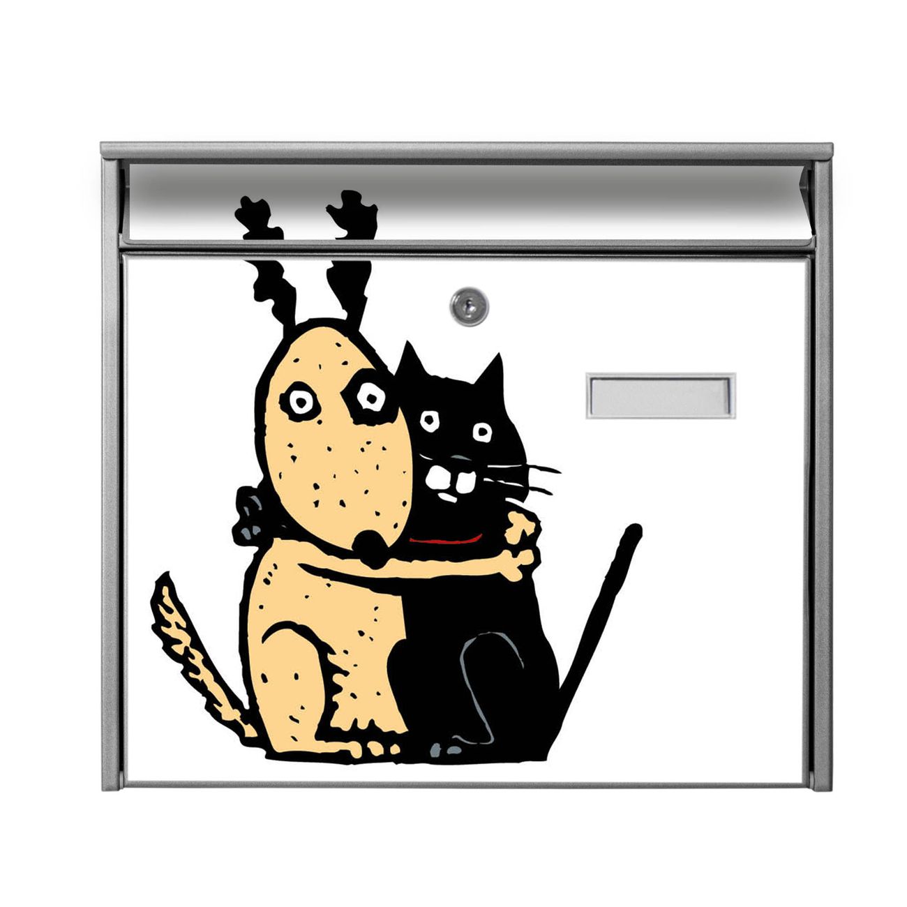 Der Burg Wächter Mail Briefkasten mit Motiv Beste Freunde Immer bietet Ihnen mit seinem Fassungsvermögen genügend Platz auch für große A4 Sendungen. Auf Wunsch können Sie bei uns den passenden Standfuß kaufen und so aus dem Wandbriefkasten einen Standbriefkasten machen. Wir bieten Ihnen ebenfalls Namensschilder, bereits beschriftet oder frei zu beschriften, und verschiedene selbst gestaltete Bitte-Keine-Werbung-Aufkleber.
