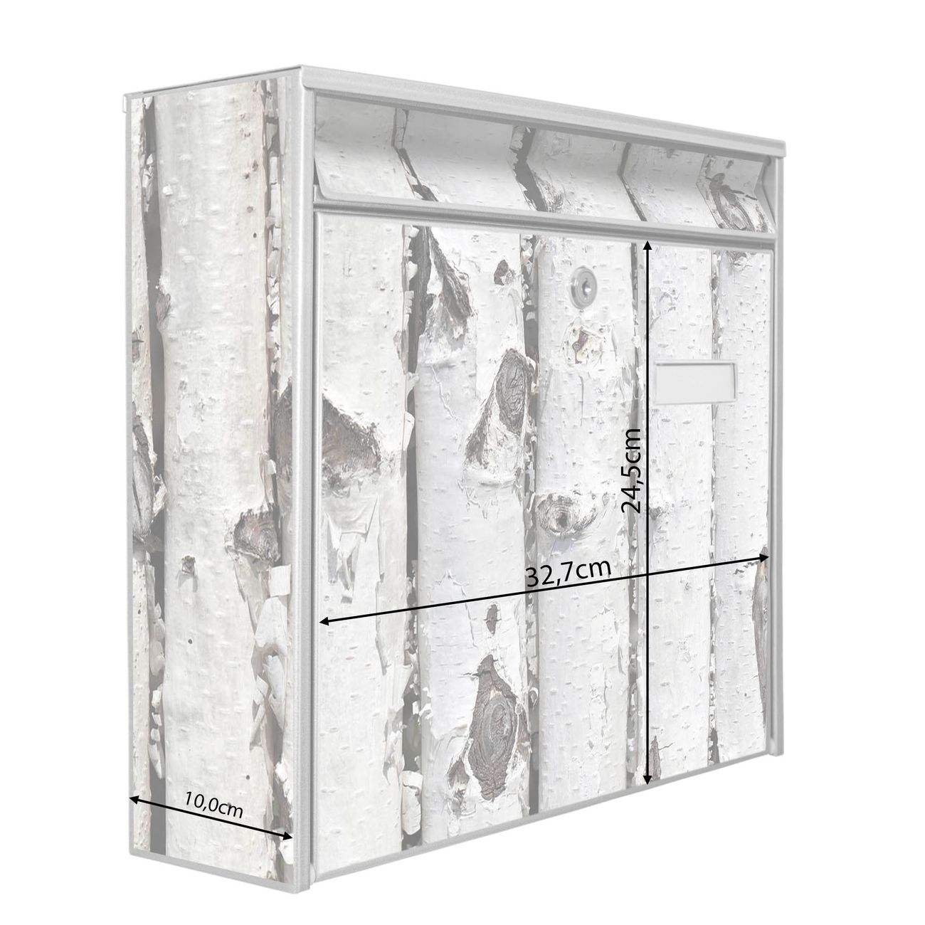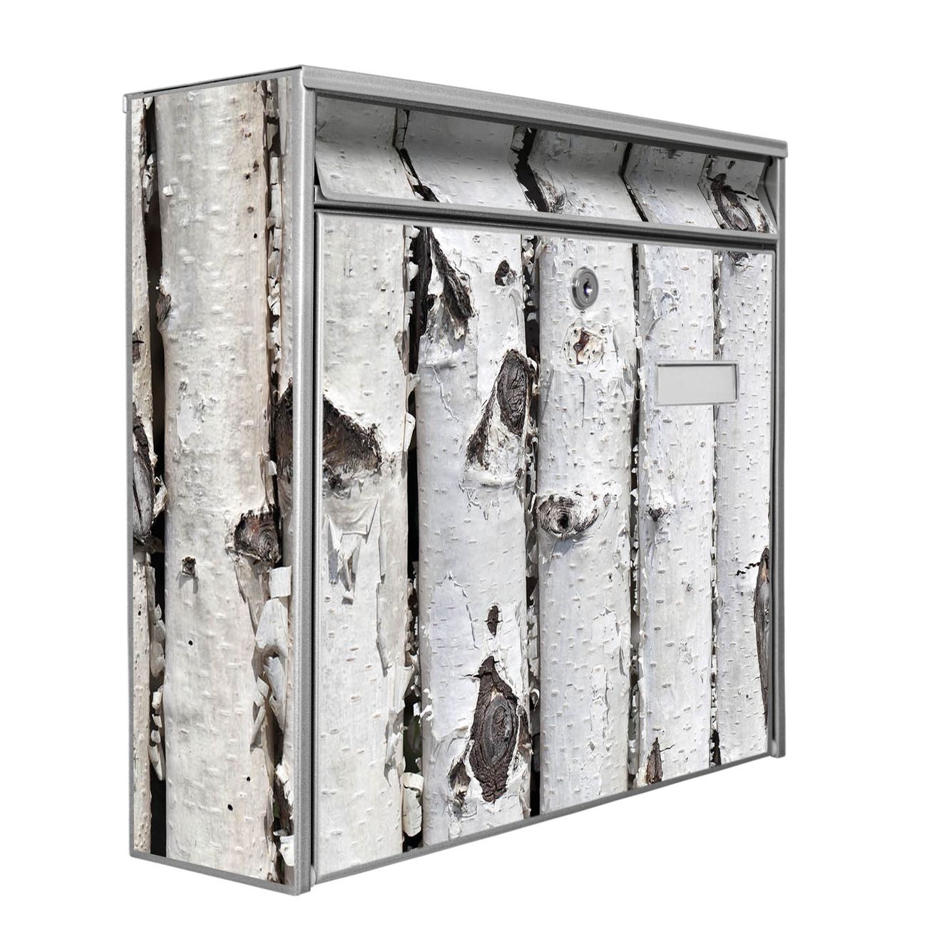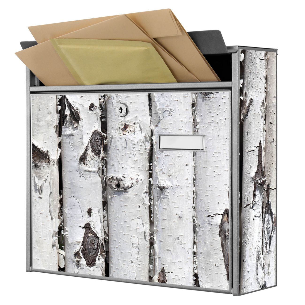 Der Burg Wächter Mail Briefkasten mit Motiv Birkenrinde bietet Ihnen mit seinem Fassungsvermögen genügend Platz auch für große A4 Sendungen. Auf Wunsch können Sie bei uns den passenden Standfuß kaufen und so aus dem Wandbriefkasten einen Standbriefkasten machen. Wir bieten Ihnen ebenfalls Namensschilder, bereits beschriftet oder frei zu beschriften, und verschiedene selbst gestaltete Bitte-Keine-Werbung-Aufkleber.
