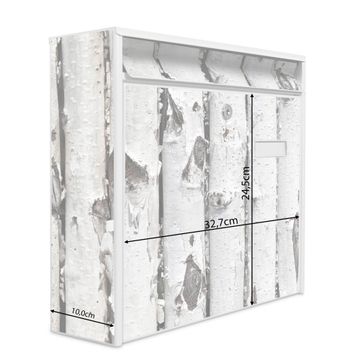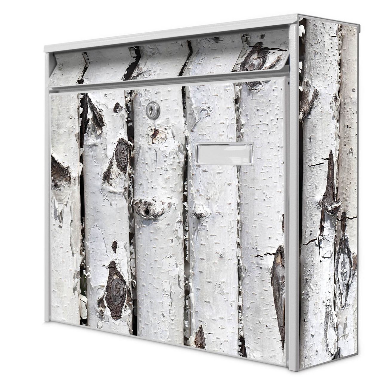 Der Burg Wächter Mail Briefkasten mit Motiv Birkenrinde bietet Ihnen mit seinem Fassungsvermögen genügend Platz auch für große A4 Sendungen. Auf Wunsch können Sie bei uns den passenden Standfuß kaufen und so aus dem Wandbriefkasten einen Standbriefkasten machen. Wir bieten Ihnen ebenfalls Namensschilder, bereits beschriftet oder frei zu beschriften, und verschiedene selbst gestaltete Bitte-Keine-Werbung-Aufkleber.