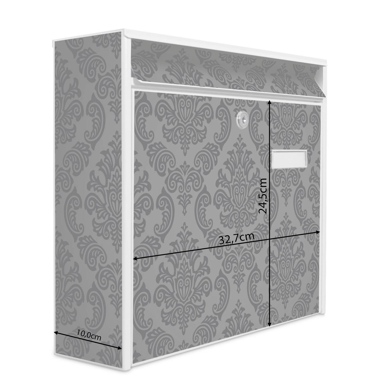 Die Größe des Briefkastens ist 36 x 32 x 10cm (BxHxT) groß. Das Motiv besteht aus einer wetter- und UV-festen Folie, die mit einem Schutzlaminat überzogen ist und Ihren Briefkasten zusätzlich vor Kratzern schützt. Sie erhalten 2 Schlüssel sowie das Montagematerial.