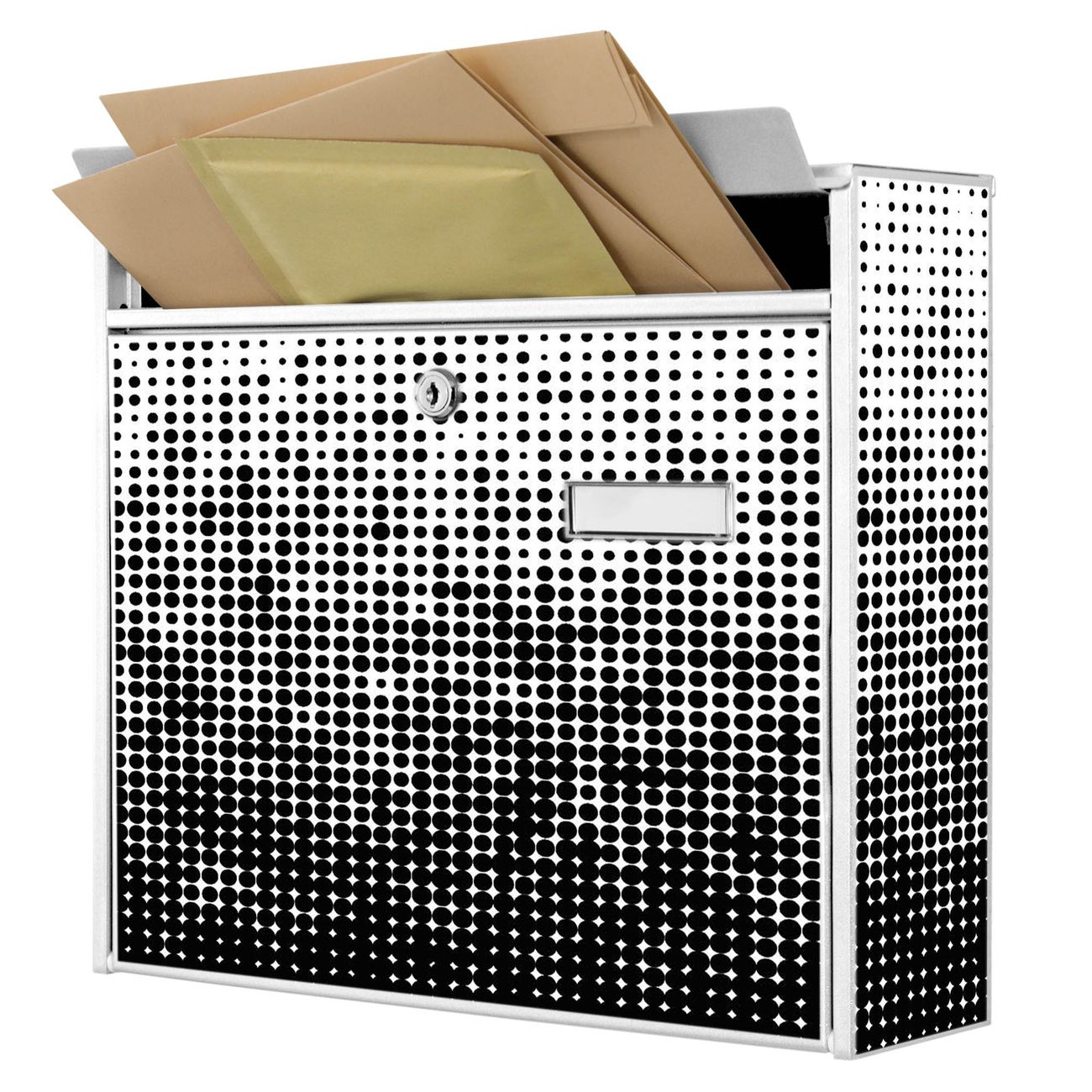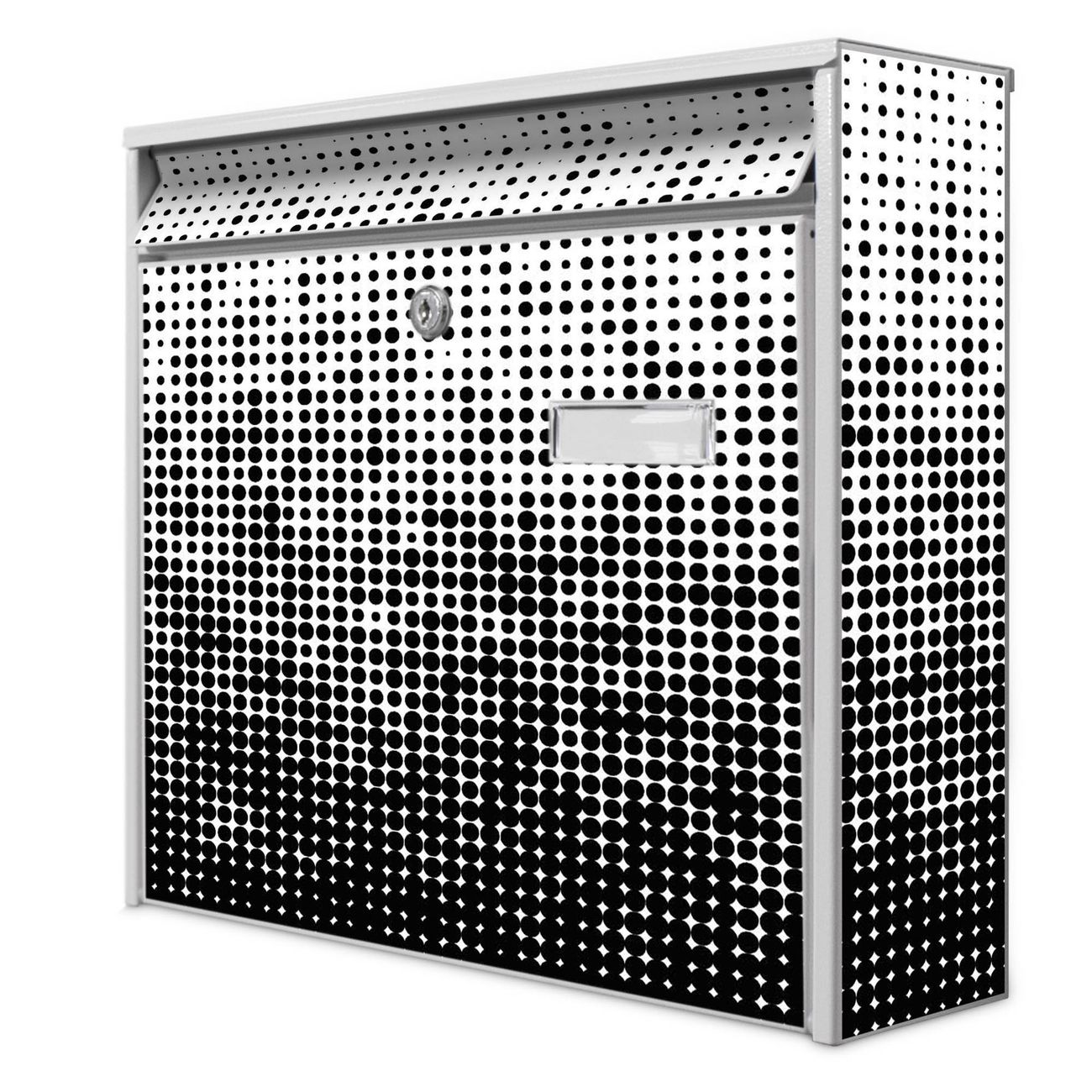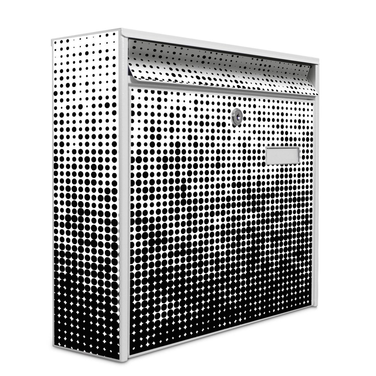Der Burg Wächter Mail Briefkasten mit Motiv Black or White bietet Ihnen mit seinem Fassungsvermögen genügend Platz auch für große A4 Sendungen. Auf Wunsch können Sie bei uns den passenden Standfuß kaufen und so aus dem Wandbriefkasten einen Standbriefkasten machen. Wir bieten Ihnen ebenfalls Namensschilder, bereits beschriftet oder frei zu beschriften, und verschiedene selbst gestaltete Bitte-Keine-Werbung-Aufkleber.
