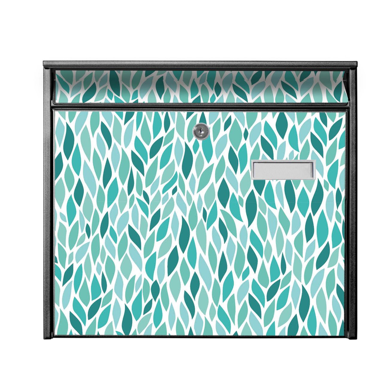 Der Postkasten mit Motiv Blätter Mint hat ein sehr ansprechendes und zeitloses Design. Heben Sie Sich von der tristen grauen Masse ab, ohne auf Funktionalität zu verzichten. Die weite Öffnung ohne scharfe Kanten ermöglicht eine einfache Handhabung beim Entnehmen der Post. Die Größe bietet genügend Platz für Sendungen aller Art, der Einwurf fasst auch größere A4 Sendungen. Ihr Burg-Wächter Motivbriefkasten wird in Sachsen in einer kleinen Manufaktur von Hand veredelt. Die Motivfolie ist lösungsmittelfrei und schutzlaminiert, dies sorgt für einen langen Halt. Wir legen großen Wert auf die Verbindung von Funktionalität und Design.