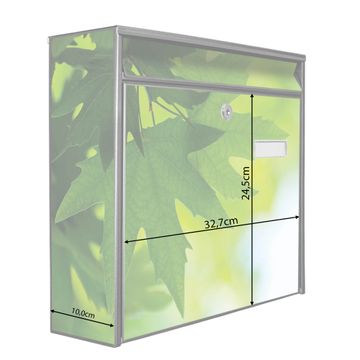 Der Burg Wächter Mail Briefkasten mit Motiv Blättertraum bietet Ihnen mit seinem Fassungsvermögen genügend Platz auch für große A4 Sendungen. Auf Wunsch können Sie bei uns den passenden Standfuß kaufen und so aus dem Wandbriefkasten einen Standbriefkasten machen. Wir bieten Ihnen ebenfalls Namensschilder, bereits beschriftet oder frei zu beschriften, und verschiedene selbst gestaltete Bitte-Keine-Werbung-Aufkleber.