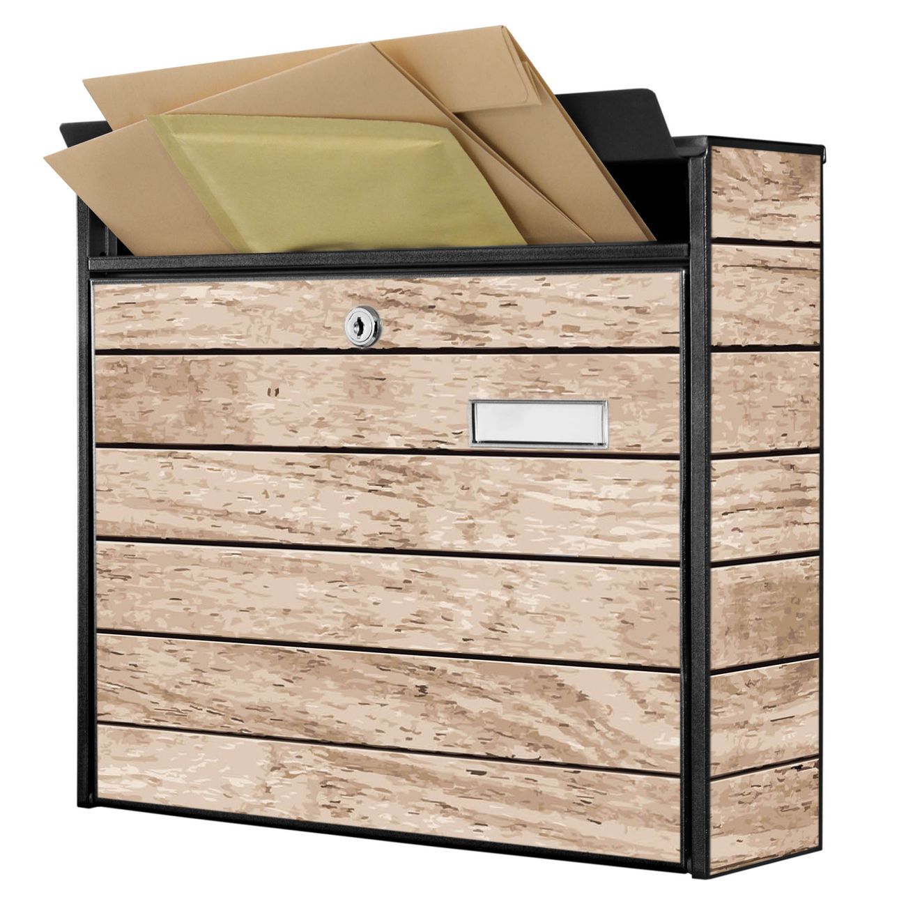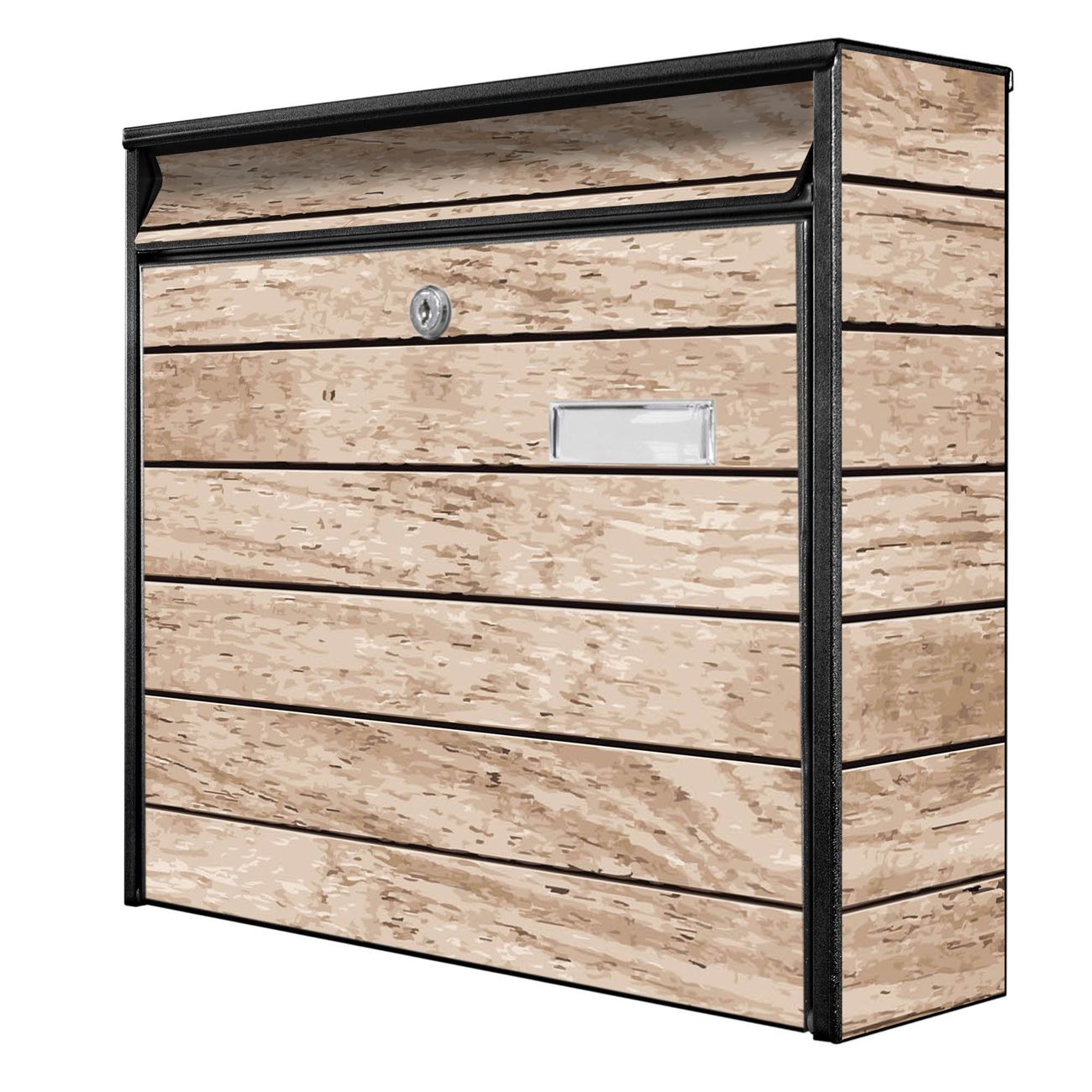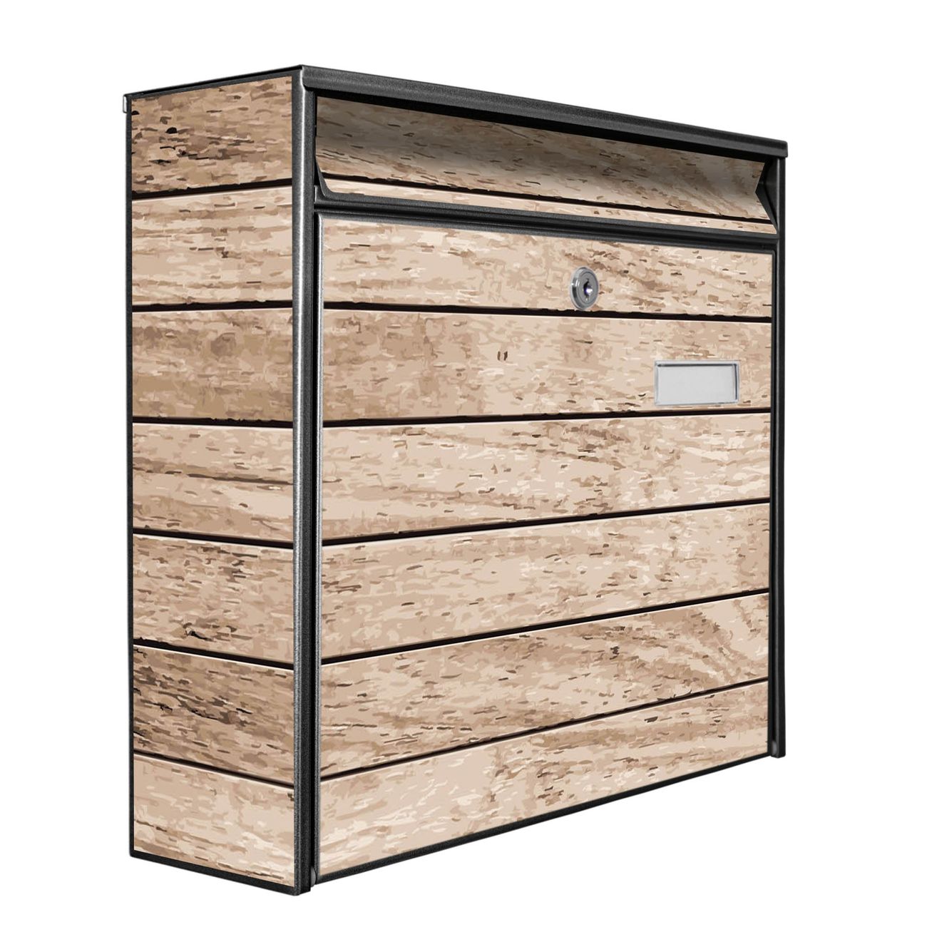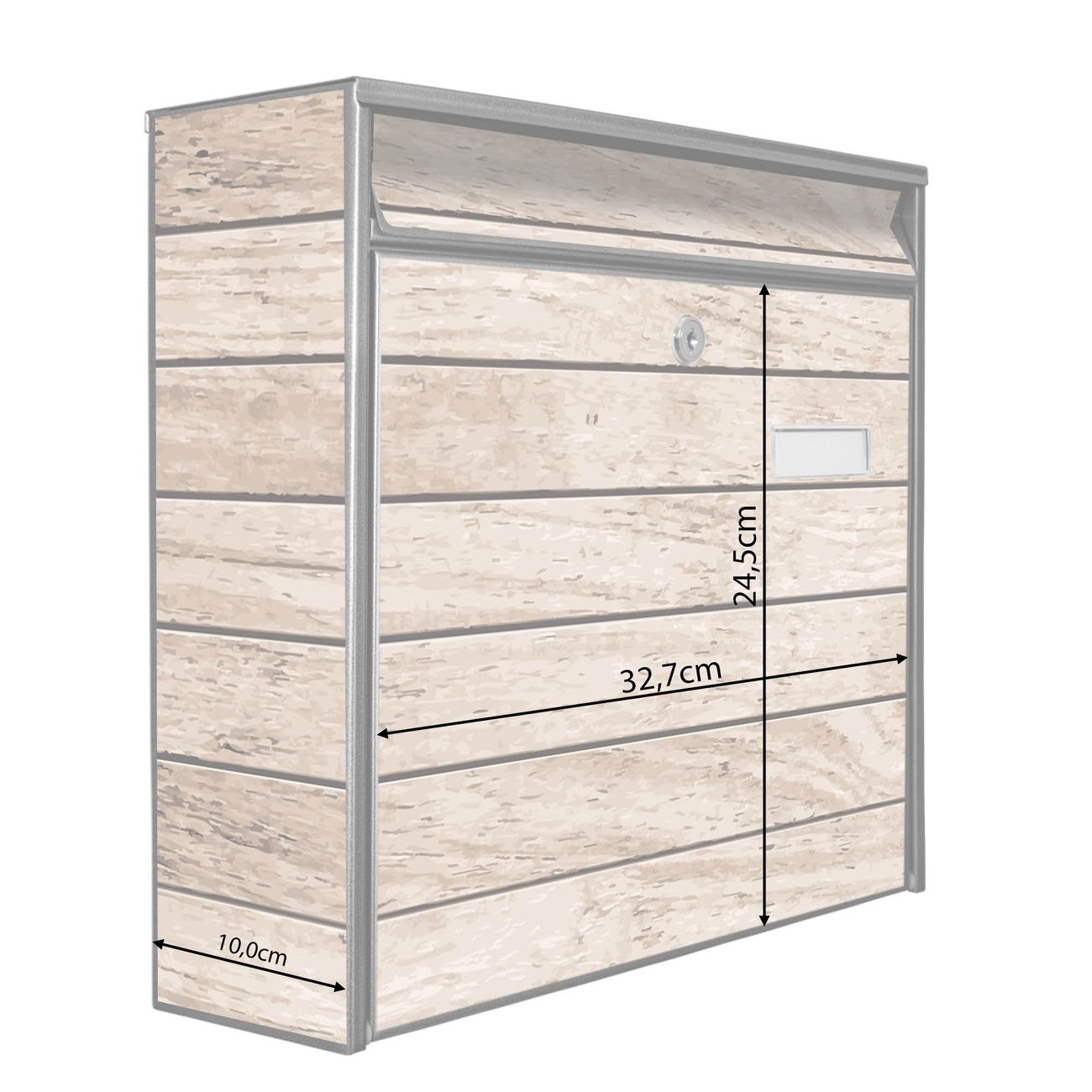 Der Burg Wächter Mail Briefkasten mit Motiv Blasse Holzlatten bietet Ihnen mit seinem Fassungsvermögen genügend Platz auch für große A4 Sendungen. Auf Wunsch können Sie bei uns den passenden Standfuß kaufen und so aus dem Wandbriefkasten einen Standbriefkasten machen. Wir bieten Ihnen ebenfalls Namensschilder, bereits beschriftet oder frei zu beschriften, und verschiedene selbst gestaltete Bitte-Keine-Werbung-Aufkleber.