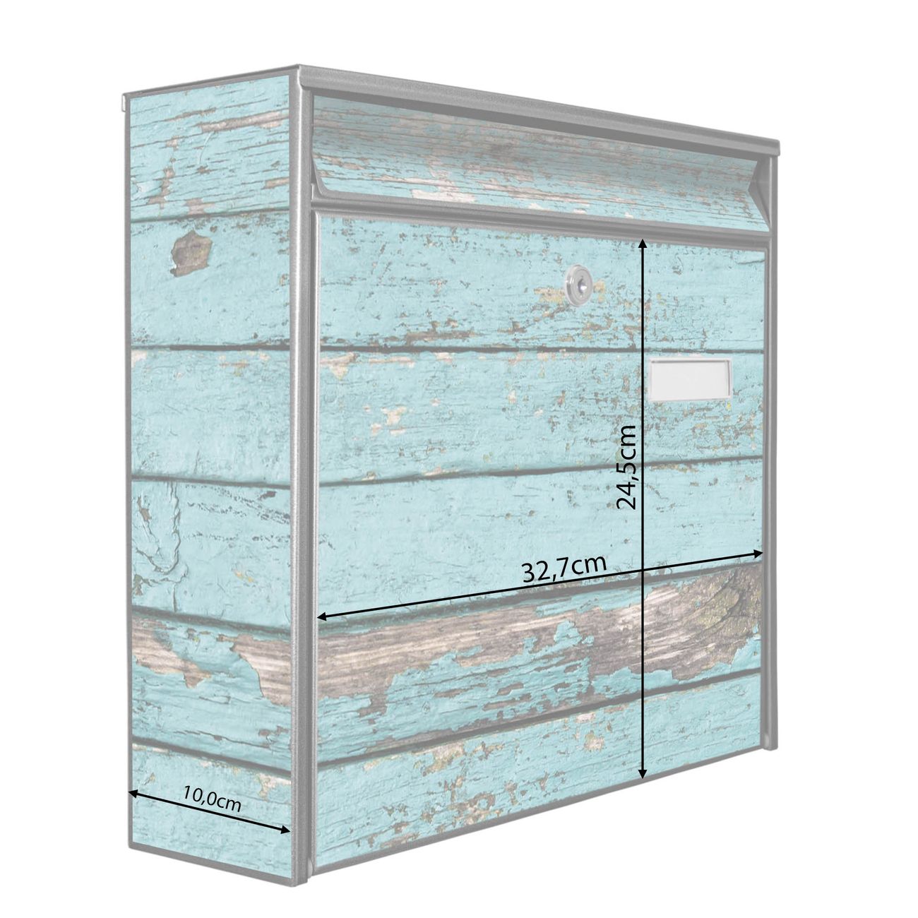 Der Burg Wächter Mail Briefkasten mit Motiv Blaue Holzlatten bietet Ihnen mit seinem Fassungsvermögen genügend Platz auch für große A4 Sendungen. Auf Wunsch können Sie bei uns den passenden Standfuß kaufen und so aus dem Wandbriefkasten einen Standbriefkasten machen. Wir bieten Ihnen ebenfalls Namensschilder, bereits beschriftet oder frei zu beschriften, und verschiedene selbst gestaltete Bitte-Keine-Werbung-Aufkleber.