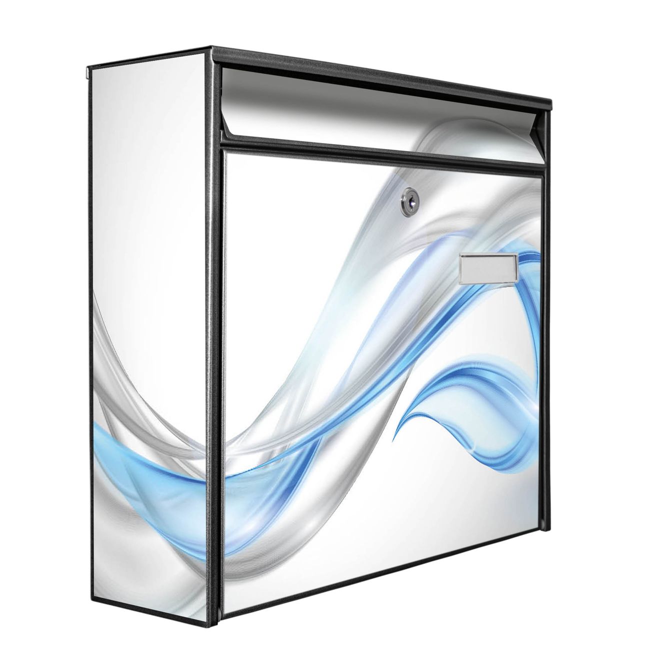 Der Postkasten mit Motiv Blauer Schleier hat ein sehr ansprechendes und zeitloses Design. Heben Sie Sich von der tristen grauen Masse ab, ohne auf Funktionalität zu verzichten. Die weite Öffnung ohne scharfe Kanten ermöglicht eine einfache Handhabung beim Entnehmen der Post. Die Größe bietet genügend Platz für Sendungen aller Art, der Einwurf fasst auch größere A4 Sendungen. Ihr Burg-Wächter Motivbriefkasten wird in Sachsen in einer kleinen Manufaktur von Hand veredelt. Die Motivfolie ist lösungsmittelfrei und schutzlaminiert, dies sorgt für einen langen Halt. Wir legen großen Wert auf die Verbindung von Funktionalität und Design.