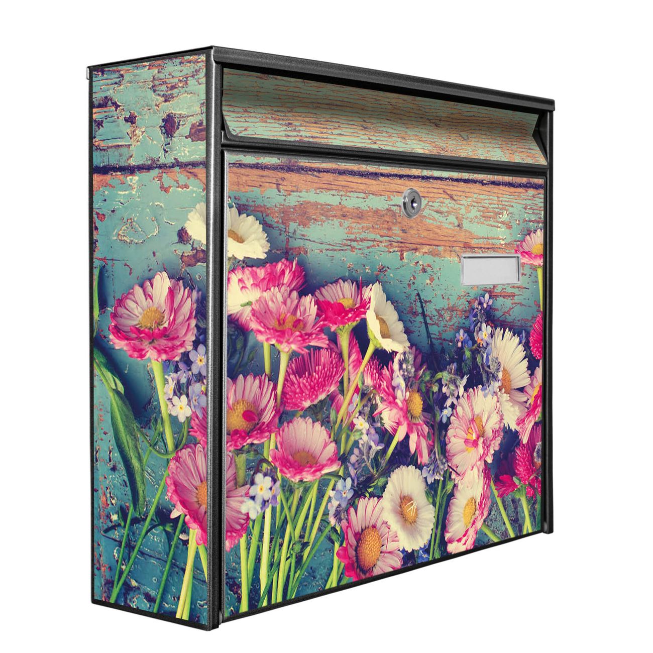 Der Burg Wächter Mail Briefkasten mit Motiv Blumenpfücken bietet Ihnen mit seinem Fassungsvermögen genügend Platz auch für große A4 Sendungen. Auf Wunsch können Sie bei uns den passenden Standfuß kaufen und so aus dem Wandbriefkasten einen Standbriefkasten machen. Wir bieten Ihnen ebenfalls Namensschilder, bereits beschriftet oder frei zu beschriften, und verschiedene selbst gestaltete Bitte-Keine-Werbung-Aufkleber.
