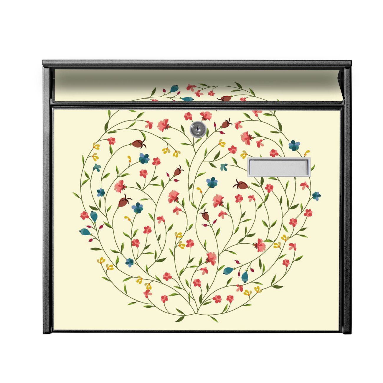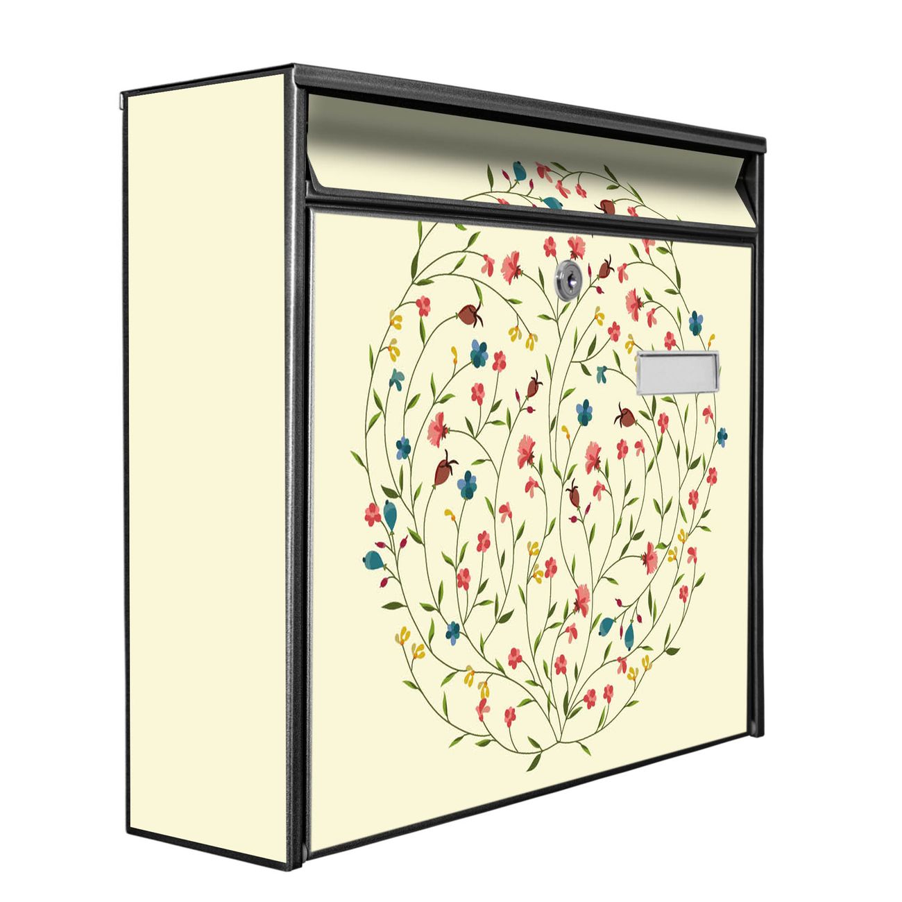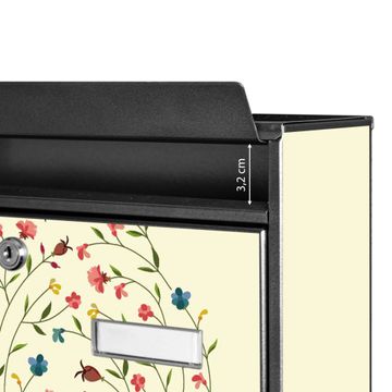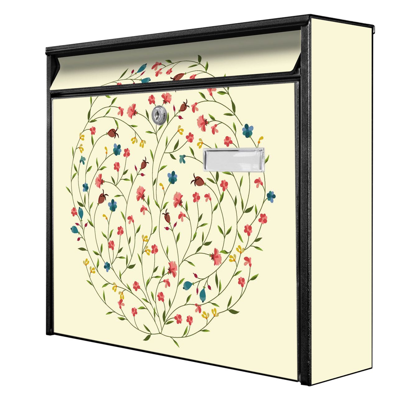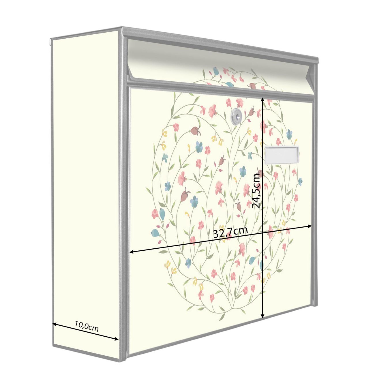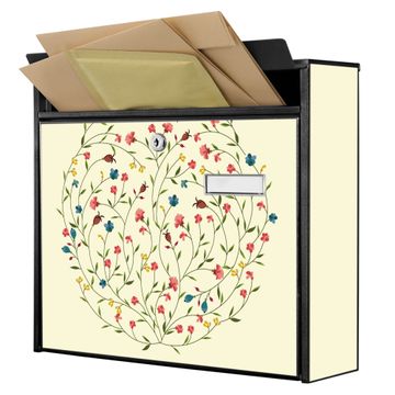Der Burg Wächter Mail Briefkasten mit Motiv Blumenreigen bietet Ihnen mit seinem Fassungsvermögen genügend Platz auch für große A4 Sendungen. Auf Wunsch können Sie bei uns den passenden Standfuß kaufen und so aus dem Wandbriefkasten einen Standbriefkasten machen. Wir bieten Ihnen ebenfalls Namensschilder, bereits beschriftet oder frei zu beschriften, und verschiedene selbst gestaltete Bitte-Keine-Werbung-Aufkleber.