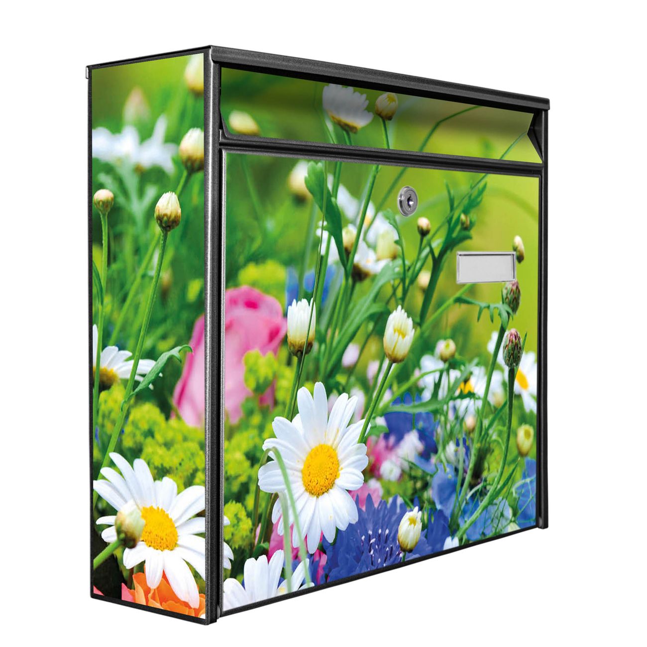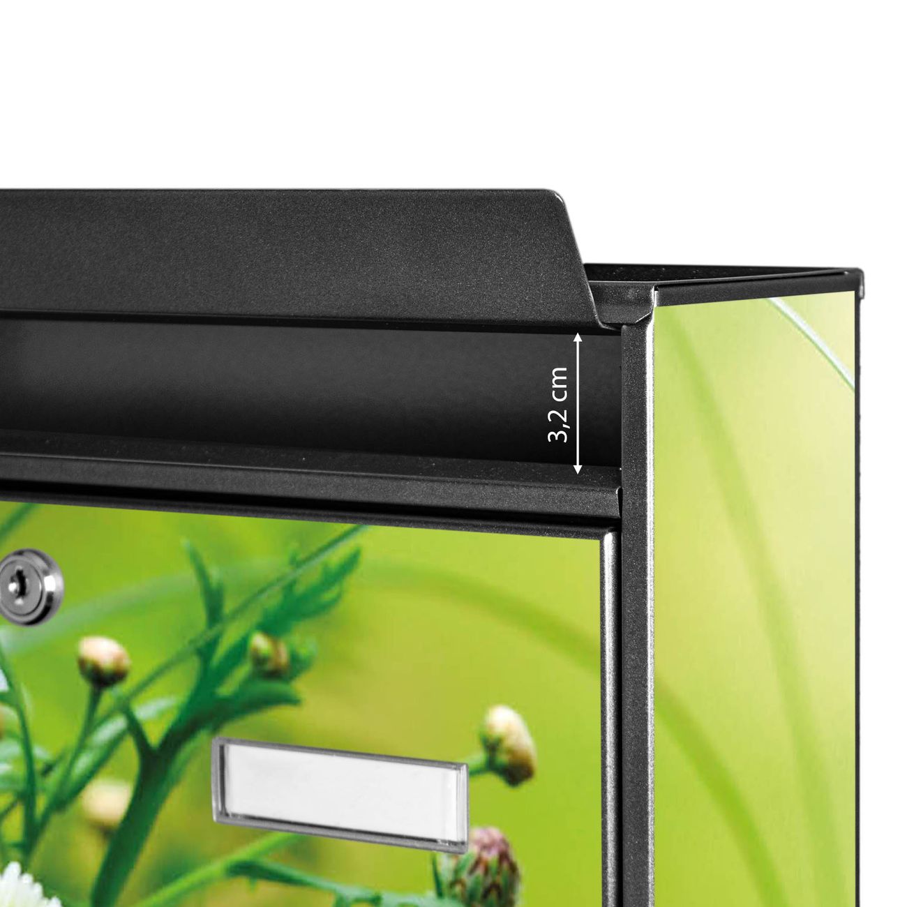 Der Burg Wächter Mail Briefkasten mit Motiv Blumenstrauß bietet Ihnen mit seinem Fassungsvermögen genügend Platz auch für große A4 Sendungen. Auf Wunsch können Sie bei uns den passenden Standfuß kaufen und so aus dem Wandbriefkasten einen Standbriefkasten machen. Wir bieten Ihnen ebenfalls Namensschilder, bereits beschriftet oder frei zu beschriften, und verschiedene selbst gestaltete Bitte-Keine-Werbung-Aufkleber.