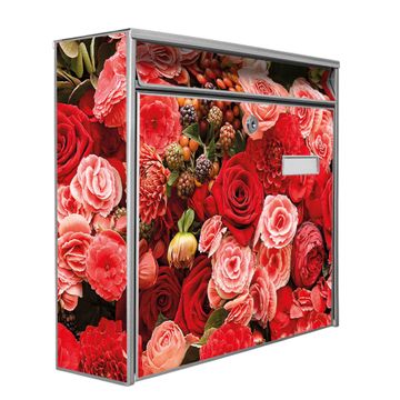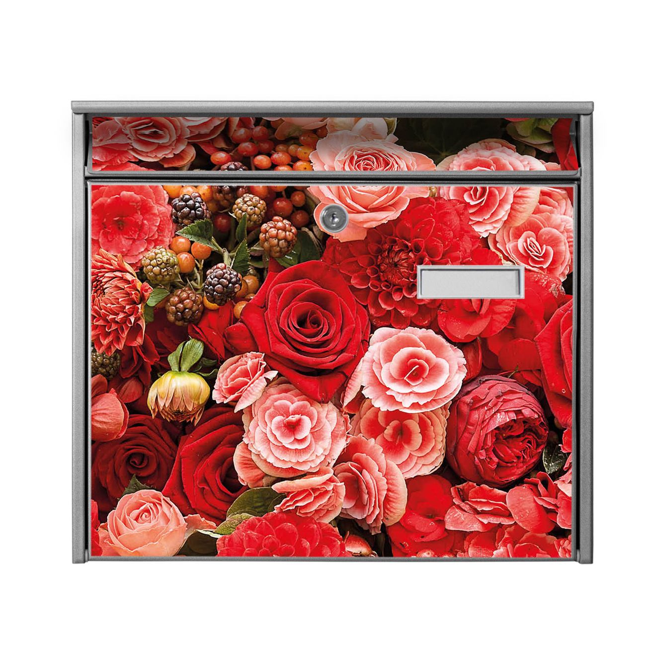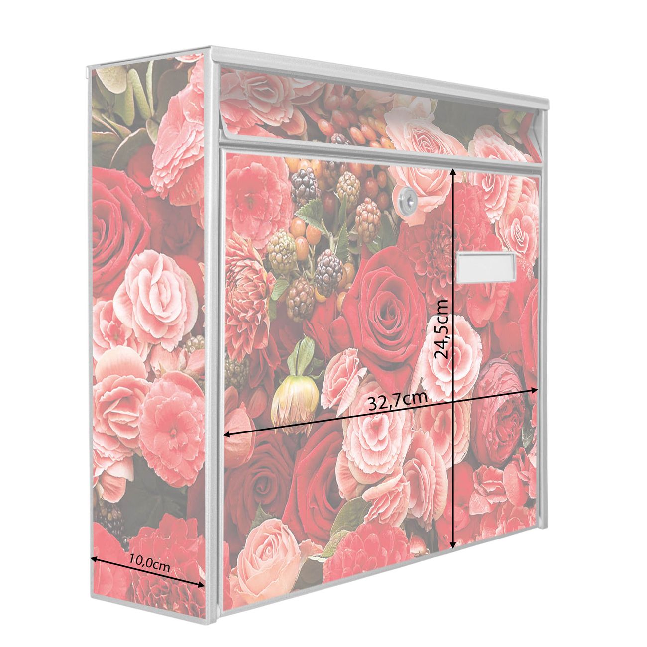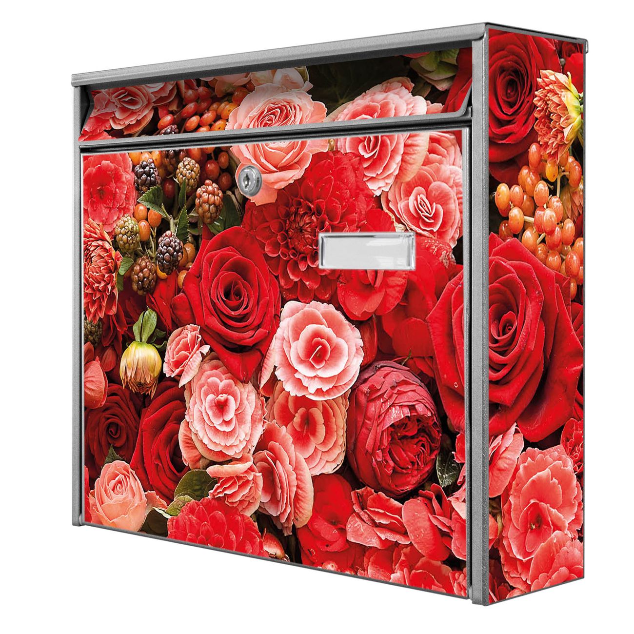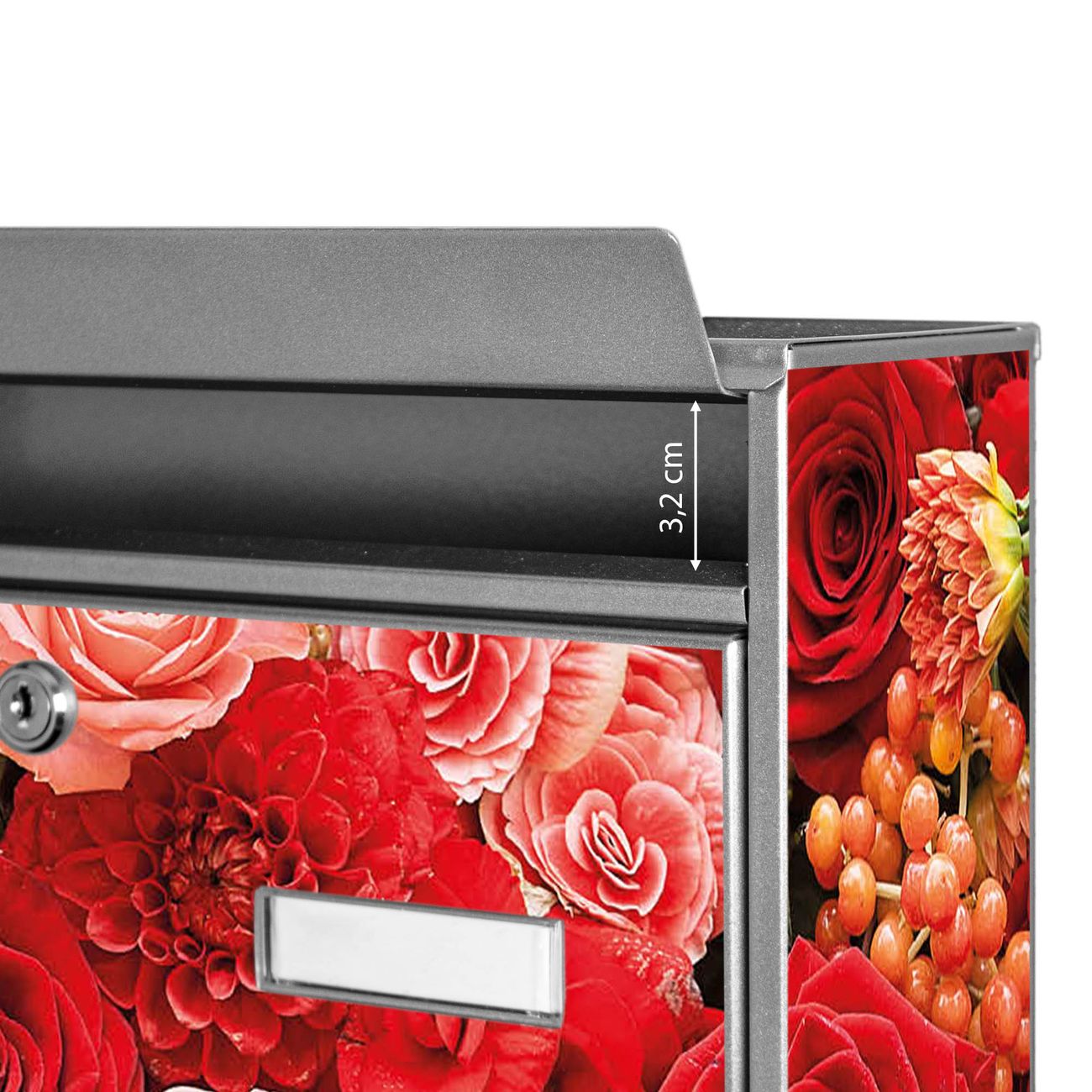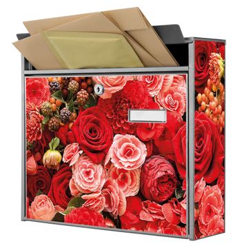 Der Burg Wächter Mail Briefkasten mit Motiv Bouquet in Rot bietet Ihnen mit seinem Fassungsvermögen genügend Platz auch für große A4 Sendungen. Auf Wunsch können Sie bei uns den passenden Standfuß kaufen und so aus dem Wandbriefkasten einen Standbriefkasten machen. Wir bieten Ihnen ebenfalls Namensschilder, bereits beschriftet oder frei zu beschriften, und verschiedene selbst gestaltete Bitte-Keine-Werbung-Aufkleber.