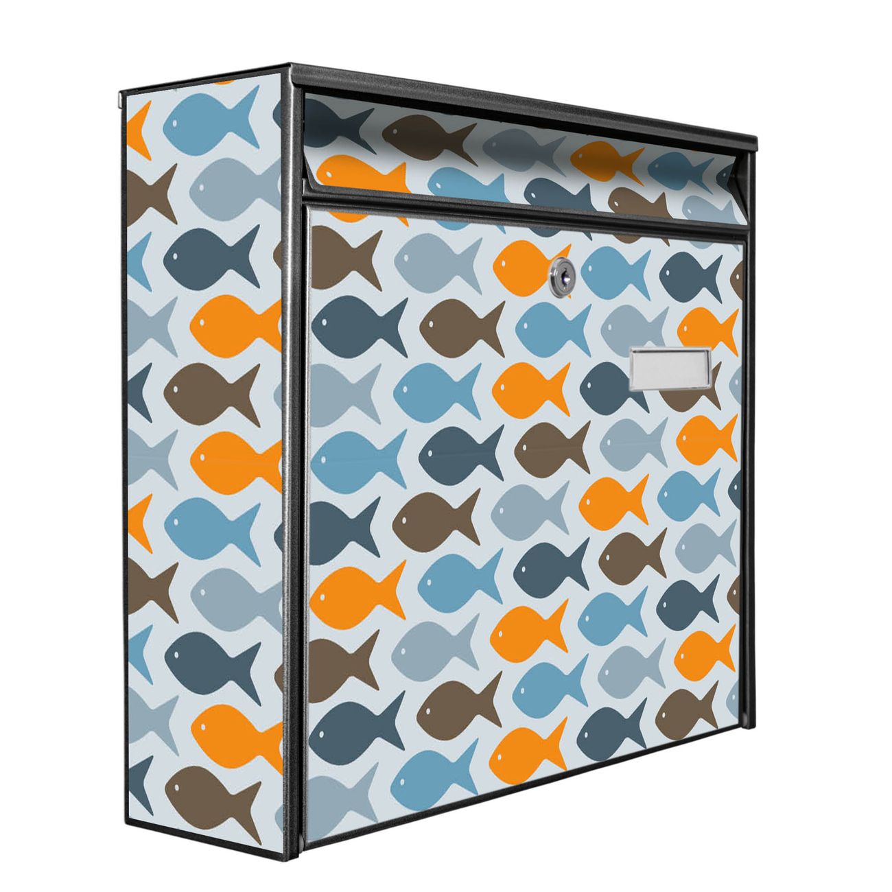 Der Postkasten mit Motiv Bunte Fische hat ein sehr ansprechendes und zeitloses Design. Heben Sie Sich von der tristen grauen Masse ab, ohne auf Funktionalität zu verzichten. Die weite Öffnung ohne scharfe Kanten ermöglicht eine einfache Handhabung beim Entnehmen der Post. Die Größe bietet genügend Platz für Sendungen aller Art, der Einwurf fasst auch größere A4 Sendungen. Ihr Burg-Wächter Motivbriefkasten wird in Sachsen in einer kleinen Manufaktur von Hand veredelt. Die Motivfolie ist lösungsmittelfrei und schutzlaminiert, dies sorgt für einen langen Halt. Wir legen großen Wert auf die Verbindung von Funktionalität und Design.