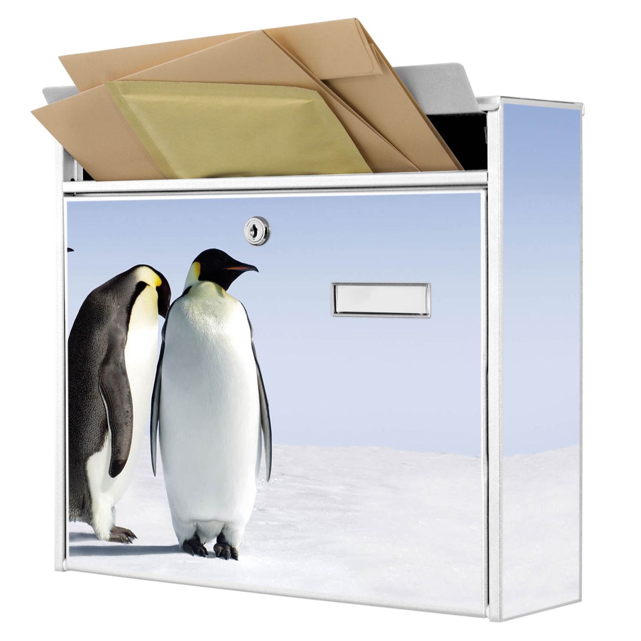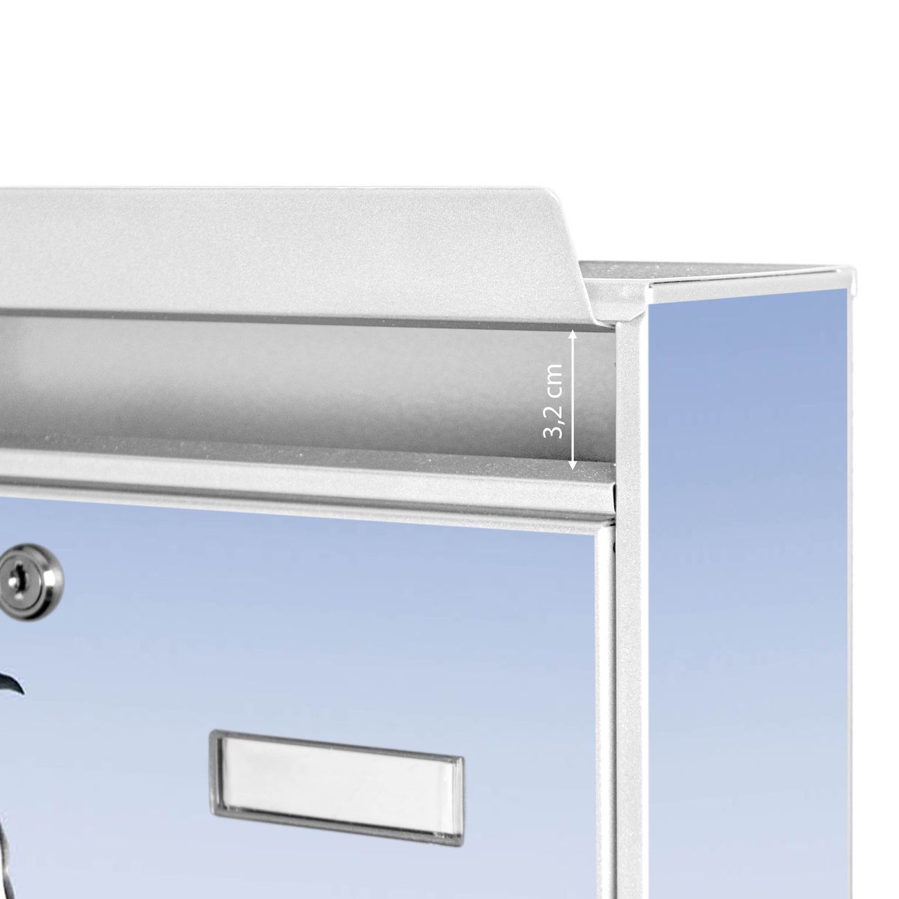 Die Größe des Briefkastens ist 36 x 32 x 10cm (BxHxT) groß. Das Motiv besteht aus einer wetter- und UV-festen Folie, die mit einem Schutzlaminat überzogen ist und Ihren Briefkasten zusätzlich vor Kratzern schützt. Sie erhalten 2 Schlüssel sowie das Montagematerial.
