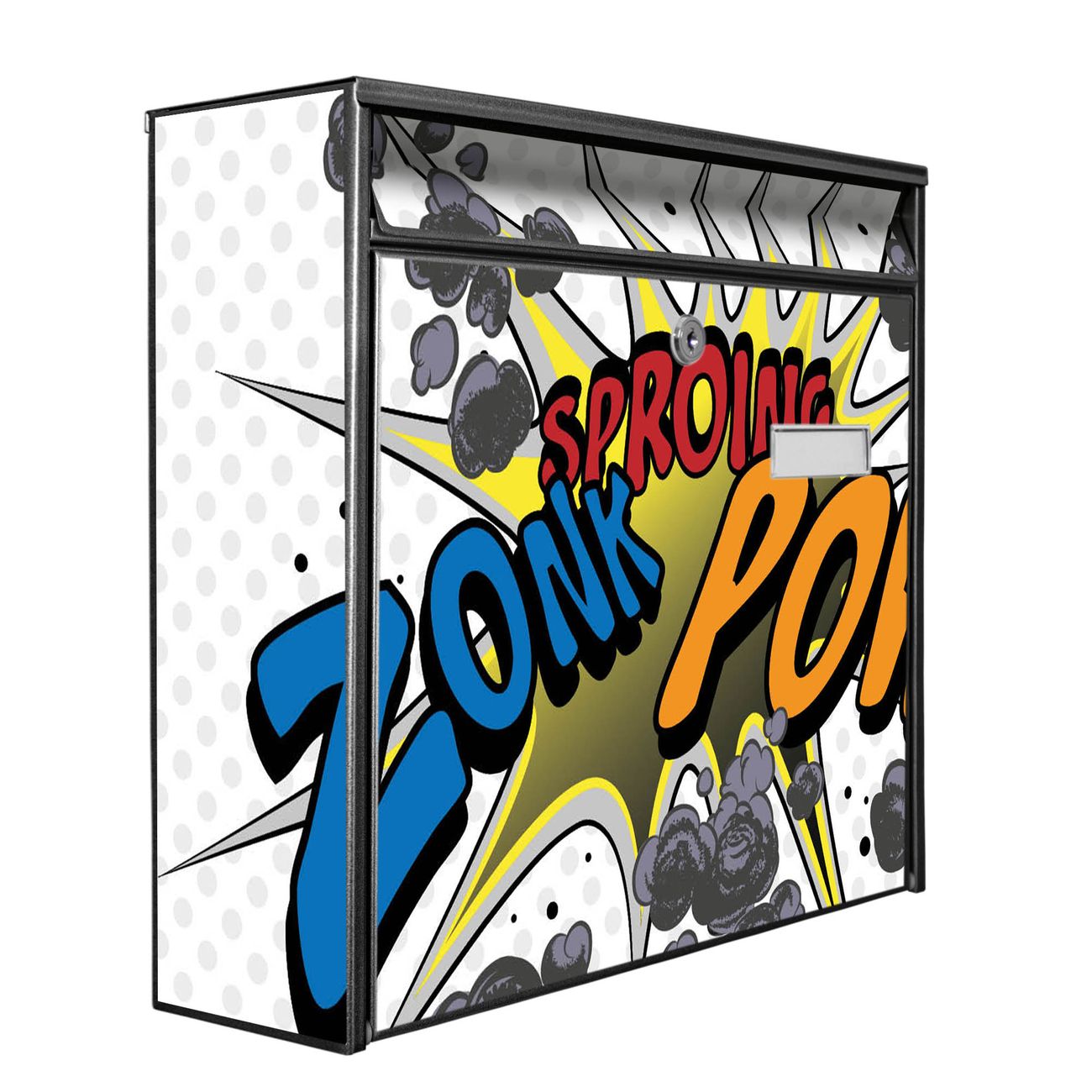 Der Postkasten mit Motiv Comic hat ein sehr ansprechendes und zeitloses Design. Heben Sie Sich von der tristen grauen Masse ab, ohne auf Funktionalität zu verzichten. Die weite Öffnung ohne scharfe Kanten ermöglicht eine einfache Handhabung beim Entnehmen der Post. Die Größe bietet genügend Platz für Sendungen aller Art, der Einwurf fasst auch größere A4 Sendungen. Ihr Burg-Wächter Motivbriefkasten wird in Sachsen in einer kleinen Manufaktur von Hand veredelt. Die Motivfolie ist lösungsmittelfrei und schutzlaminiert, dies sorgt für einen langen Halt. Wir legen großen Wert auf die Verbindung von Funktionalität und Design.