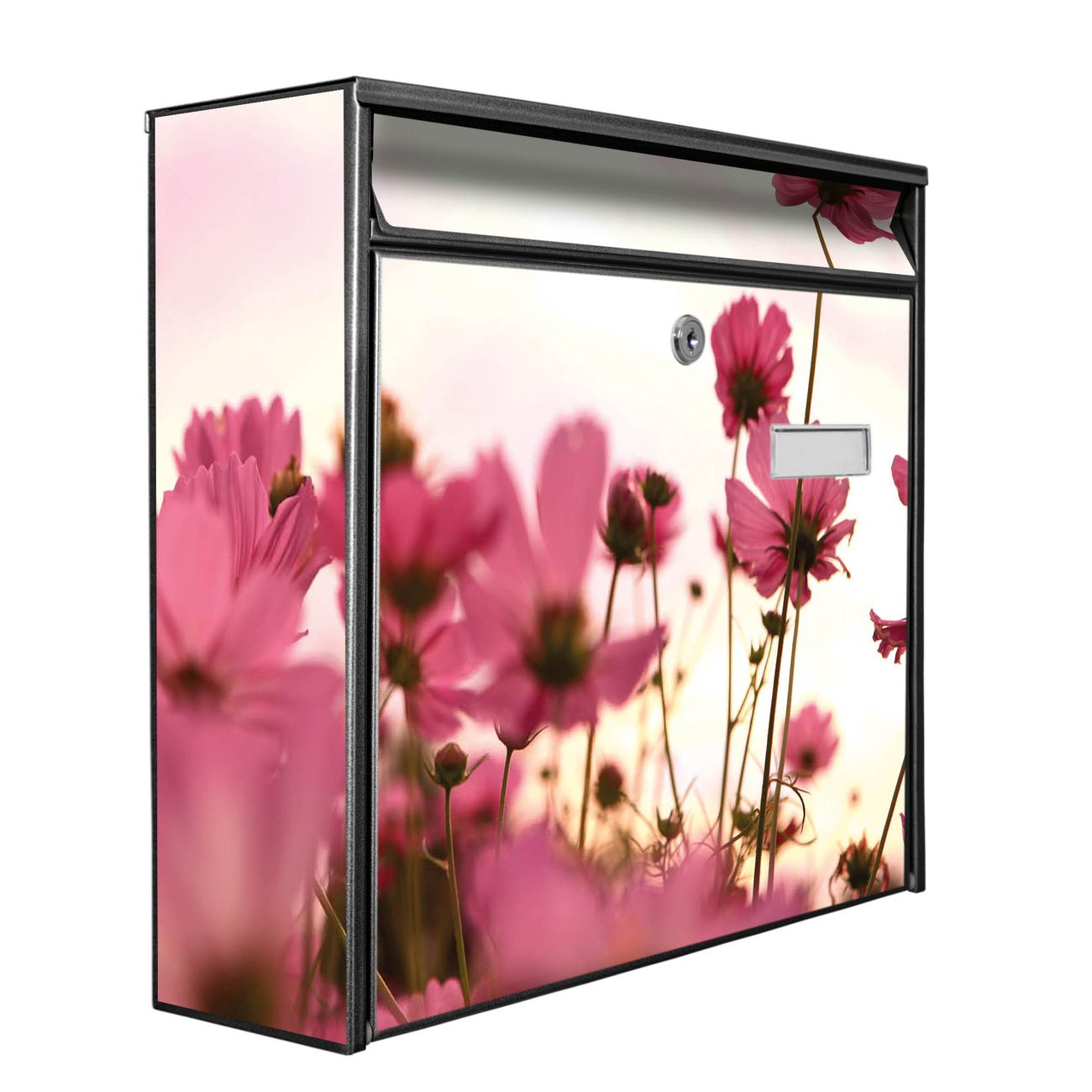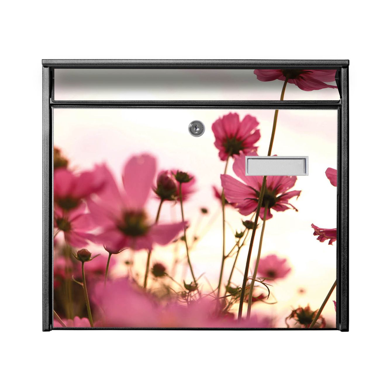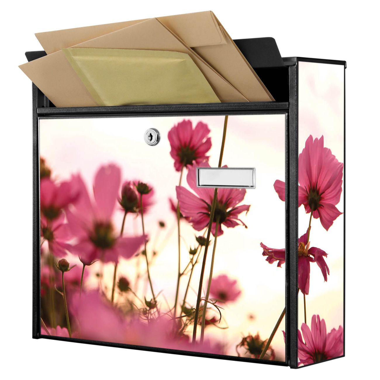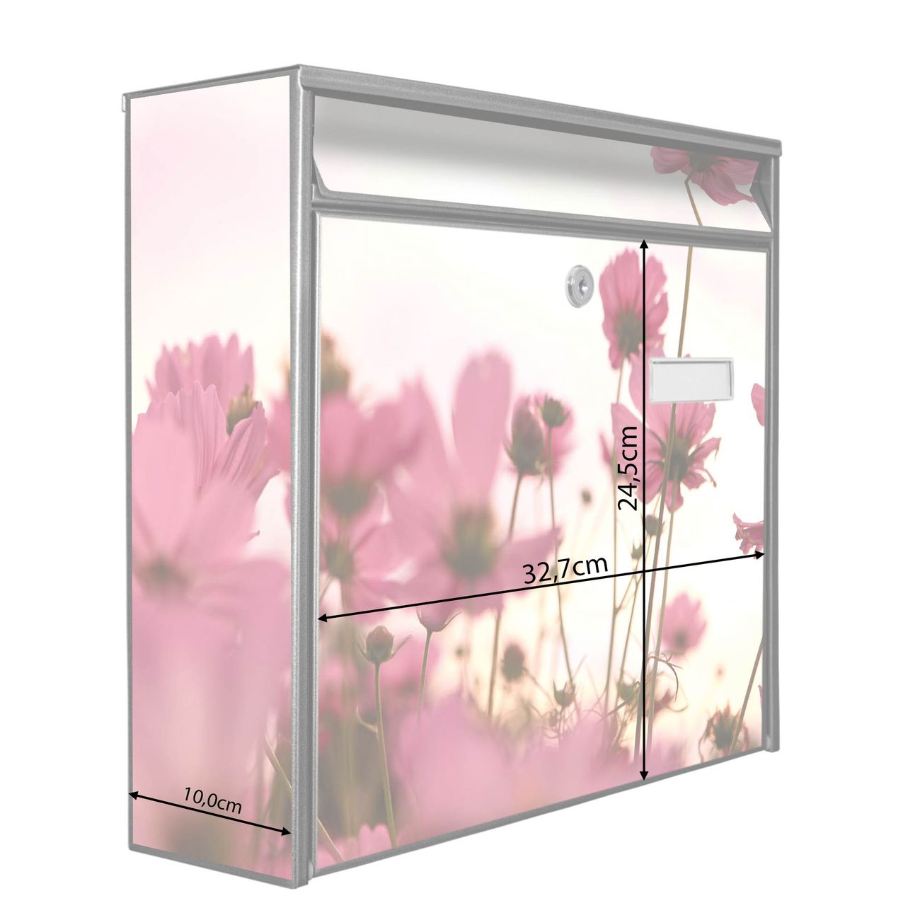 Der Burg Wächter Mail Briefkasten mit Motiv Cosmea bietet Ihnen mit seinem Fassungsvermögen genügend Platz auch für große A4 Sendungen. Auf Wunsch können Sie bei uns den passenden Standfuß kaufen und so aus dem Wandbriefkasten einen Standbriefkasten machen. Wir bieten Ihnen ebenfalls Namensschilder, bereits beschriftet oder frei zu beschriften, und verschiedene selbst gestaltete Bitte-Keine-Werbung-Aufkleber.