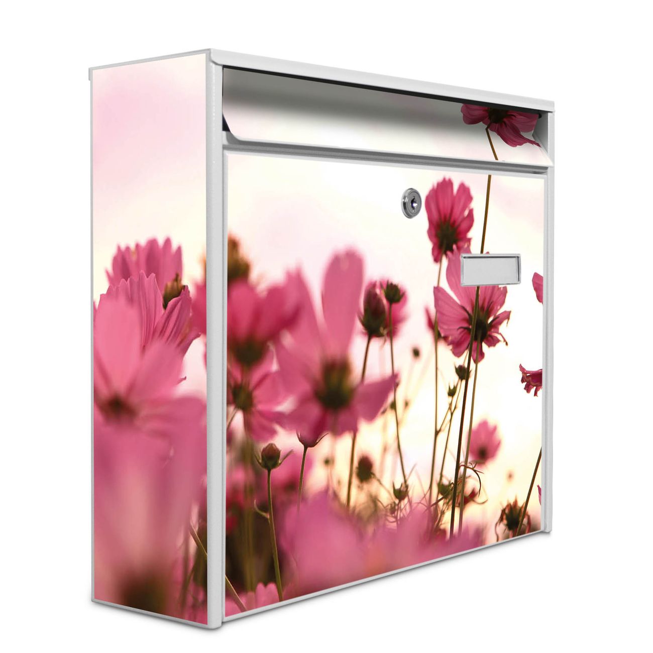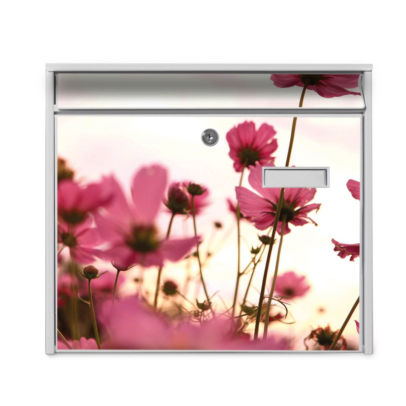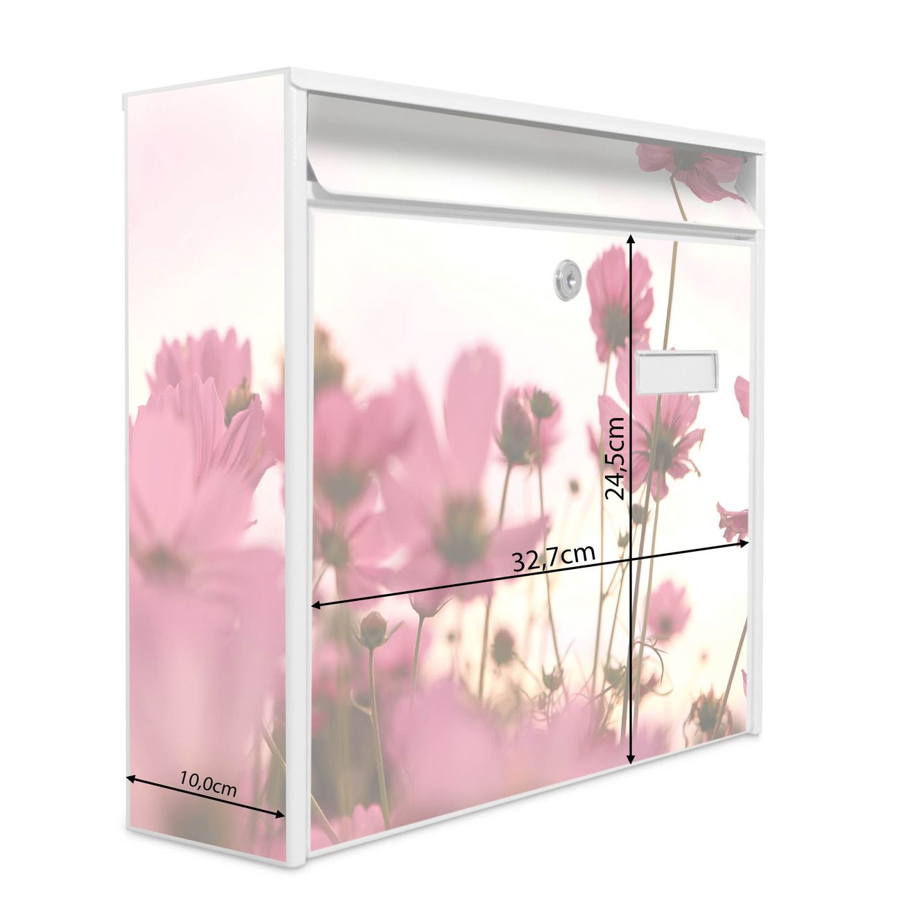 Der Burg Wächter Mail Briefkasten mit Motiv Cosmea bietet Ihnen mit seinem Fassungsvermögen genügend Platz auch für große A4 Sendungen. Auf Wunsch können Sie bei uns den passenden Standfuß kaufen und so aus dem Wandbriefkasten einen Standbriefkasten machen. Wir bieten Ihnen ebenfalls Namensschilder, bereits beschriftet oder frei zu beschriften, und verschiedene selbst gestaltete Bitte-Keine-Werbung-Aufkleber.