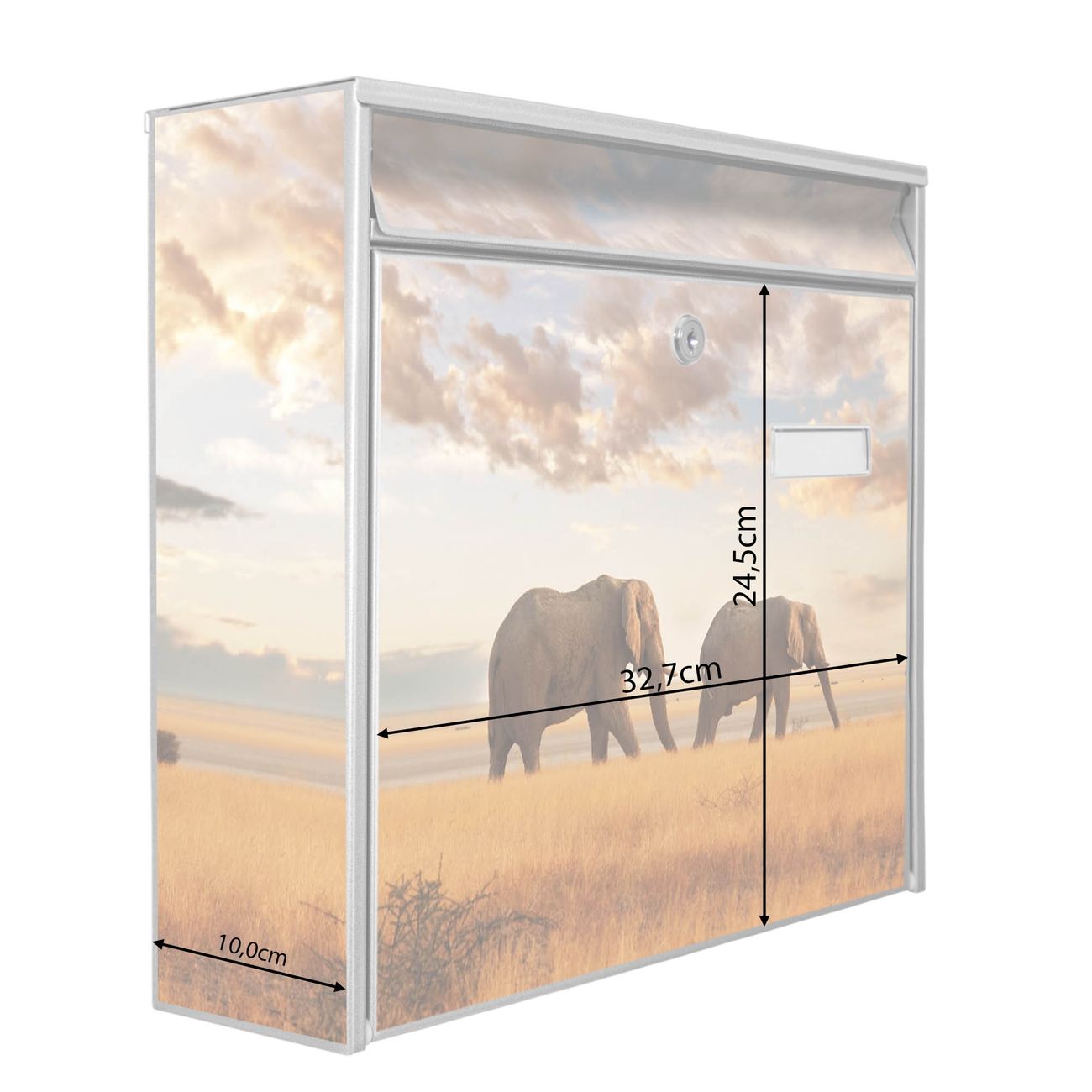Der Postkasten mit Motiv Elefanten hat ein sehr ansprechendes und zeitloses Design. Heben Sie Sich von der tristen grauen Masse ab, ohne auf Funktionalität zu verzichten. Die weite Öffnung ohne scharfe Kanten ermöglicht eine einfache Handhabung beim Entnehmen der Post. Die Größe bietet genügend Platz für Sendungen aller Art, der Einwurf fasst auch größere A4 Sendungen. Ihr Burg-Wächter Motivbriefkasten wird in Sachsen in einer kleinen Manufaktur von Hand veredelt. Die Motivfolie ist lösungsmittelfrei und schutzlaminiert, dies sorgt für einen langen Halt. Wir legen großen Wert auf die Verbindung von Funktionalität und Design.