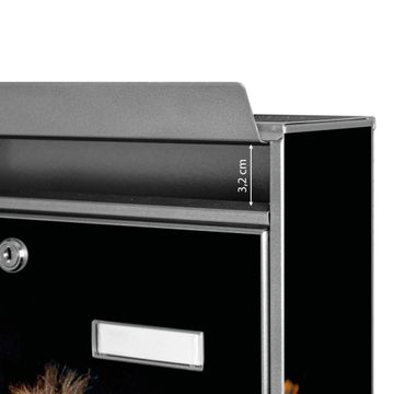 Die Größe des Briefkastens ist 36 x 32 x 10cm (BxHxT) groß. Das Motiv besteht aus einer wetter- und UV-festen Folie, die mit einem Schutzlaminat überzogen ist und Ihren Briefkasten zusätzlich vor Kratzern schützt. Sie erhalten 2 Schlüssel sowie das Montagematerial.