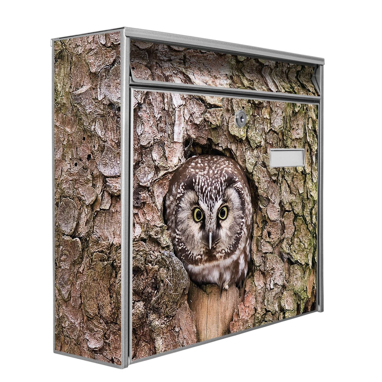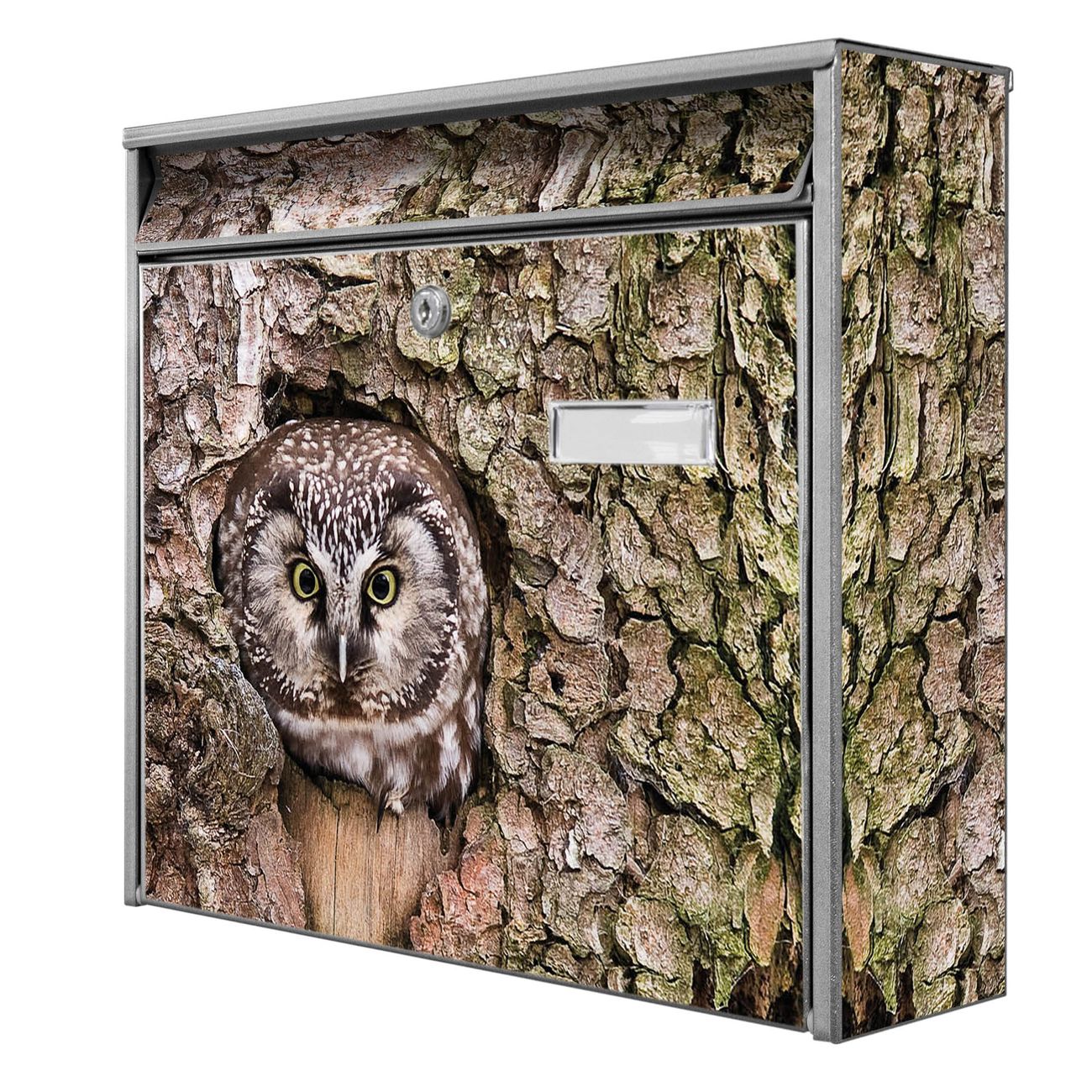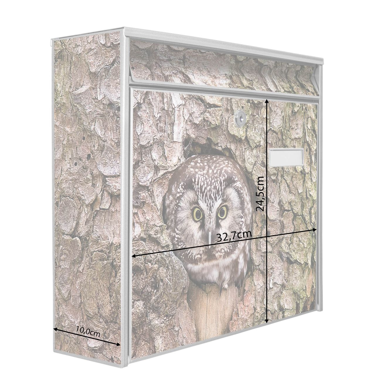 Der Burg Wächter Mail Briefkasten mit Motiv Eule bietet Ihnen mit seinem Fassungsvermögen genügend Platz auch für große A4 Sendungen. Auf Wunsch können Sie bei uns den passenden Standfuß kaufen und so aus dem Wandbriefkasten einen Standbriefkasten machen. Wir bieten Ihnen ebenfalls Namensschilder, bereits beschriftet oder frei zu beschriften, und verschiedene selbst gestaltete Bitte-Keine-Werbung-Aufkleber.