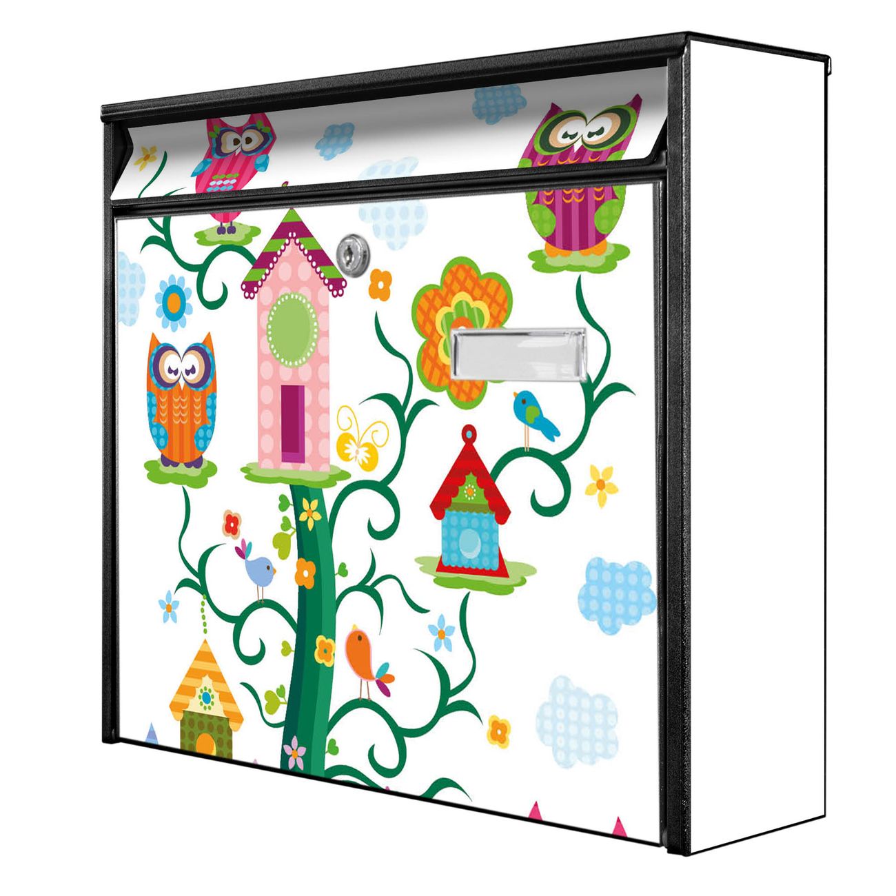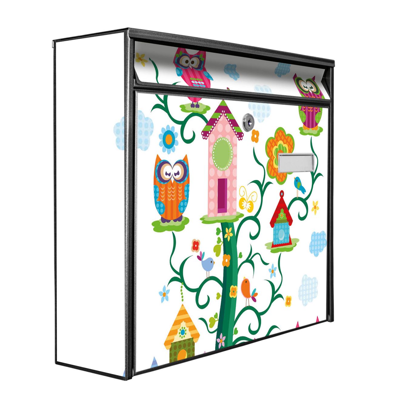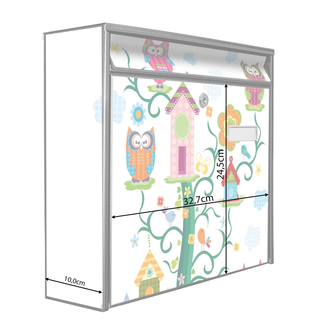 Der Burg Wächter Mail Briefkasten mit Motiv Eulenfamilie bietet Ihnen mit seinem Fassungsvermögen genügend Platz auch für große A4 Sendungen. Auf Wunsch können Sie bei uns den passenden Standfuß kaufen und so aus dem Wandbriefkasten einen Standbriefkasten machen. Wir bieten Ihnen ebenfalls Namensschilder, bereits beschriftet oder frei zu beschriften, und verschiedene selbst gestaltete Bitte-Keine-Werbung-Aufkleber.
