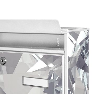 Der Burg Wächter Mail Briefkasten mit Motiv Facetten Monochrome bietet Ihnen mit seinem Fassungsvermögen genügend Platz auch für große A4 Sendungen. Auf Wunsch können Sie bei uns den passenden Standfuß kaufen und so aus dem Wandbriefkasten einen Standbriefkasten machen. Wir bieten Ihnen ebenfalls Namensschilder, bereits beschriftet oder frei zu beschriften, und verschiedene selbst gestaltete Bitte-Keine-Werbung-Aufkleber.