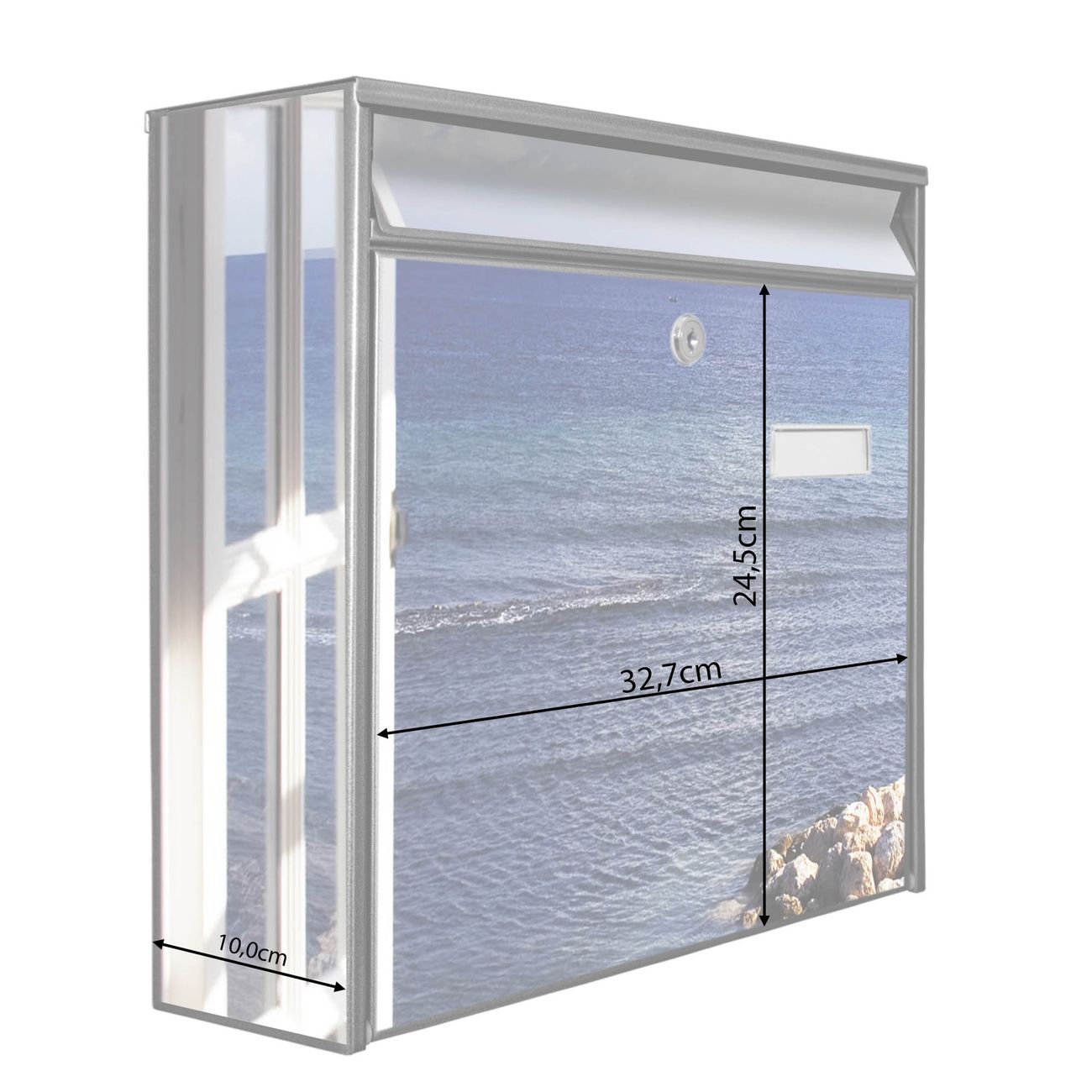 Die Größe des Briefkastens ist 36 x 32 x 10cm (BxHxT) groß. Das Motiv besteht aus einer wetter- und UV-festen Folie, die mit einem Schutzlaminat überzogen ist und Ihren Briefkasten zusätzlich vor Kratzern schützt. Sie erhalten 2 Schlüssel sowie das Montagematerial.