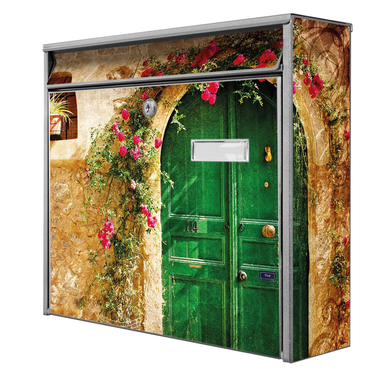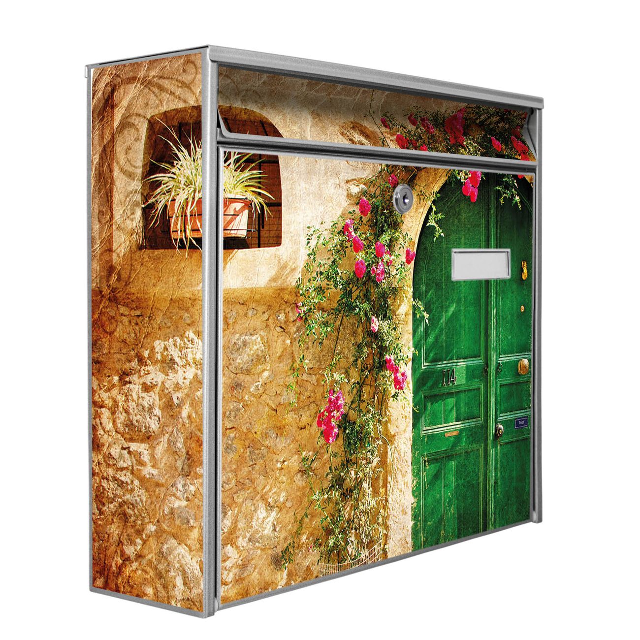 Die Größe des Briefkastens ist 36 x 32 x 10cm (BxHxT) groß. Das Motiv besteht aus einer wetter- und UV-festen Folie, die mit einem Schutzlaminat überzogen ist und Ihren Briefkasten zusätzlich vor Kratzern schützt. Sie erhalten 2 Schlüssel sowie das Montagematerial.
