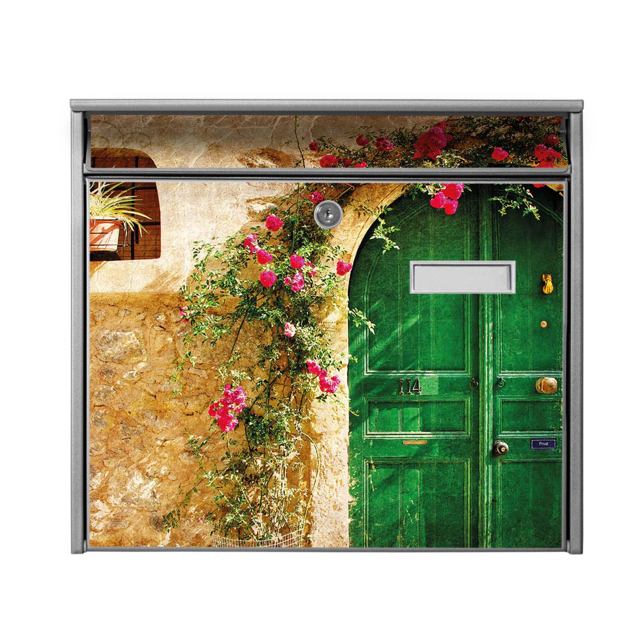 Der Burg Wächter Mail Briefkasten mit Motiv Ferienhaus bietet Ihnen mit seinem Fassungsvermögen genügend Platz auch für große A4 Sendungen. Auf Wunsch können Sie bei uns den passenden Standfuß kaufen und so aus dem Wandbriefkasten einen Standbriefkasten machen. Wir bieten Ihnen ebenfalls Namensschilder, bereits beschriftet oder frei zu beschriften, und verschiedene selbst gestaltete Bitte-Keine-Werbung-Aufkleber.