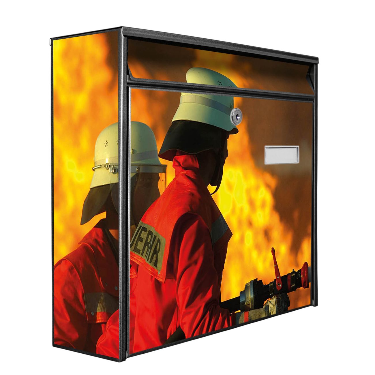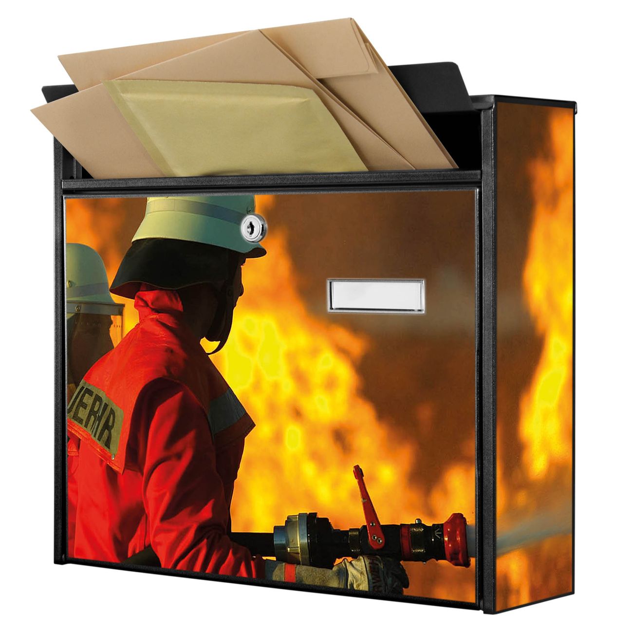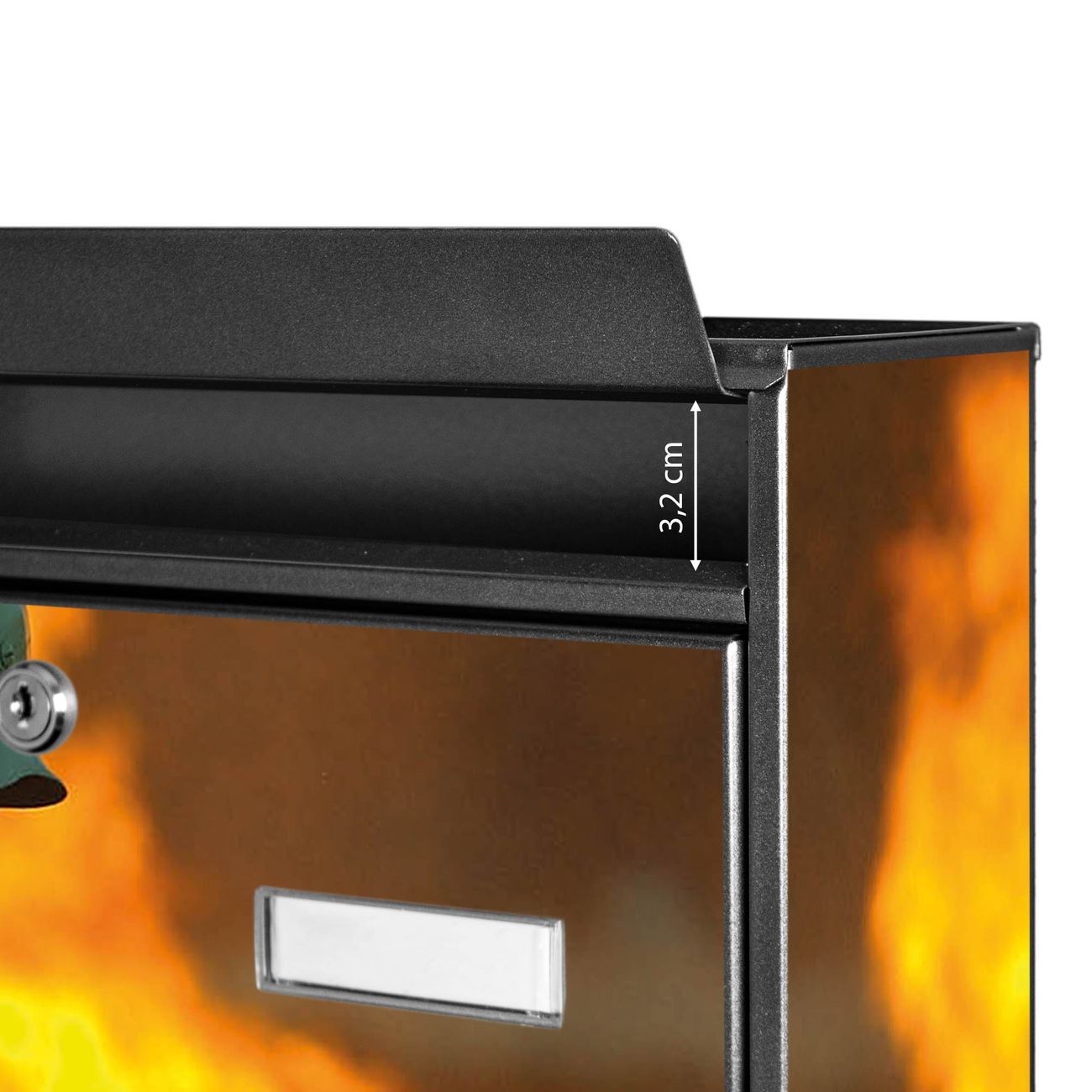 Der Burg Wächter Mail Briefkasten mit Motiv Feuer bietet Ihnen mit seinem Fassungsvermögen genügend Platz auch für große A4 Sendungen. Auf Wunsch können Sie bei uns den passenden Standfuß kaufen und so aus dem Wandbriefkasten einen Standbriefkasten machen. Wir bieten Ihnen ebenfalls Namensschilder, bereits beschriftet oder frei zu beschriften, und verschiedene selbst gestaltete Bitte-Keine-Werbung-Aufkleber.