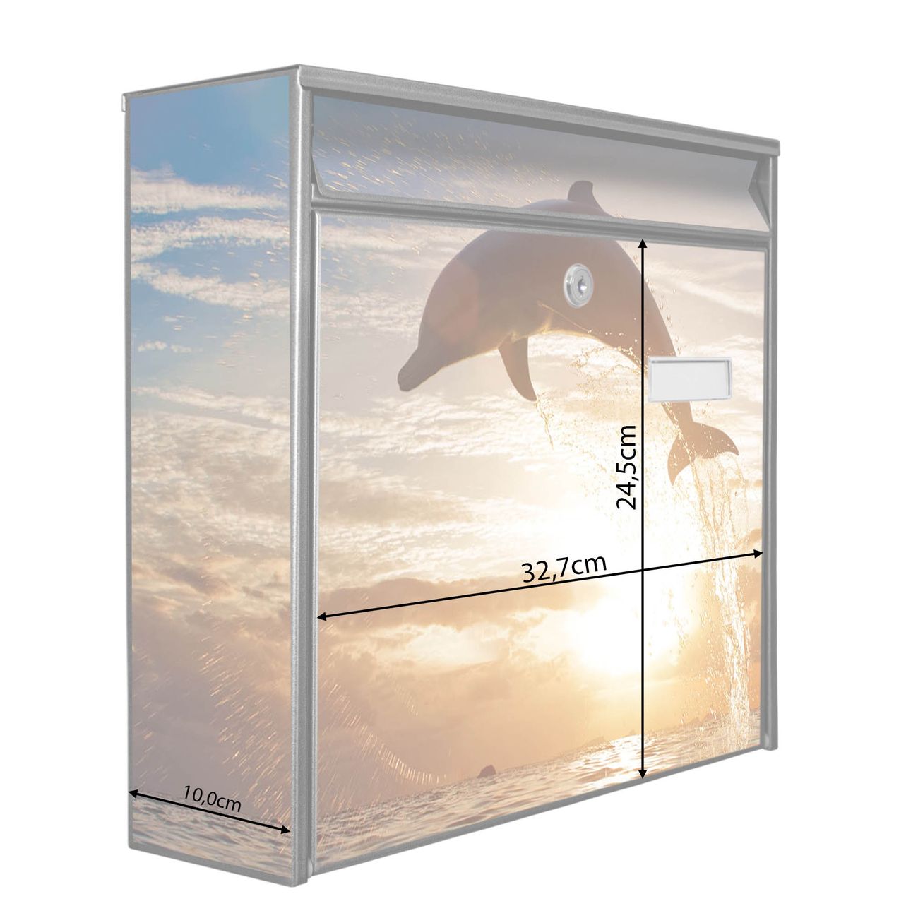 Die Größe des Briefkastens ist 36 x 32 x 10cm (BxHxT) groß. Das Motiv besteht aus einer wetter- und UV-festen Folie, die mit einem Schutzlaminat überzogen ist und Ihren Briefkasten zusätzlich vor Kratzern schützt. Sie erhalten 2 Schlüssel sowie das Montagematerial.