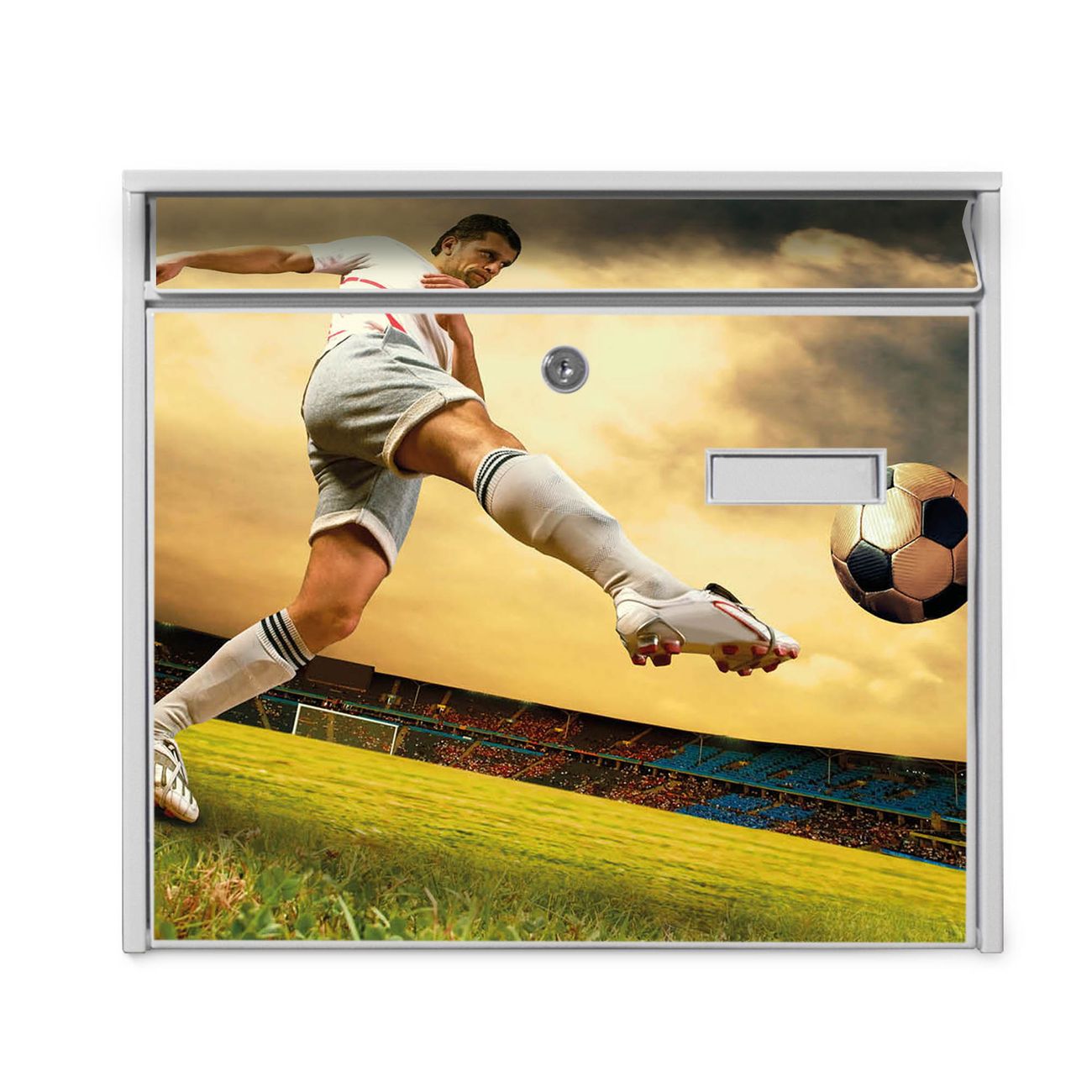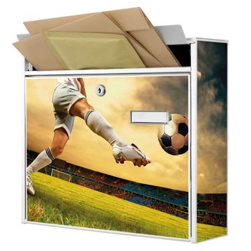Der Burg Wächter Mail Briefkasten mit Motiv Football bietet Ihnen mit seinem Fassungsvermögen genügend Platz auch für große A4 Sendungen. Auf Wunsch können Sie bei uns den passenden Standfuß kaufen und so aus dem Wandbriefkasten einen Standbriefkasten machen. Wir bieten Ihnen ebenfalls Namensschilder, bereits beschriftet oder frei zu beschriften, und verschiedene selbst gestaltete Bitte-Keine-Werbung-Aufkleber.