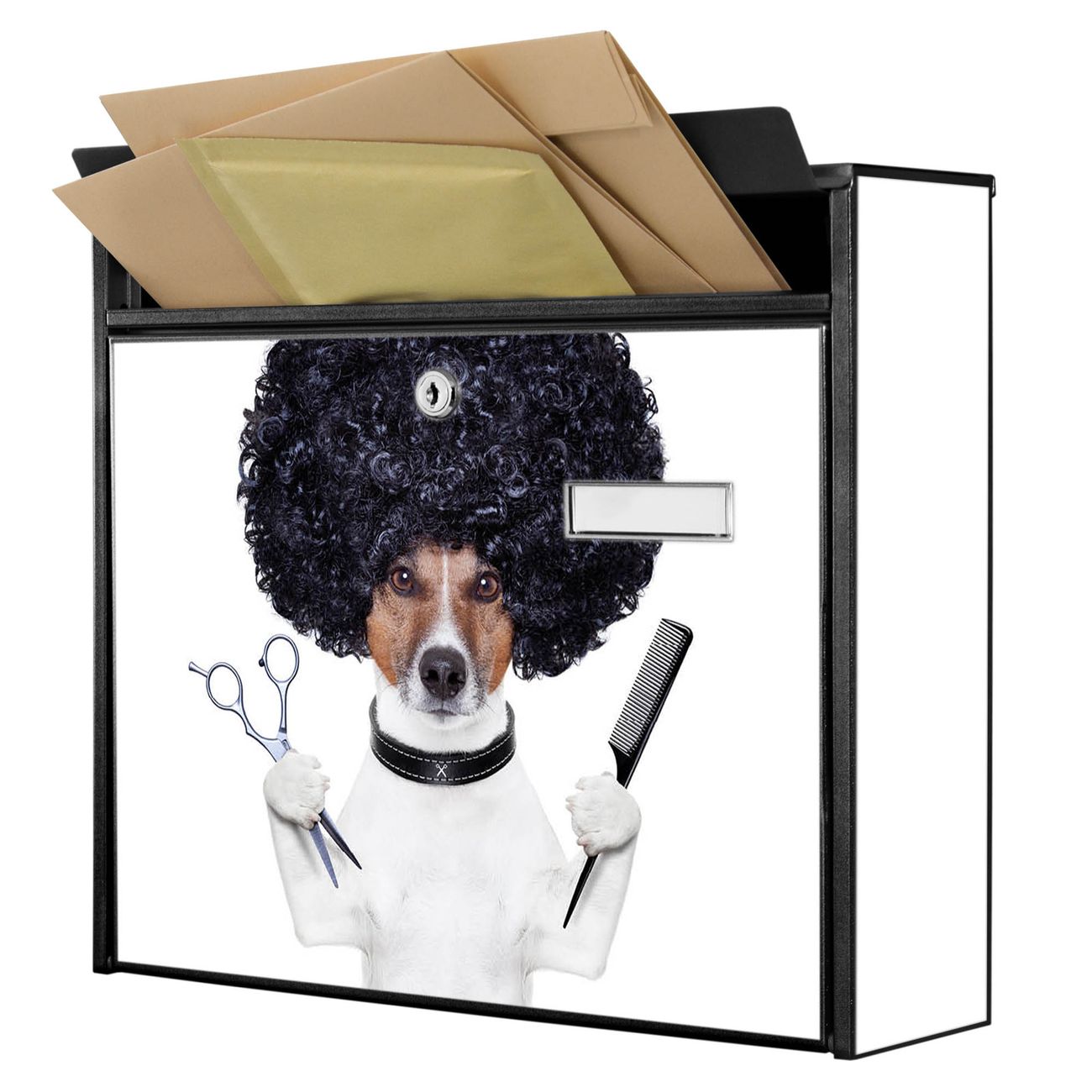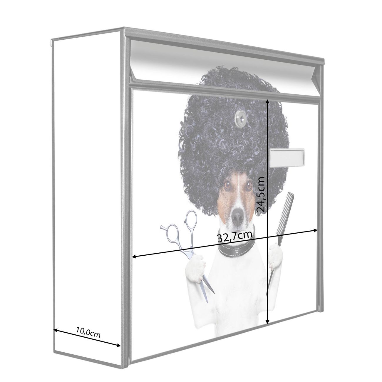 Der Burg Wächter Mail Briefkasten mit Motiv Friseur Jack Russel bietet Ihnen mit seinem Fassungsvermögen genügend Platz auch für große A4 Sendungen. Auf Wunsch können Sie bei uns den passenden Standfuß kaufen und so aus dem Wandbriefkasten einen Standbriefkasten machen. Wir bieten Ihnen ebenfalls Namensschilder, bereits beschriftet oder frei zu beschriften, und verschiedene selbst gestaltete Bitte-Keine-Werbung-Aufkleber.