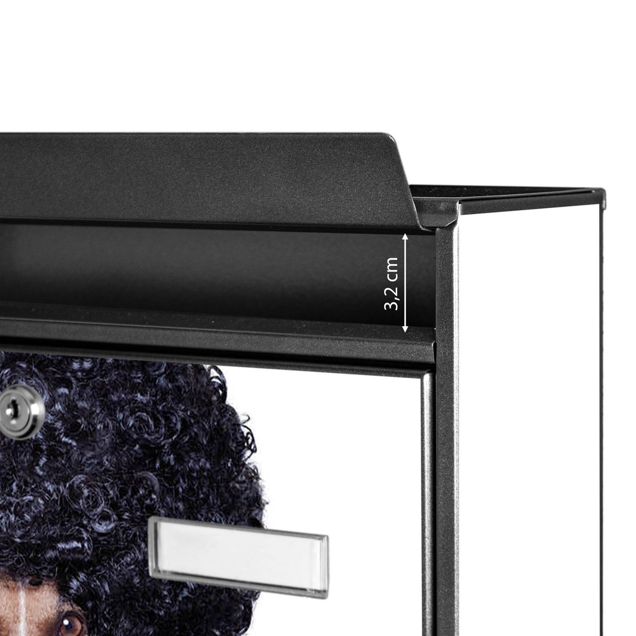 Die Größe des Briefkastens ist 36 x 32 x 10cm (BxHxT) groß. Das Motiv besteht aus einer wetter- und UV-festen Folie, die mit einem Schutzlaminat überzogen ist und Ihren Briefkasten zusätzlich vor Kratzern schützt. Sie erhalten 2 Schlüssel sowie das Montagematerial.