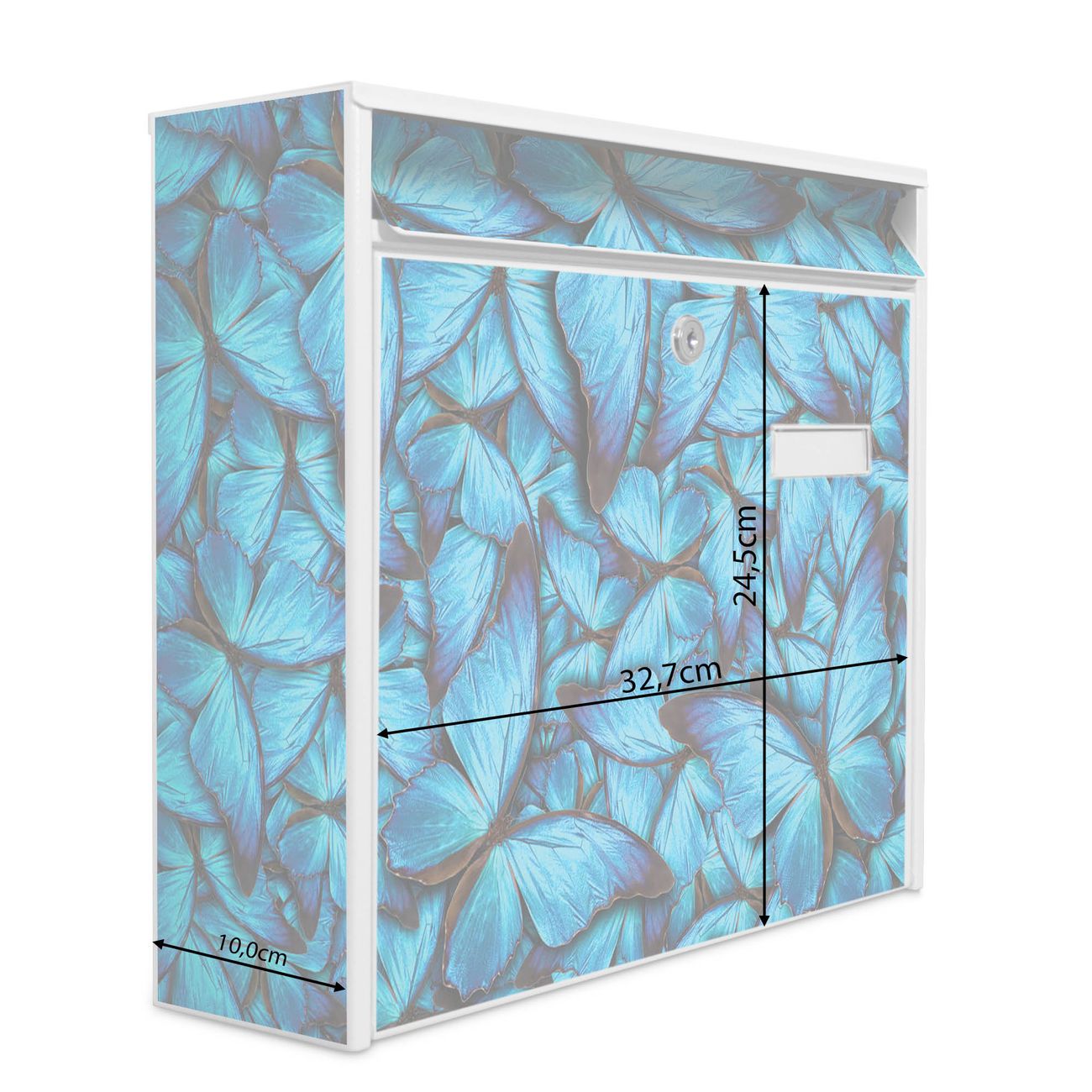 Die Größe des Briefkastens ist 36 x 32 x 10cm (BxHxT) groß. Das Motiv besteht aus einer wetter- und UV-festen Folie, die mit einem Schutzlaminat überzogen ist und Ihren Briefkasten zusätzlich vor Kratzern schützt. Sie erhalten 2 Schlüssel sowie das Montagematerial.