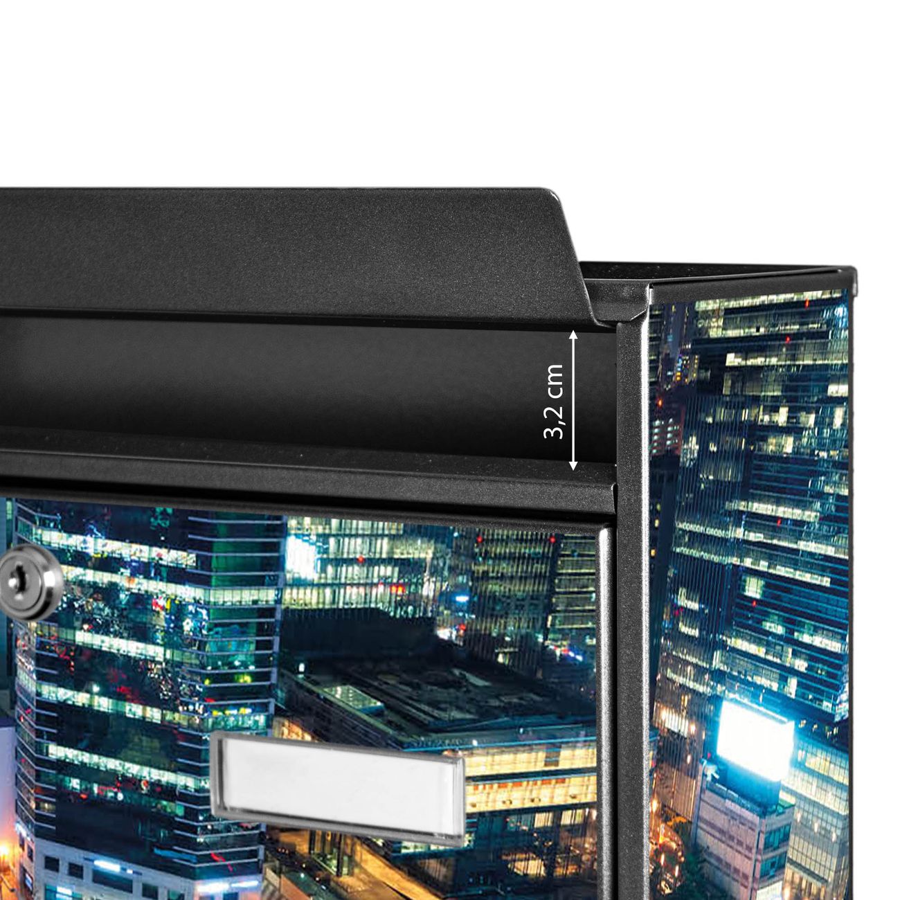 Der Burg Wächter Mail Briefkasten mit Motiv Gangnam Bei Nacht bietet Ihnen mit seinem Fassungsvermögen genügend Platz auch für große A4 Sendungen. Auf Wunsch können Sie bei uns den passenden Standfuß kaufen und so aus dem Wandbriefkasten einen Standbriefkasten machen. Wir bieten Ihnen ebenfalls Namensschilder, bereits beschriftet oder frei zu beschriften, und verschiedene selbst gestaltete Bitte-Keine-Werbung-Aufkleber.