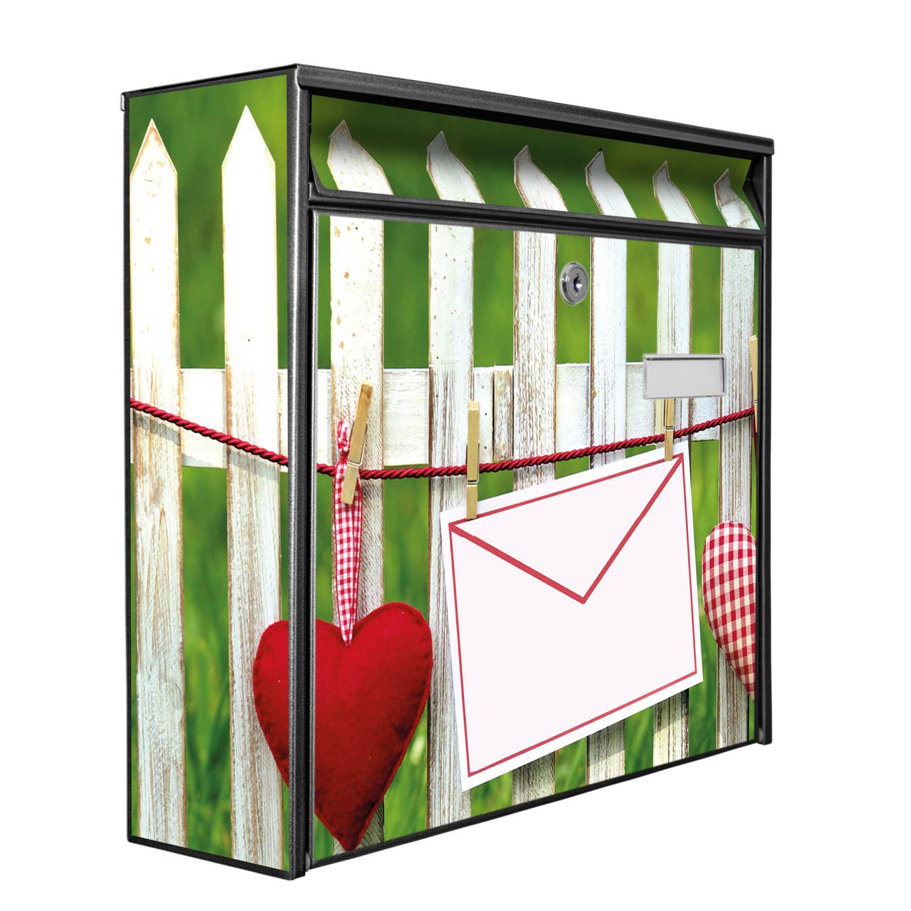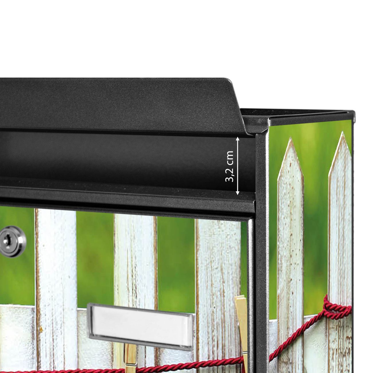 Der Burg Wächter Mail Briefkasten mit Motiv Gartenzaun bietet Ihnen mit seinem Fassungsvermögen genügend Platz auch für große A4 Sendungen. Auf Wunsch können Sie bei uns den passenden Standfuß kaufen und so aus dem Wandbriefkasten einen Standbriefkasten machen. Wir bieten Ihnen ebenfalls Namensschilder, bereits beschriftet oder frei zu beschriften, und verschiedene selbst gestaltete Bitte-Keine-Werbung-Aufkleber.