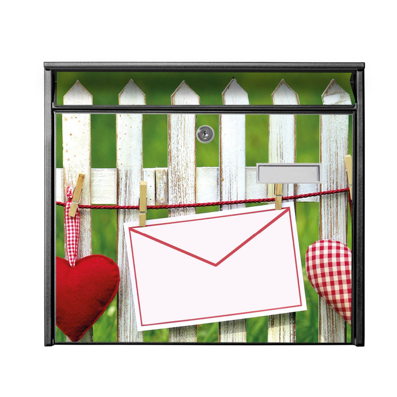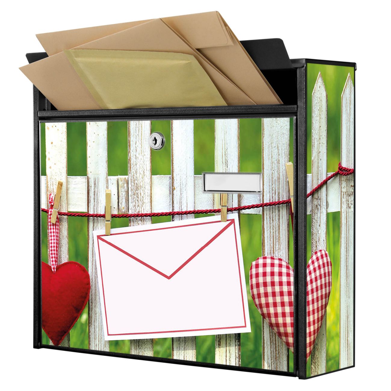 Die Größe des Briefkastens ist 36 x 32 x 10cm (BxHxT) groß. Das Motiv besteht aus einer wetter- und UV-festen Folie, die mit einem Schutzlaminat überzogen ist und Ihren Briefkasten zusätzlich vor Kratzern schützt. Sie erhalten 2 Schlüssel sowie das Montagematerial.
