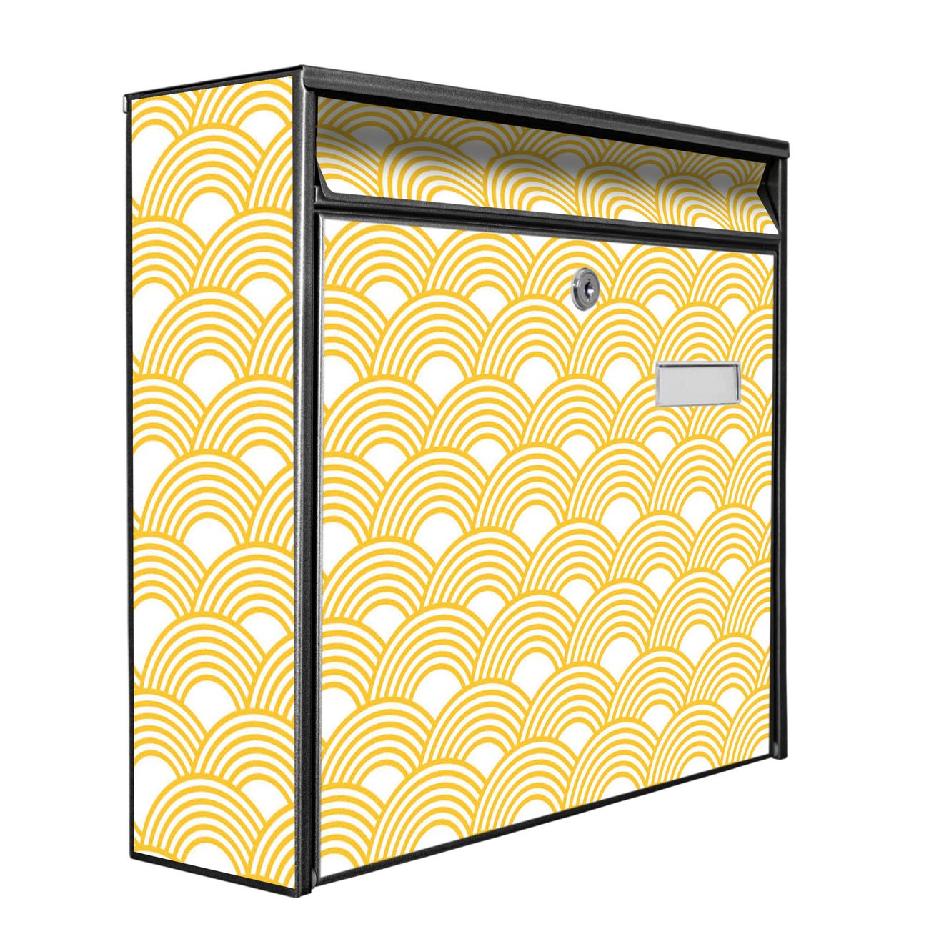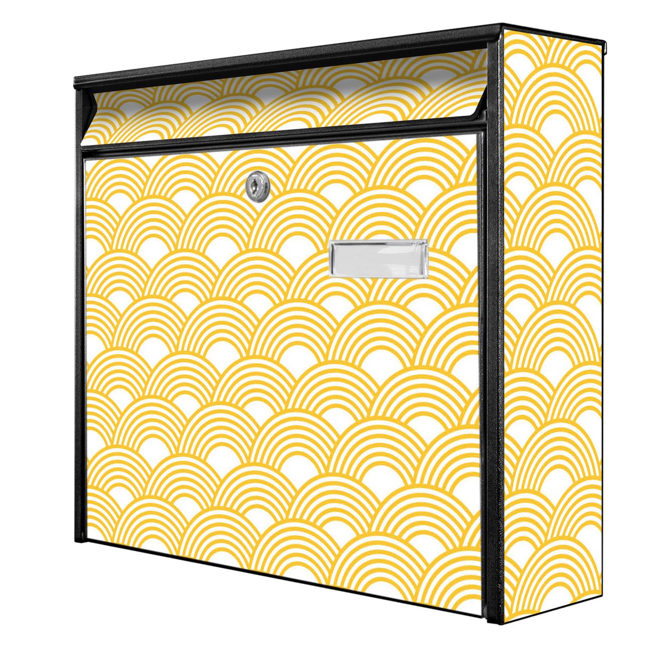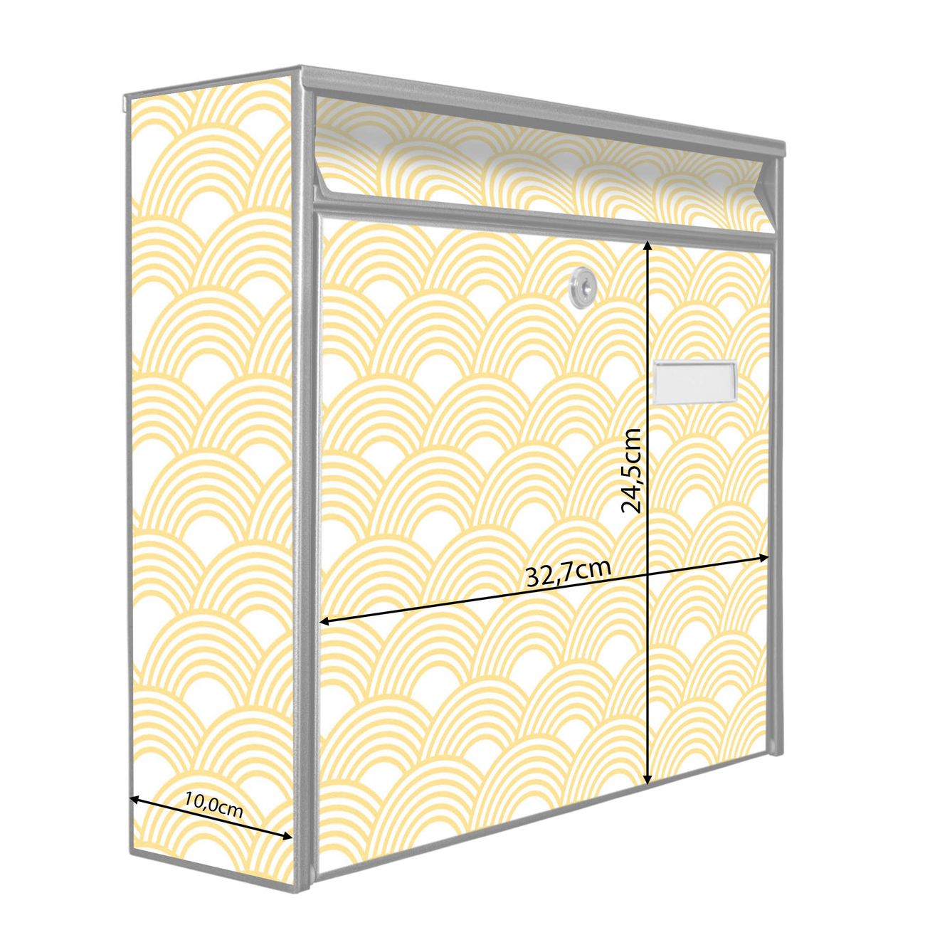 Der Burg Wächter Mail Briefkasten mit Motiv Gelbe Wellen bietet Ihnen mit seinem Fassungsvermögen genügend Platz auch für große A4 Sendungen. Auf Wunsch können Sie bei uns den passenden Standfuß kaufen und so aus dem Wandbriefkasten einen Standbriefkasten machen. Wir bieten Ihnen ebenfalls Namensschilder, bereits beschriftet oder frei zu beschriften, und verschiedene selbst gestaltete Bitte-Keine-Werbung-Aufkleber.