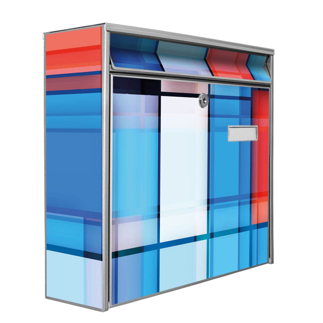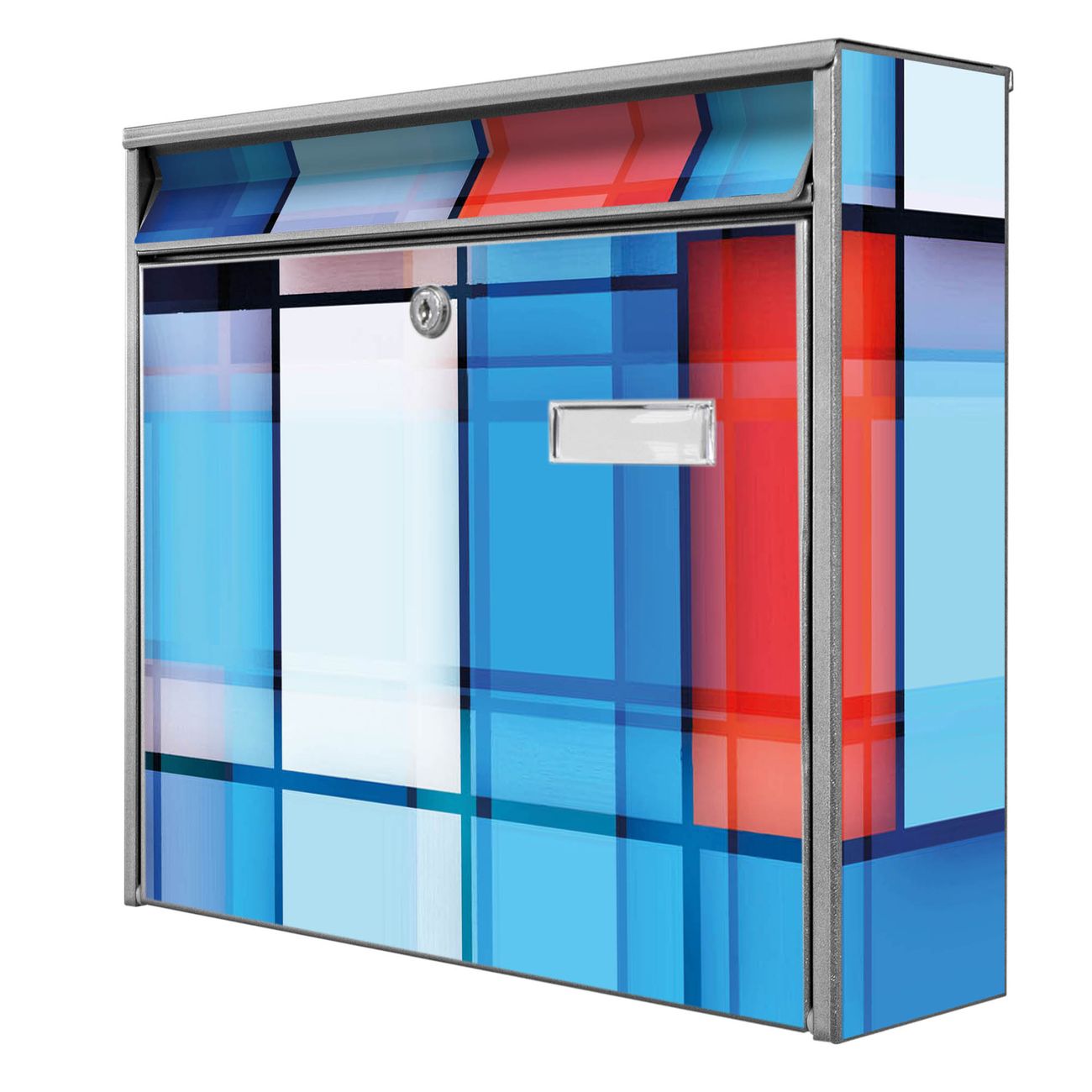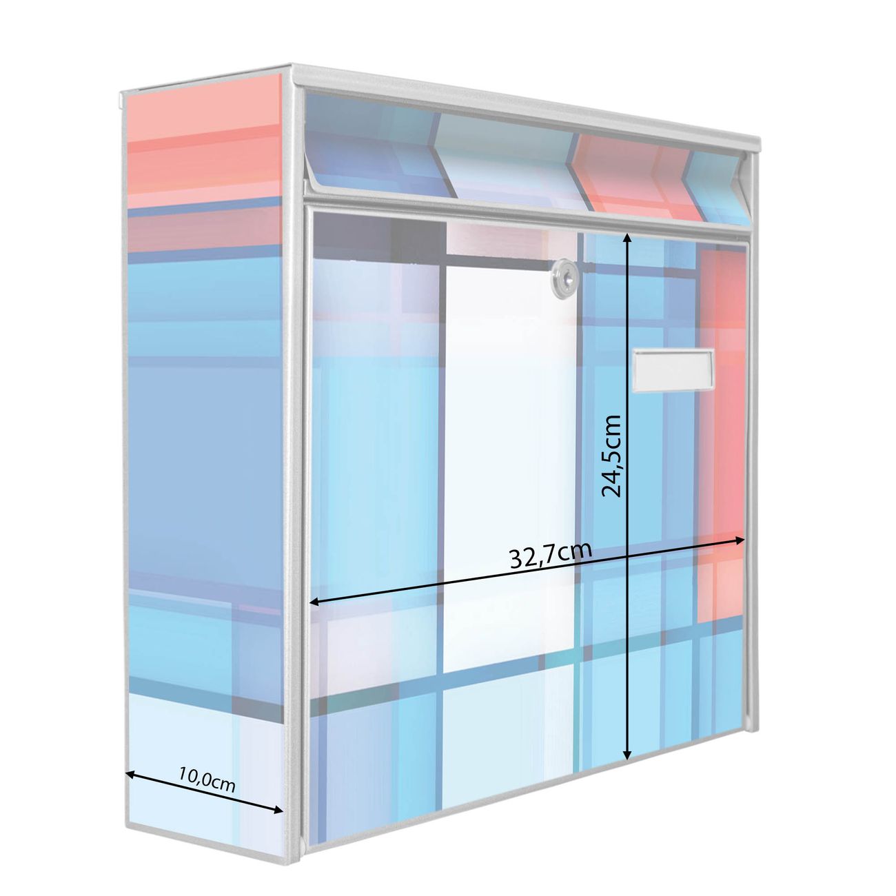 Die Größe des Briefkastens ist 36 x 32 x 10cm (BxHxT) groß. Das Motiv besteht aus einer wetter- und UV-festen Folie, die mit einem Schutzlaminat überzogen ist und Ihren Briefkasten zusätzlich vor Kratzern schützt. Sie erhalten 2 Schlüssel sowie das Montagematerial.