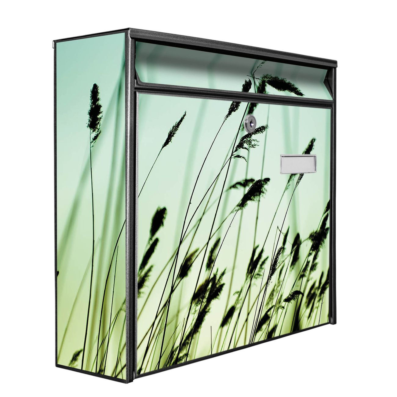 Der Postkasten mit Motiv Gräser hat ein sehr ansprechendes und zeitloses Design. Heben Sie Sich von der tristen grauen Masse ab, ohne auf Funktionalität zu verzichten. Die weite Öffnung ohne scharfe Kanten ermöglicht eine einfache Handhabung beim Entnehmen der Post. Die Größe bietet genügend Platz für Sendungen aller Art, der Einwurf fasst auch größere A4 Sendungen. Ihr Burg-Wächter Motivbriefkasten wird in Sachsen in einer kleinen Manufaktur von Hand veredelt. Die Motivfolie ist lösungsmittelfrei und schutzlaminiert, dies sorgt für einen langen Halt. Wir legen großen Wert auf die Verbindung von Funktionalität und Design.