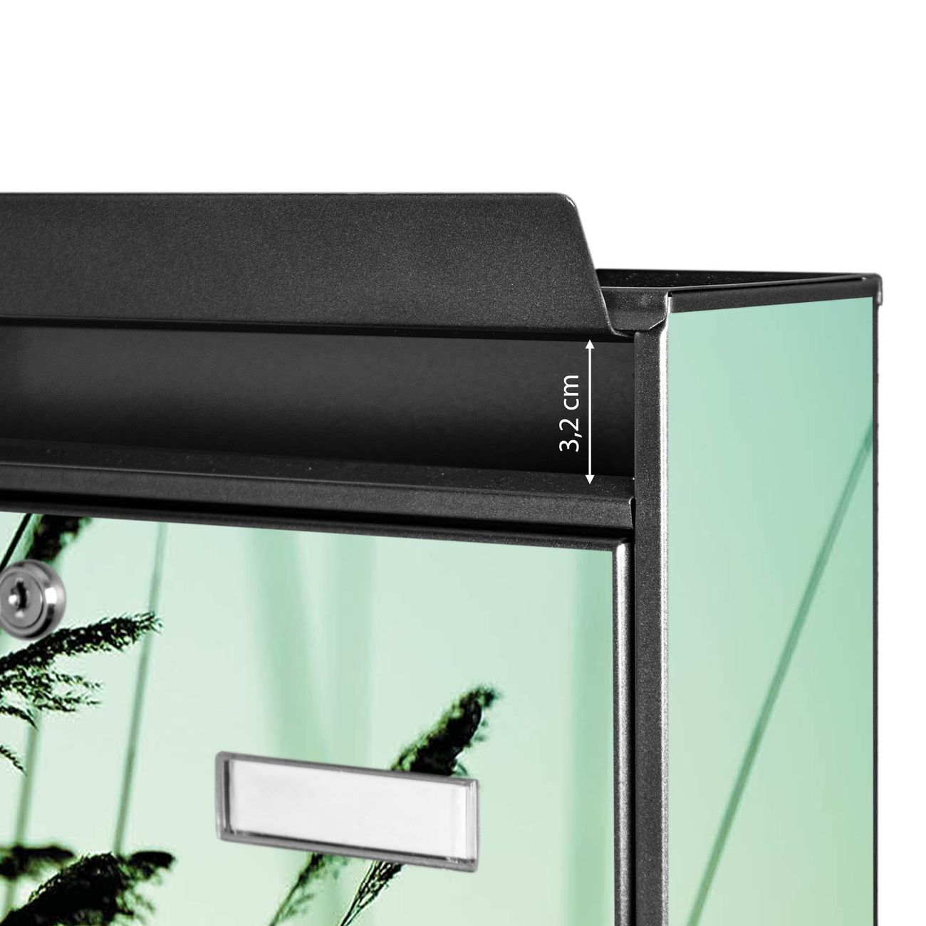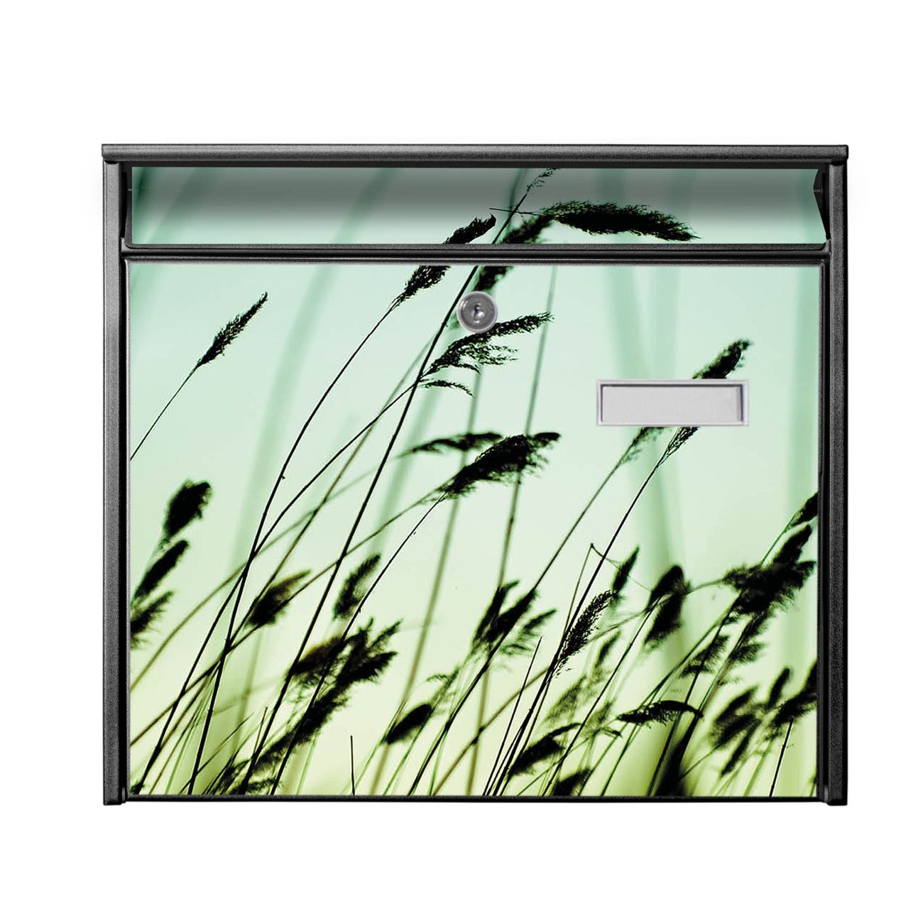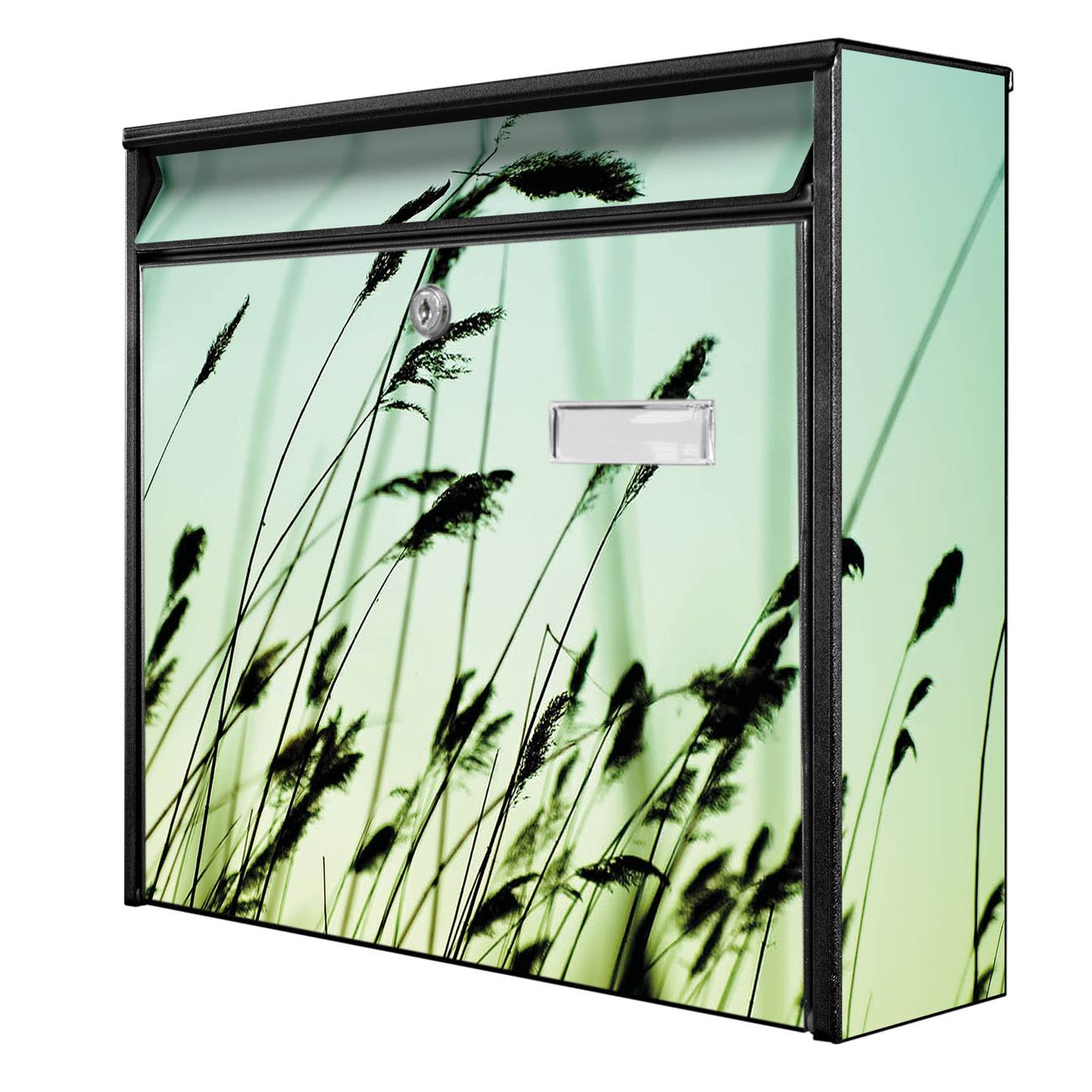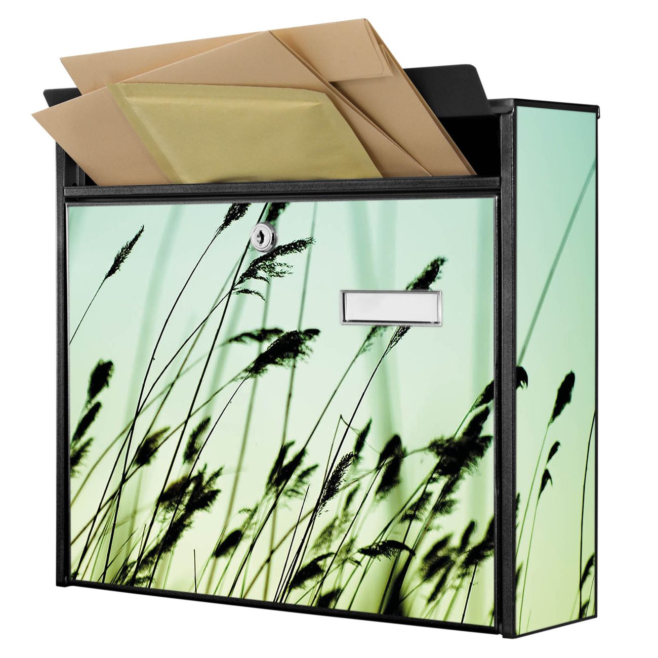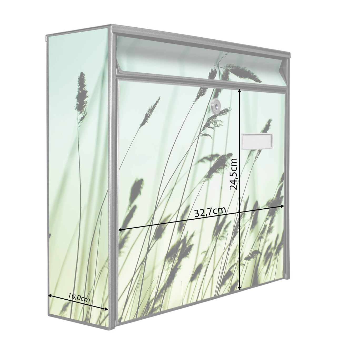 Der Burg Wächter Mail Briefkasten mit Motiv Gräser bietet Ihnen mit seinem Fassungsvermögen genügend Platz auch für große A4 Sendungen. Auf Wunsch können Sie bei uns den passenden Standfuß kaufen und so aus dem Wandbriefkasten einen Standbriefkasten machen. Wir bieten Ihnen ebenfalls Namensschilder, bereits beschriftet oder frei zu beschriften, und verschiedene selbst gestaltete Bitte-Keine-Werbung-Aufkleber.