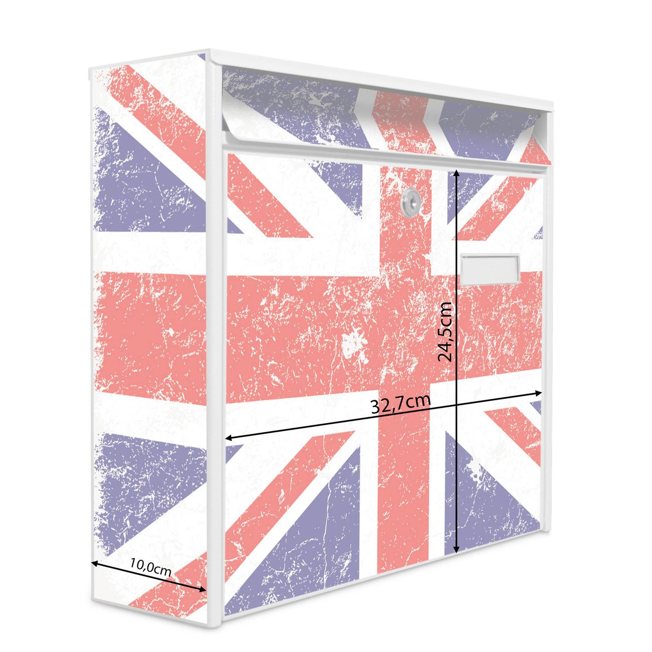 Der Burg Wächter Mail Briefkasten mit Motiv Great Britain bietet Ihnen mit seinem Fassungsvermögen genügend Platz auch für große A4 Sendungen. Auf Wunsch können Sie bei uns den passenden Standfuß kaufen und so aus dem Wandbriefkasten einen Standbriefkasten machen. Wir bieten Ihnen ebenfalls Namensschilder, bereits beschriftet oder frei zu beschriften, und verschiedene selbst gestaltete Bitte-Keine-Werbung-Aufkleber.