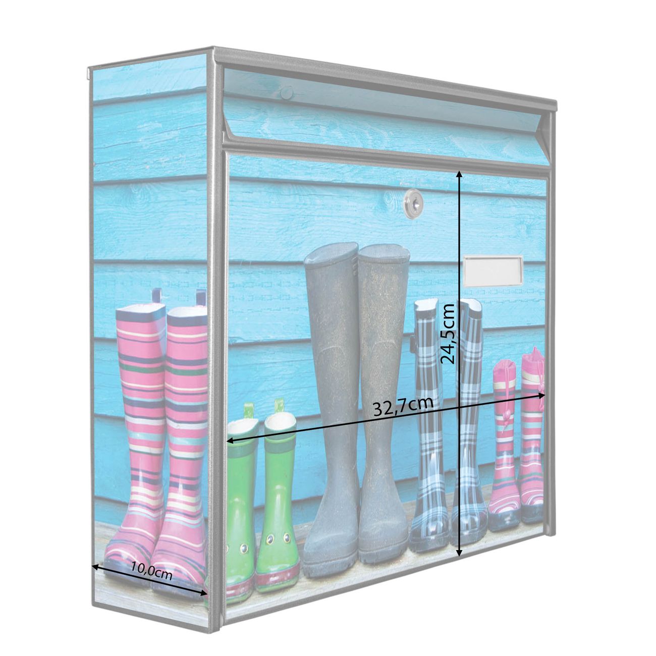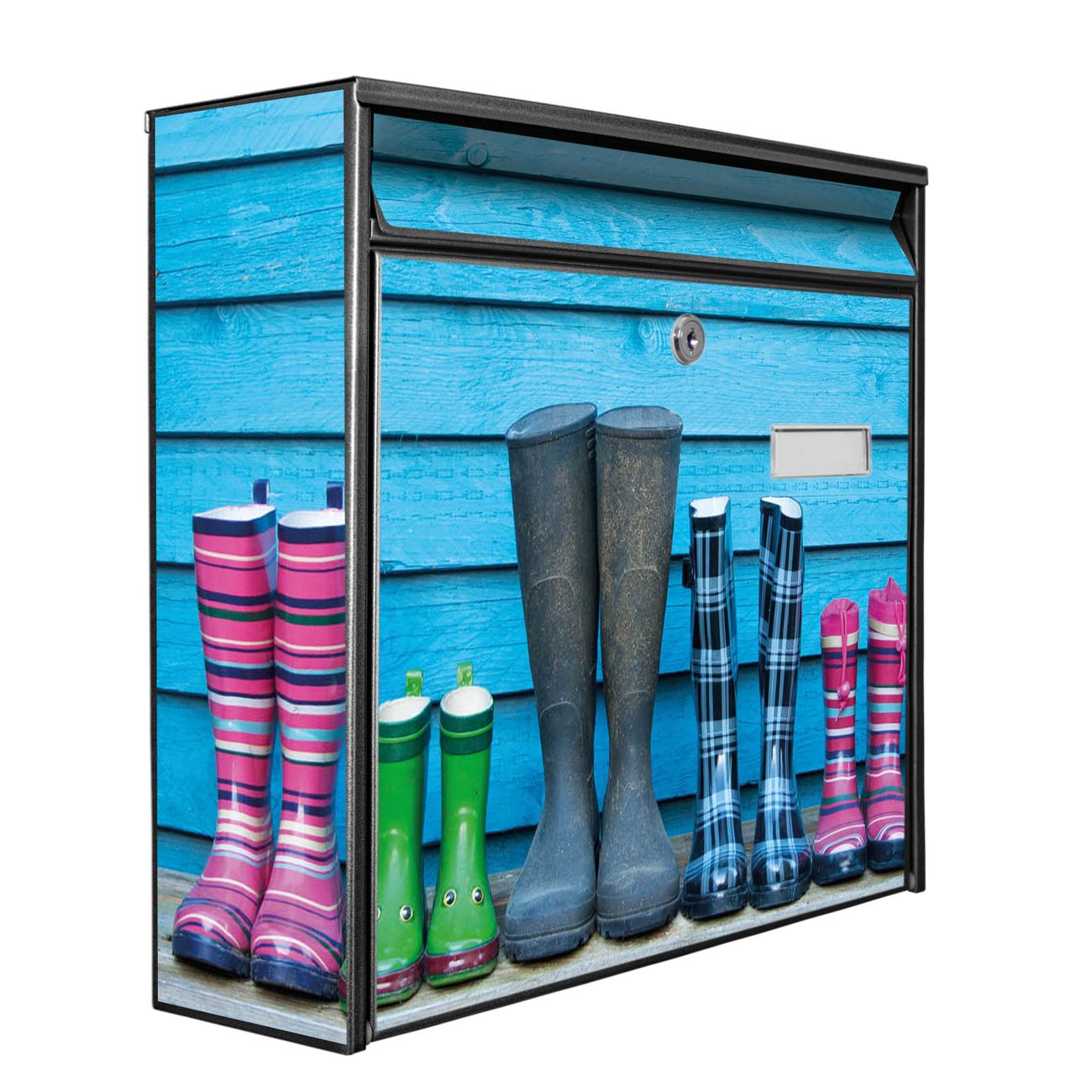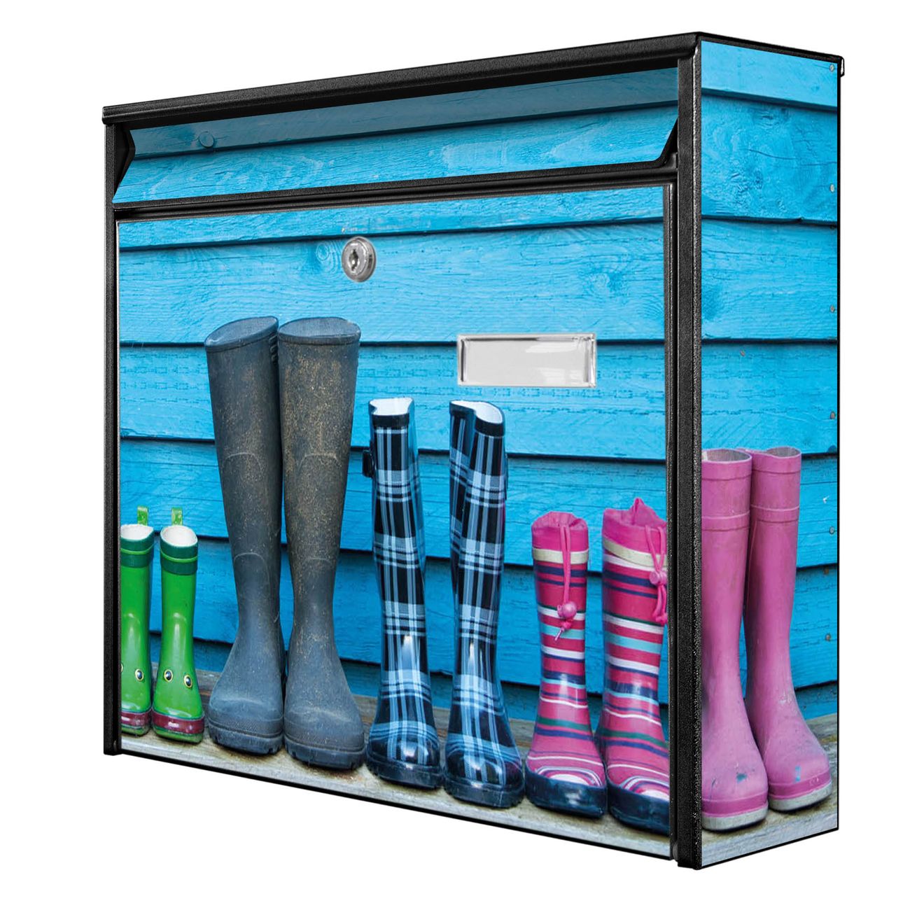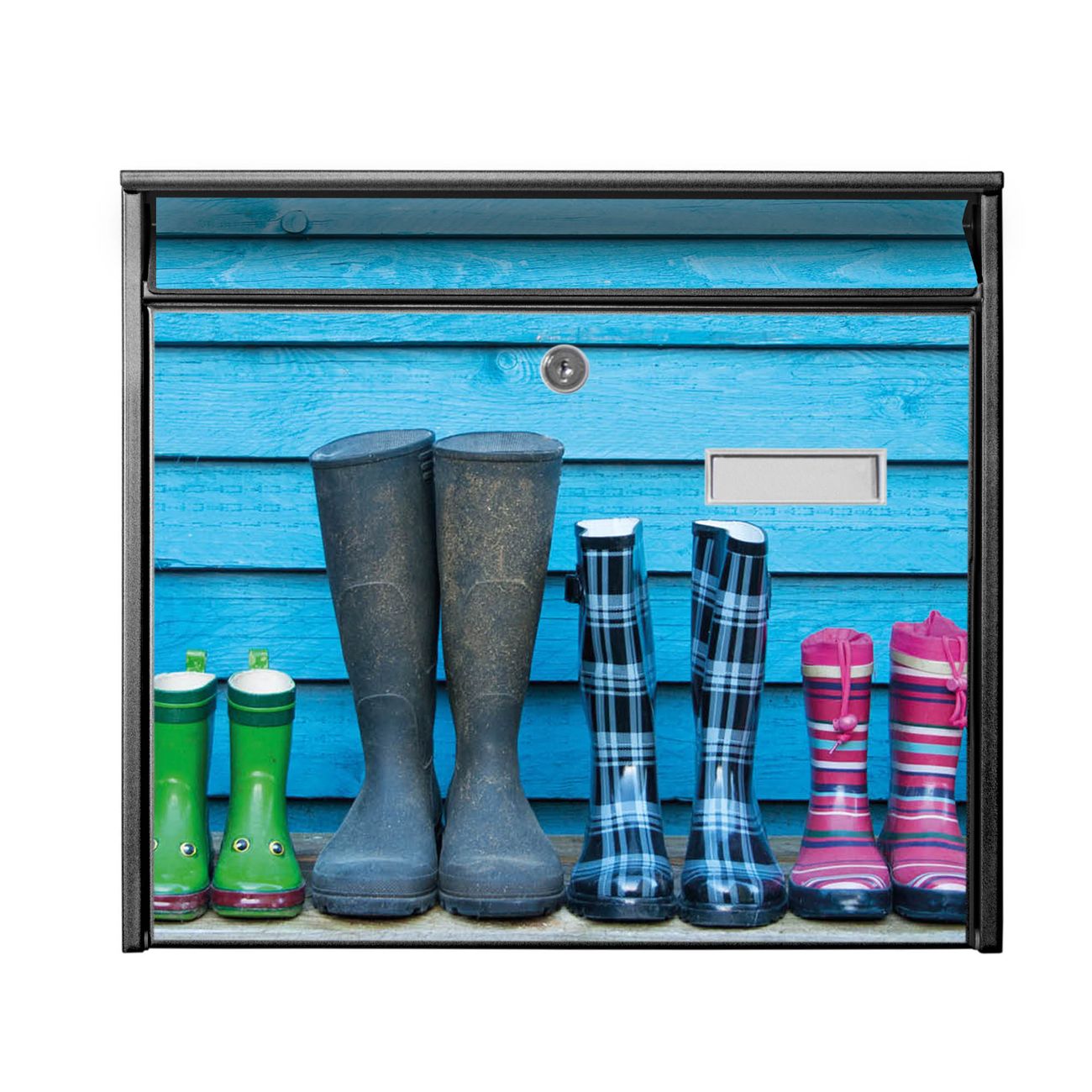 Der Burg Wächter Mail Briefkasten mit Motiv Gummistiefel bietet Ihnen mit seinem Fassungsvermögen genügend Platz auch für große A4 Sendungen. Auf Wunsch können Sie bei uns den passenden Standfuß kaufen und so aus dem Wandbriefkasten einen Standbriefkasten machen. Wir bieten Ihnen ebenfalls Namensschilder, bereits beschriftet oder frei zu beschriften, und verschiedene selbst gestaltete Bitte-Keine-Werbung-Aufkleber.